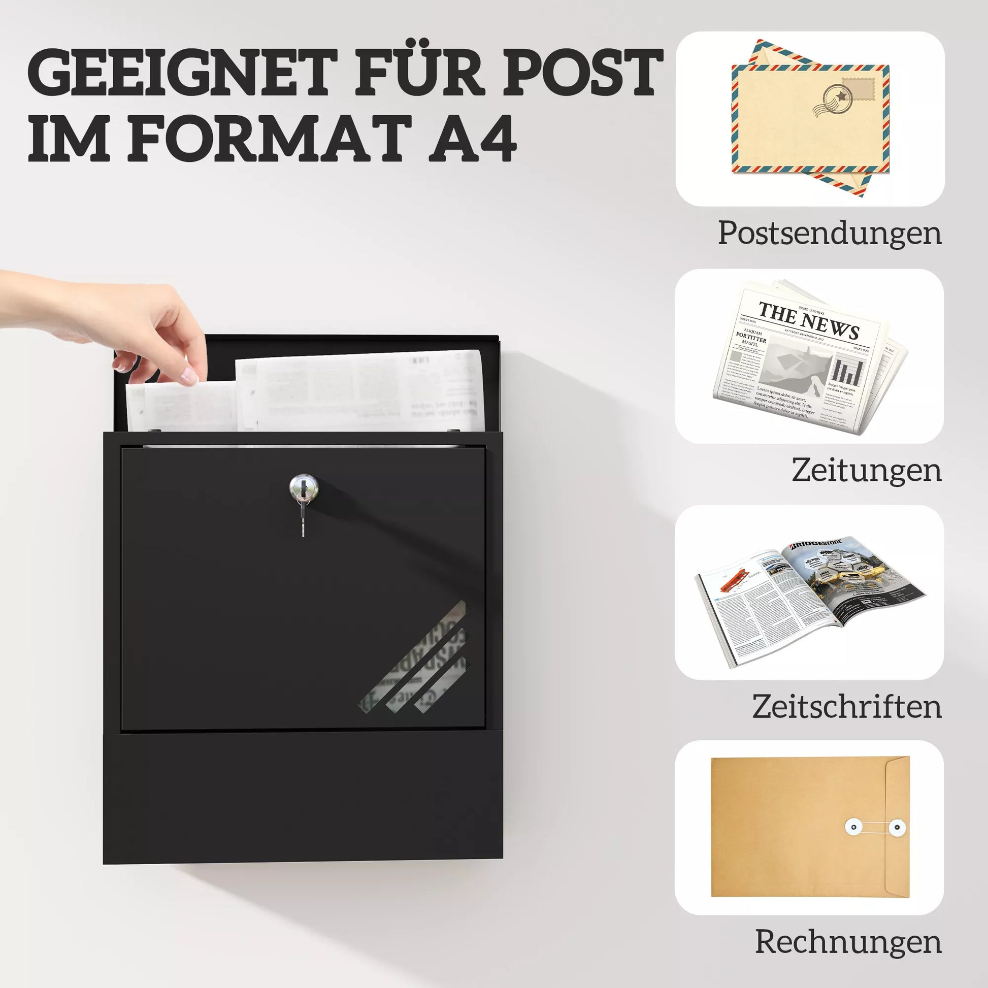 Atraskite Pašto Dėžutę – Jūsų Sprendimas Saugiai Lauko Pašto Pristatymo Vietai. Ši moderni, pagaminta iš tvirto metalo pašto dėžutė efektyviai apsaugo nuo rūdžių ir oro sąlygų. Užrakinamas dizainas užtikrina, kad Jūsų A4 formato korespondencija bus saugiai saugoma. Praktiško langelio dėka galėsite greitai apžiūrėti siuntinius – puikiai tinka bet kokiam montavimui ant sienos.
