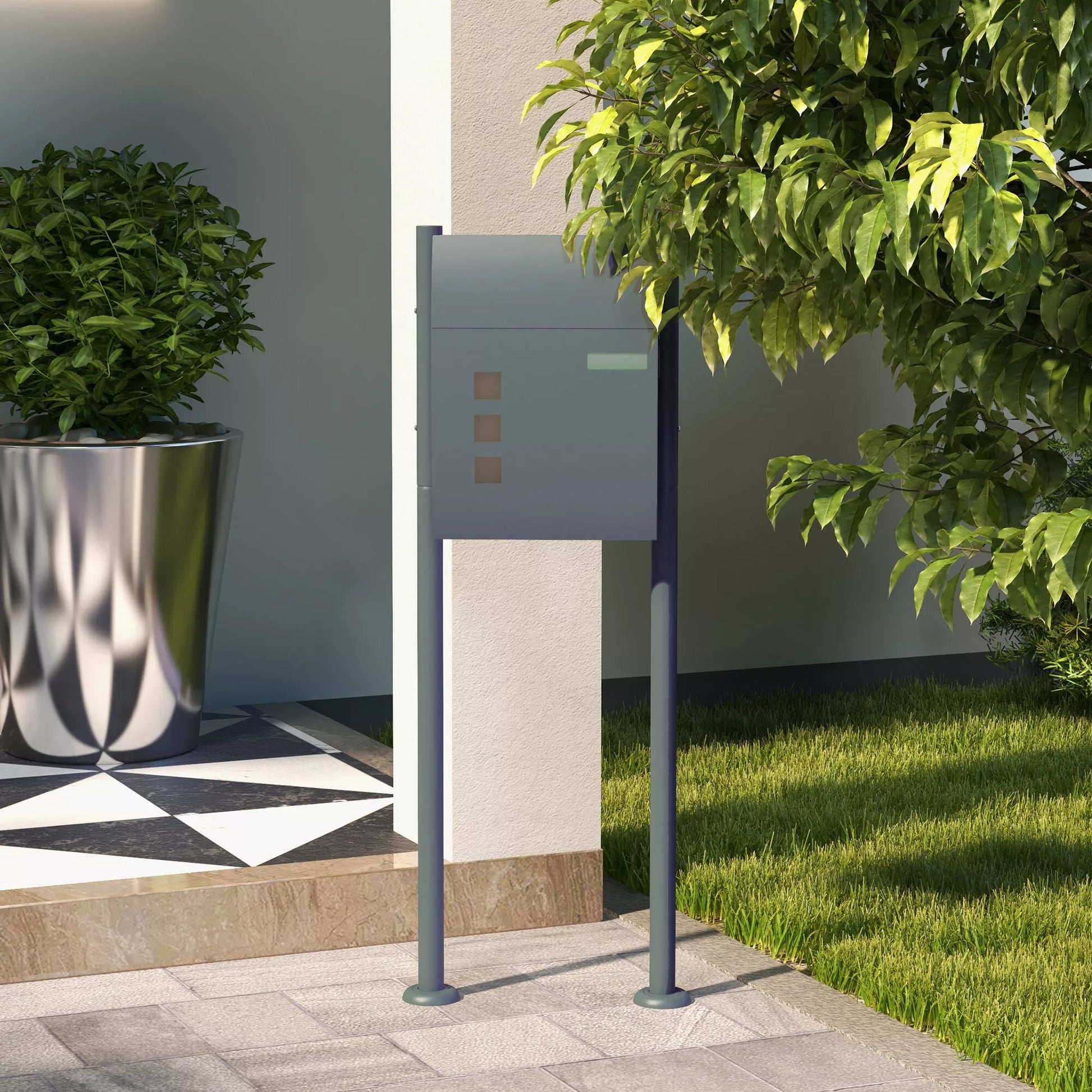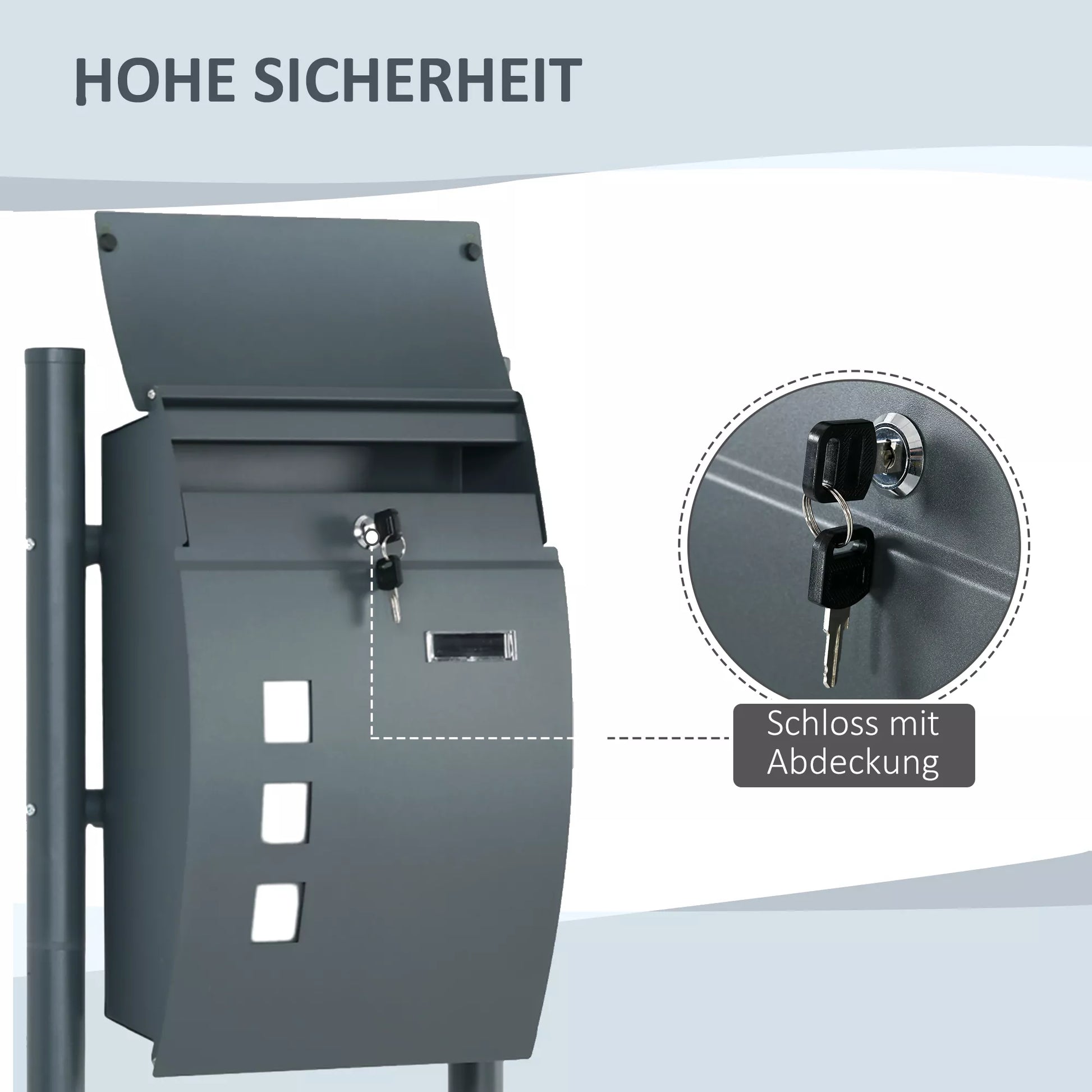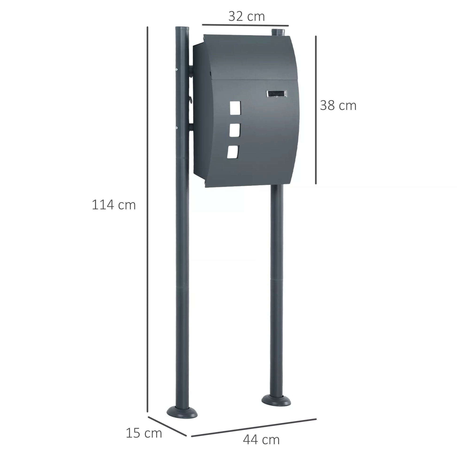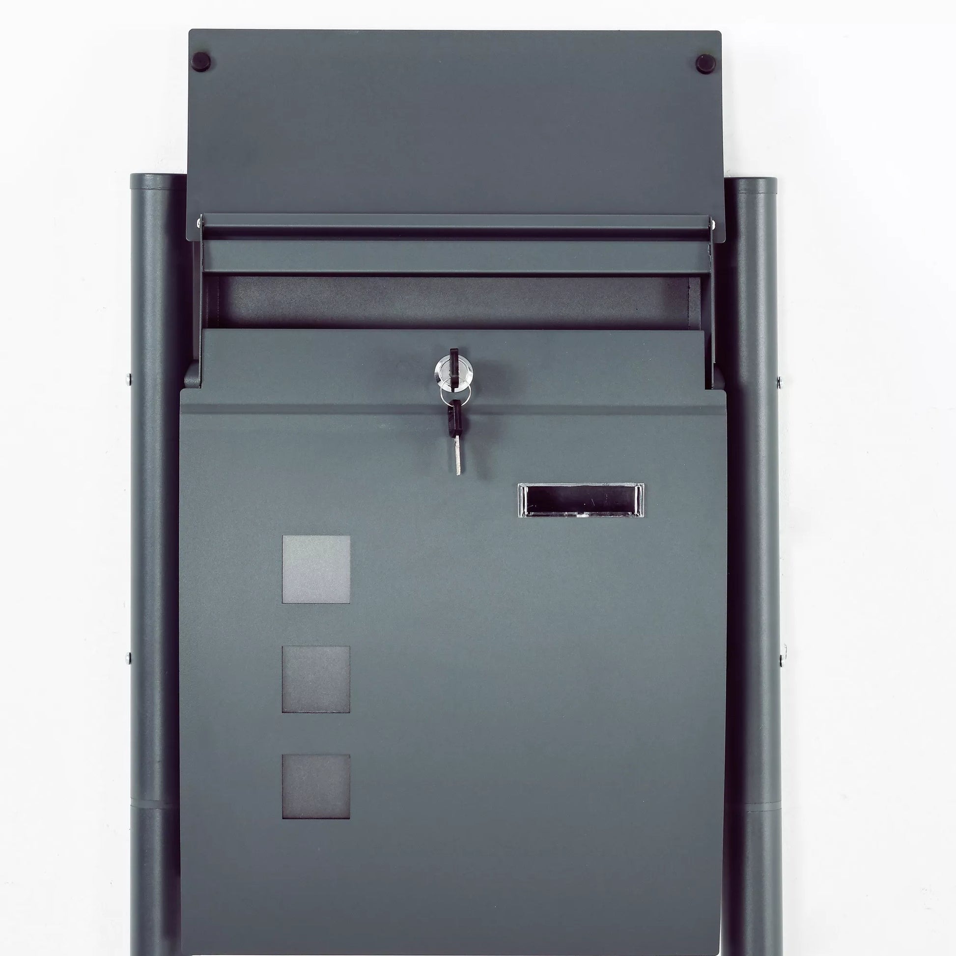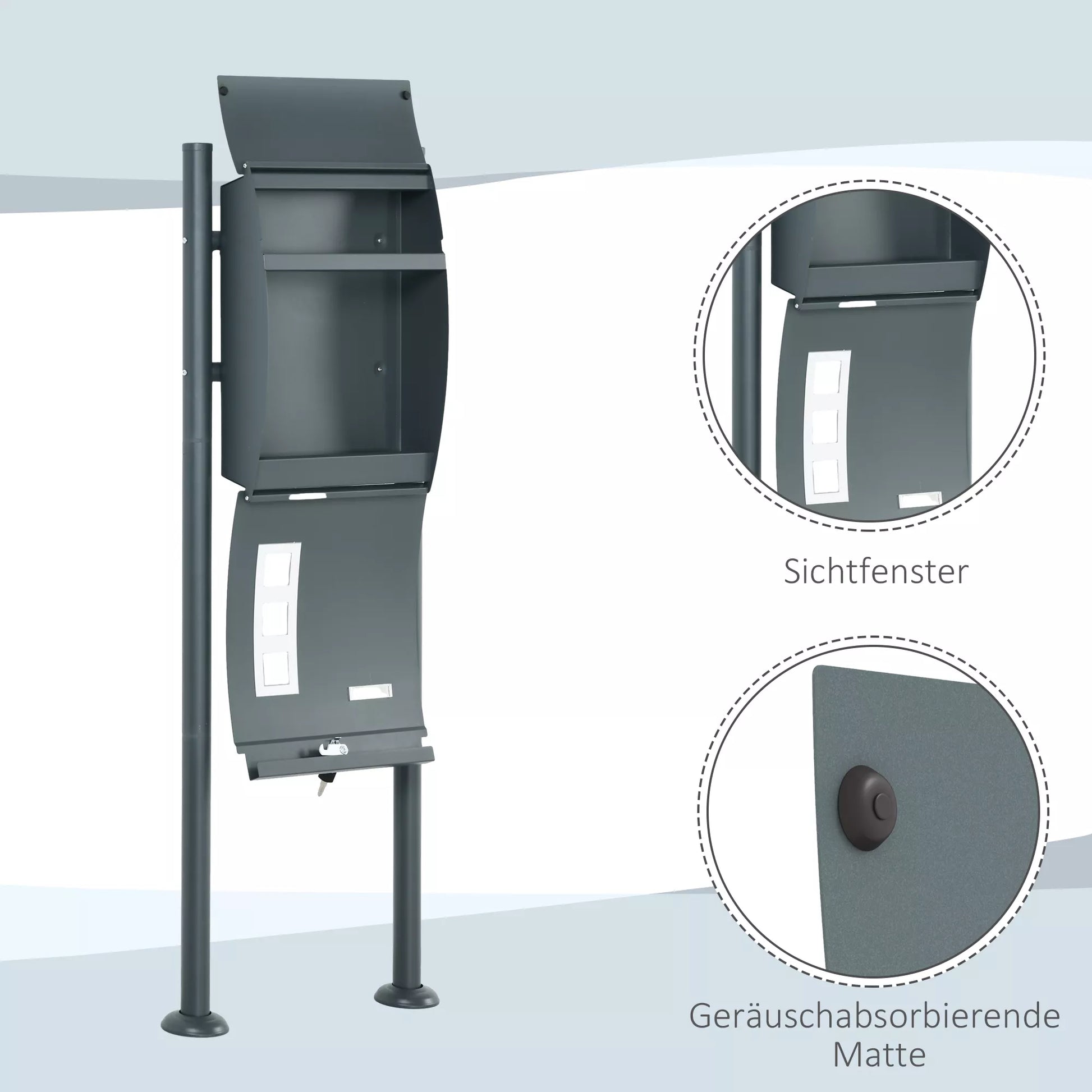 Pašto dėžutė, užraktas, pastatoma pašto dėžutė, 2 raktai, plienas, 44 cm x 15 cm x 114 cm, Pilka