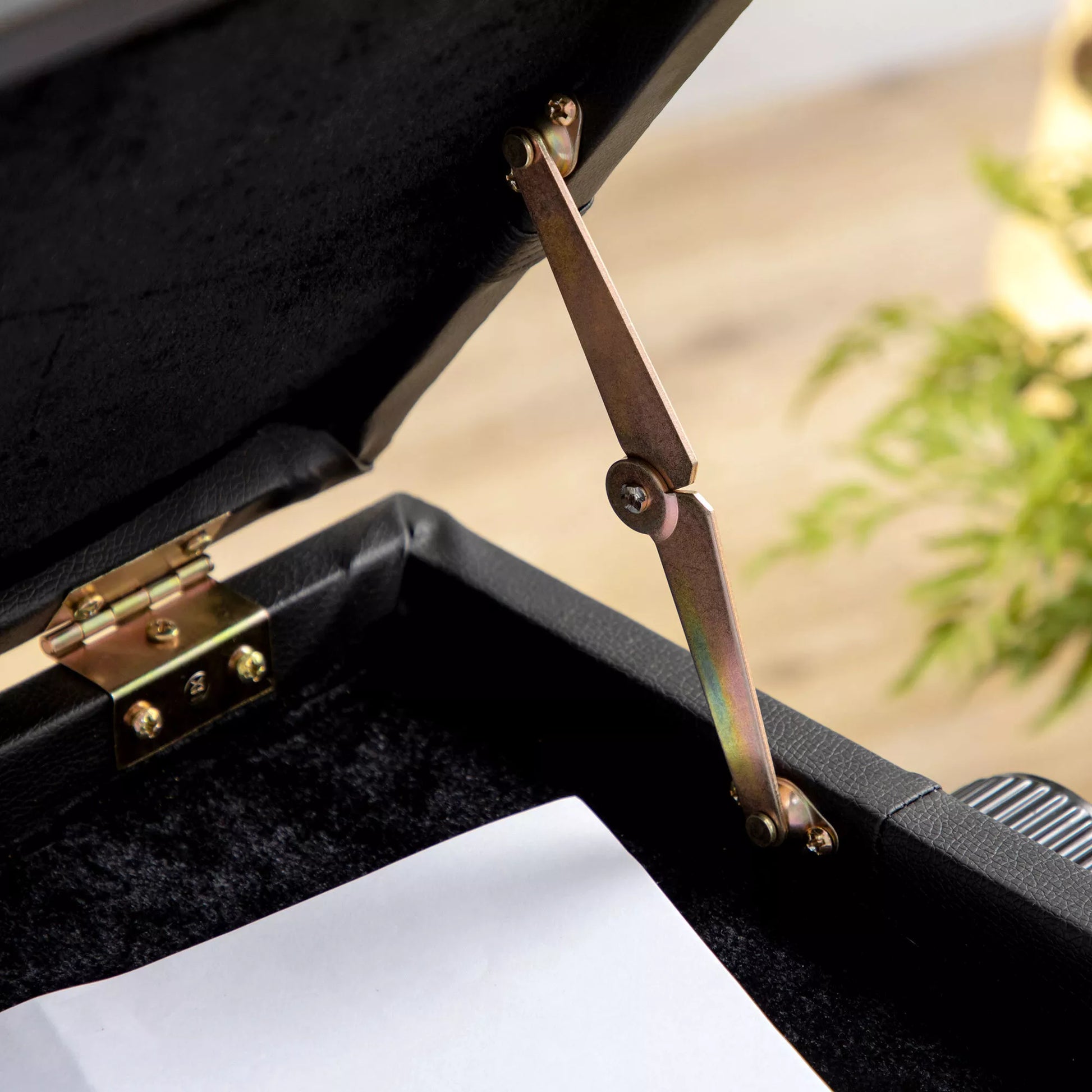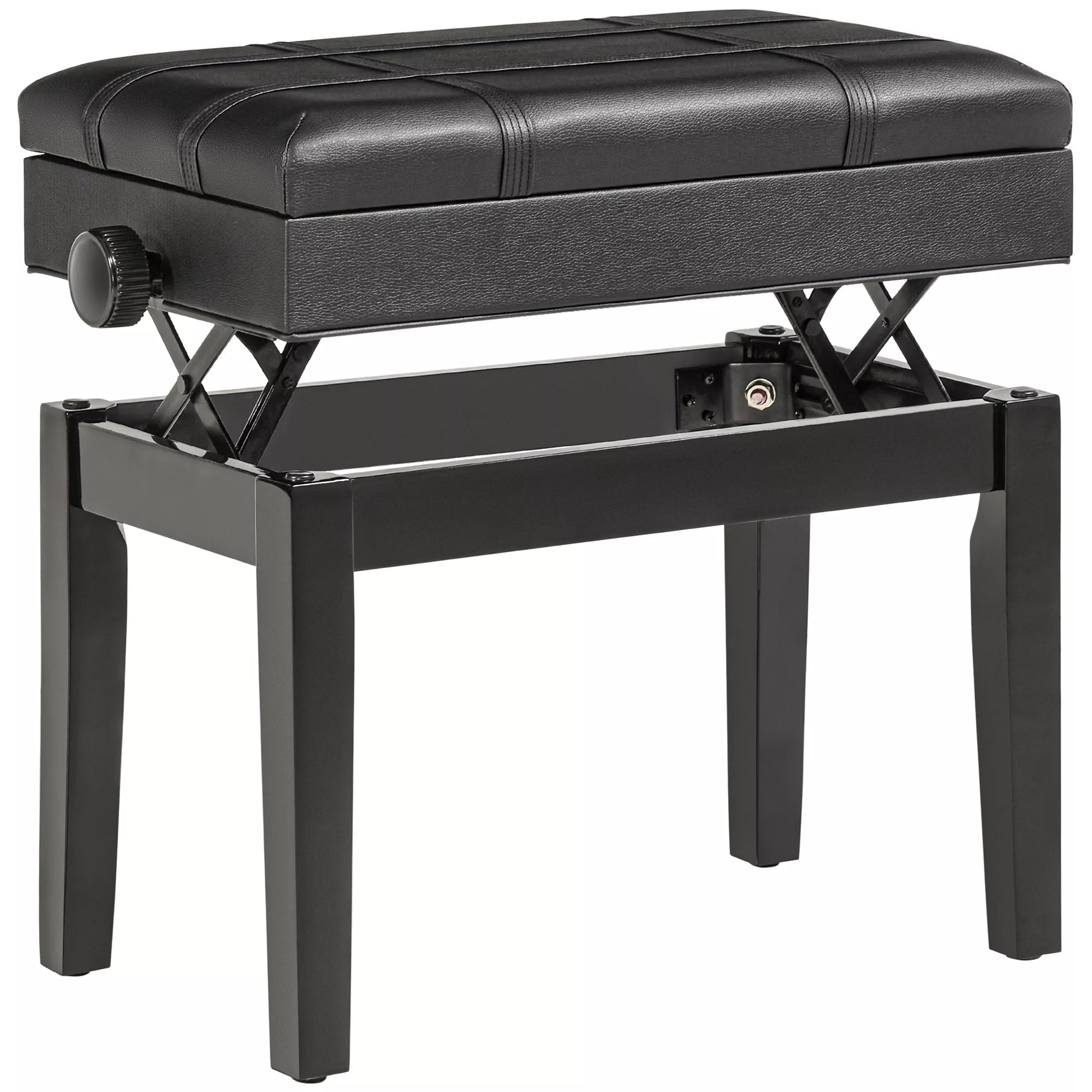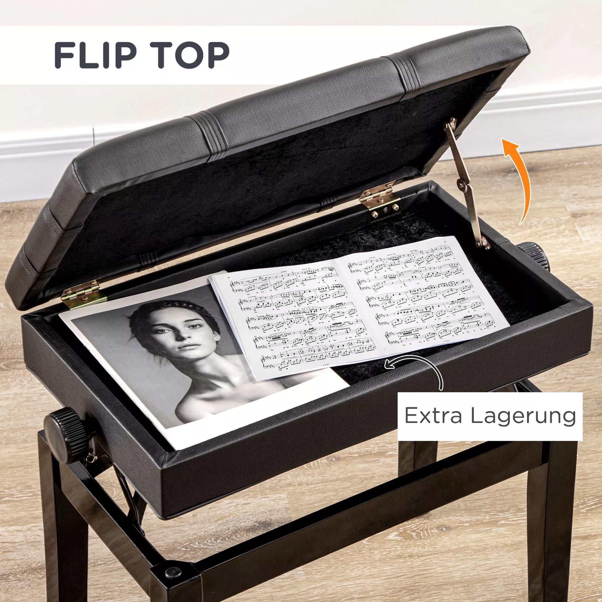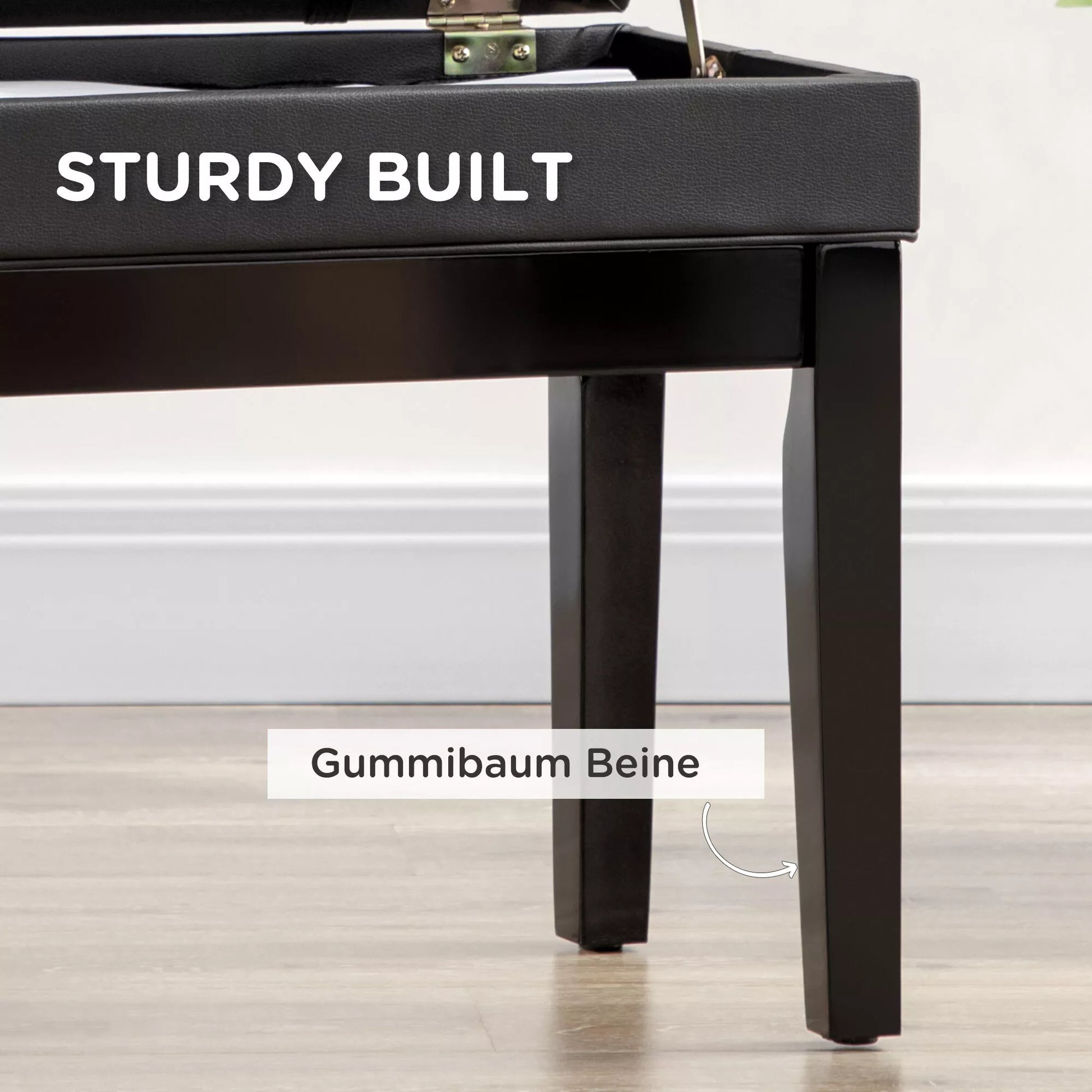 Pianino suolas su paslėpta daiktadėže, reguliuojamo aukščio, dirbtinė oda, juoda