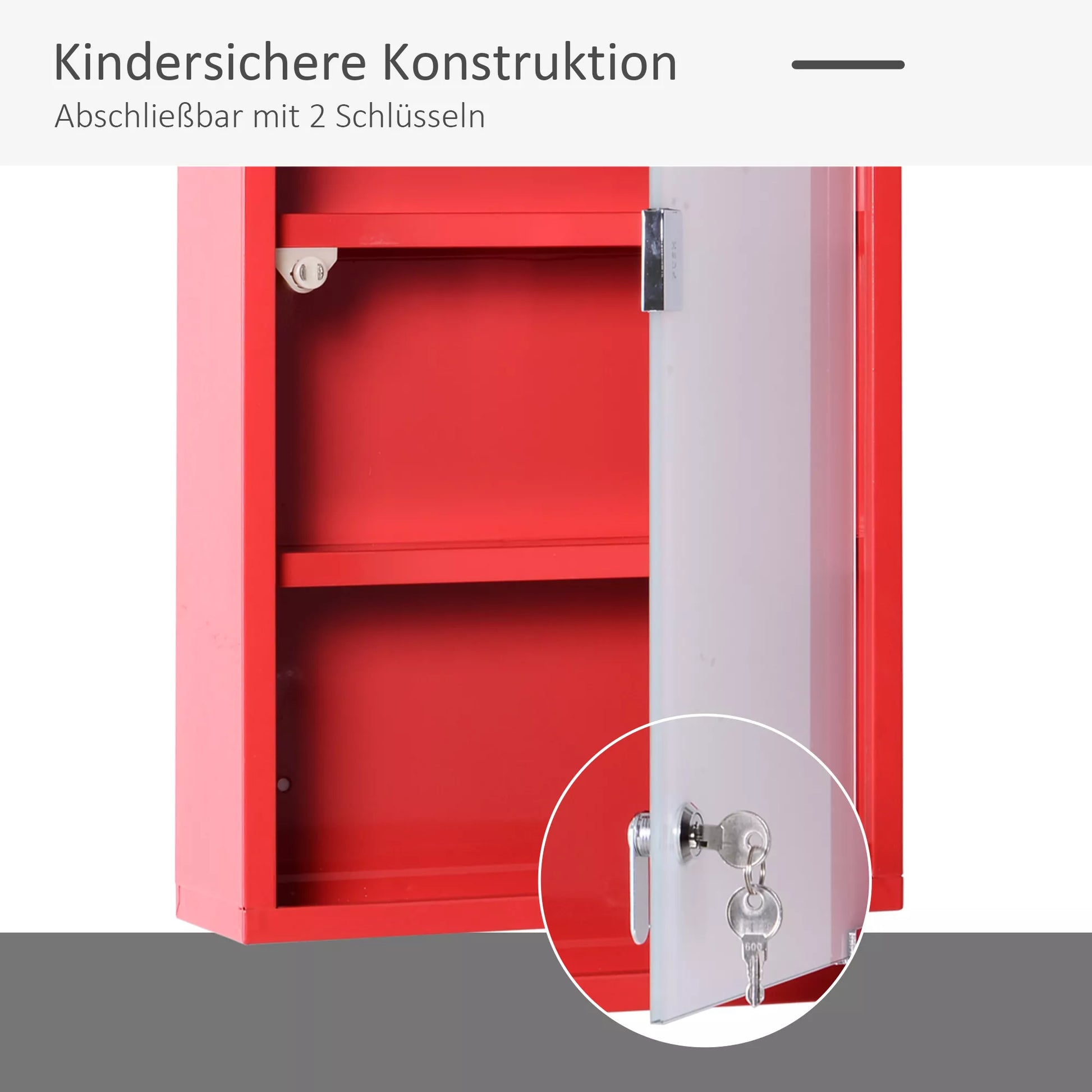 Laikykite savo nedidelę vaistinėlę saugiai mūsų raudonojoje vaistininkų spintelėje. Ji pagaminta iš aukštos kokybės metalo ir saugaus stiklo, todėl yra tvirta ir lengvai prižiūrima. Matinio stiklo dureles galima užrakinti, jos turi „Tip-On“ automatinį mechanizmą. Taip dureles patogiai atidarysite viena ranka. Net be ypatingų įgūdžių, vaistininkų spintelę galėsite lengvai surinkti ir pritvirtinti prie sienos. Kad jūsų vaistai ir medikamentai būtų saugiai laikomi ir visada po ranka.