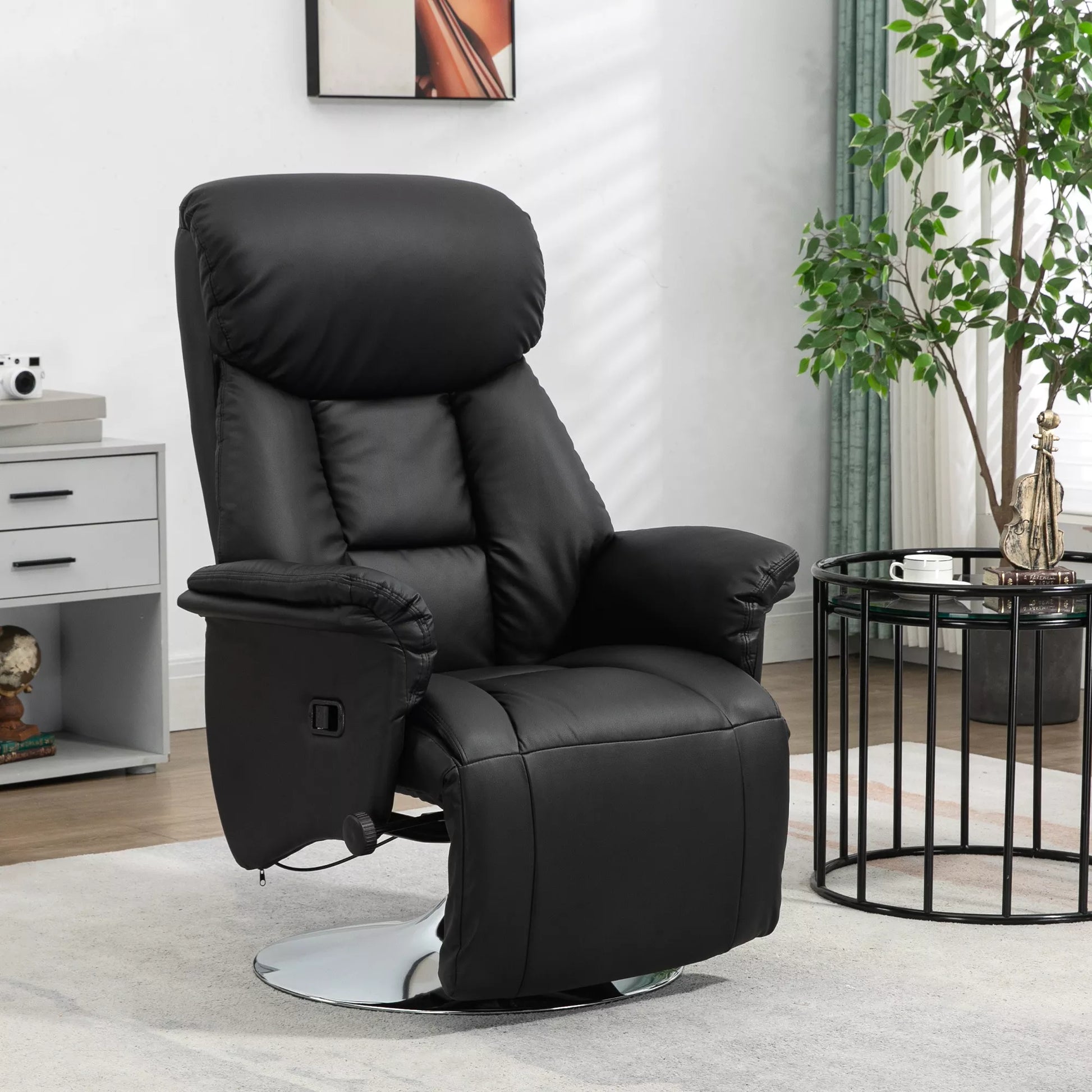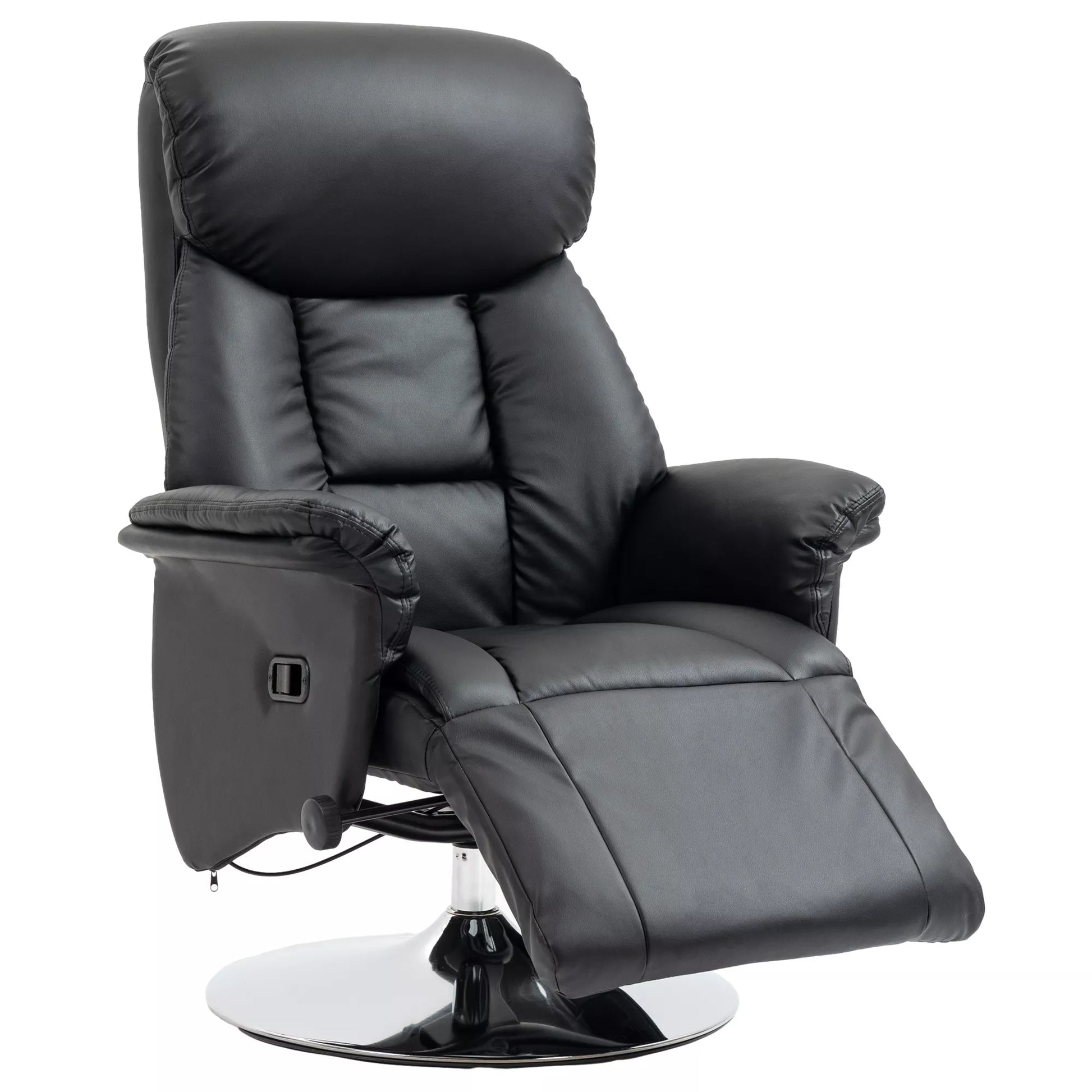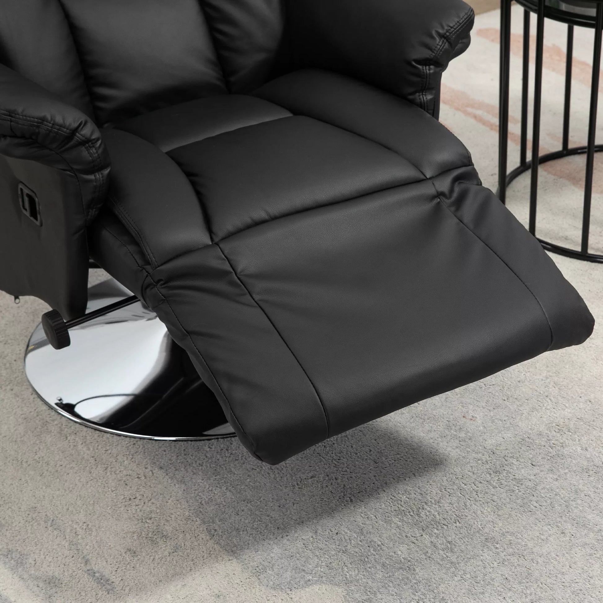 Poilsio krėslas, miegojimo funkcija, odinės išvaizdos, atrama kojoms, iki 150 kg, 78 x 80 x 109 cm, juodos spalvos