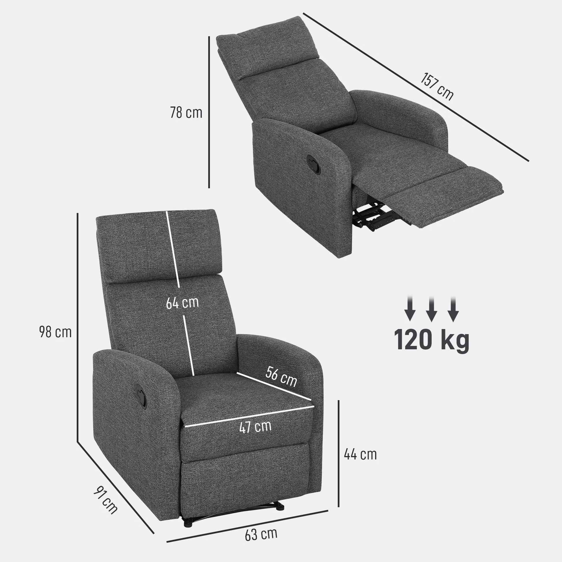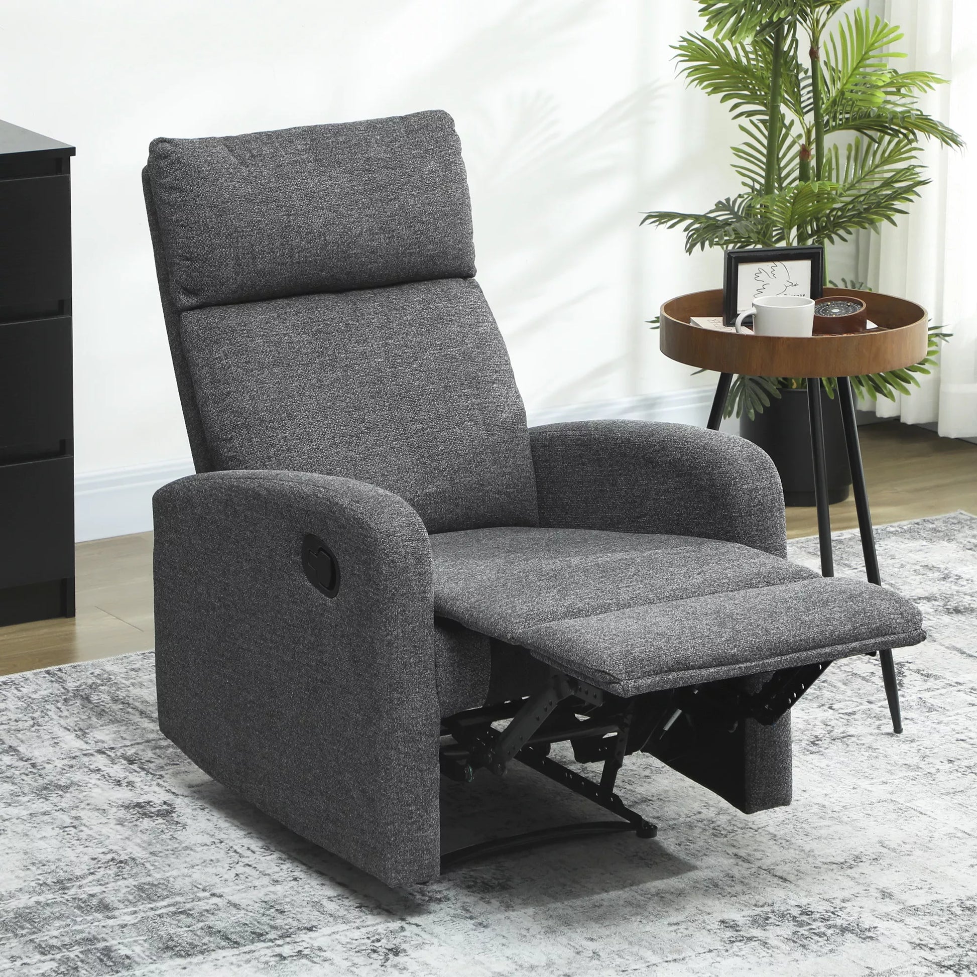 Poilsio krėslas, reguliuojamas atlošiamas krėslas su pritaikoma kojų atrama, modernus svetainės krėslas su audinio apmušalu, pilkas
