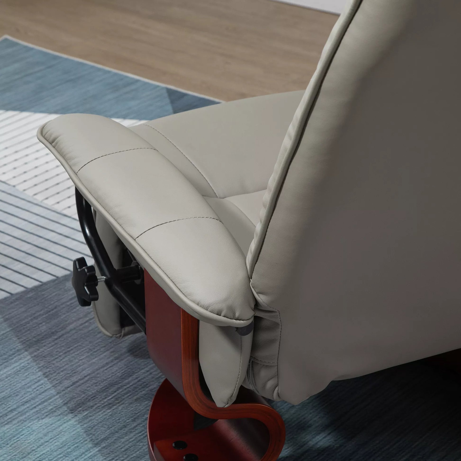 Po sunkios dienos atsipalaiduokite su šiuo relaksaciniu krėslu. Dėl 360° besisukančio pagrindo galėsite laisvai judėti, o tvirta medžio konstrukcija užtikrins stabilumą. Pilnas paminkštinimas suteikia maksimalų komfortą, o reguliuojama atlošas ir rankinis kojų atramos valdymas garantuoja visišką atsipalaidavimą. Elegantiškas dirbtinės odos apmušalas puikiai derina grožį ir stilių. Leiskite sau pasimėgauti vertinamu prabanga.