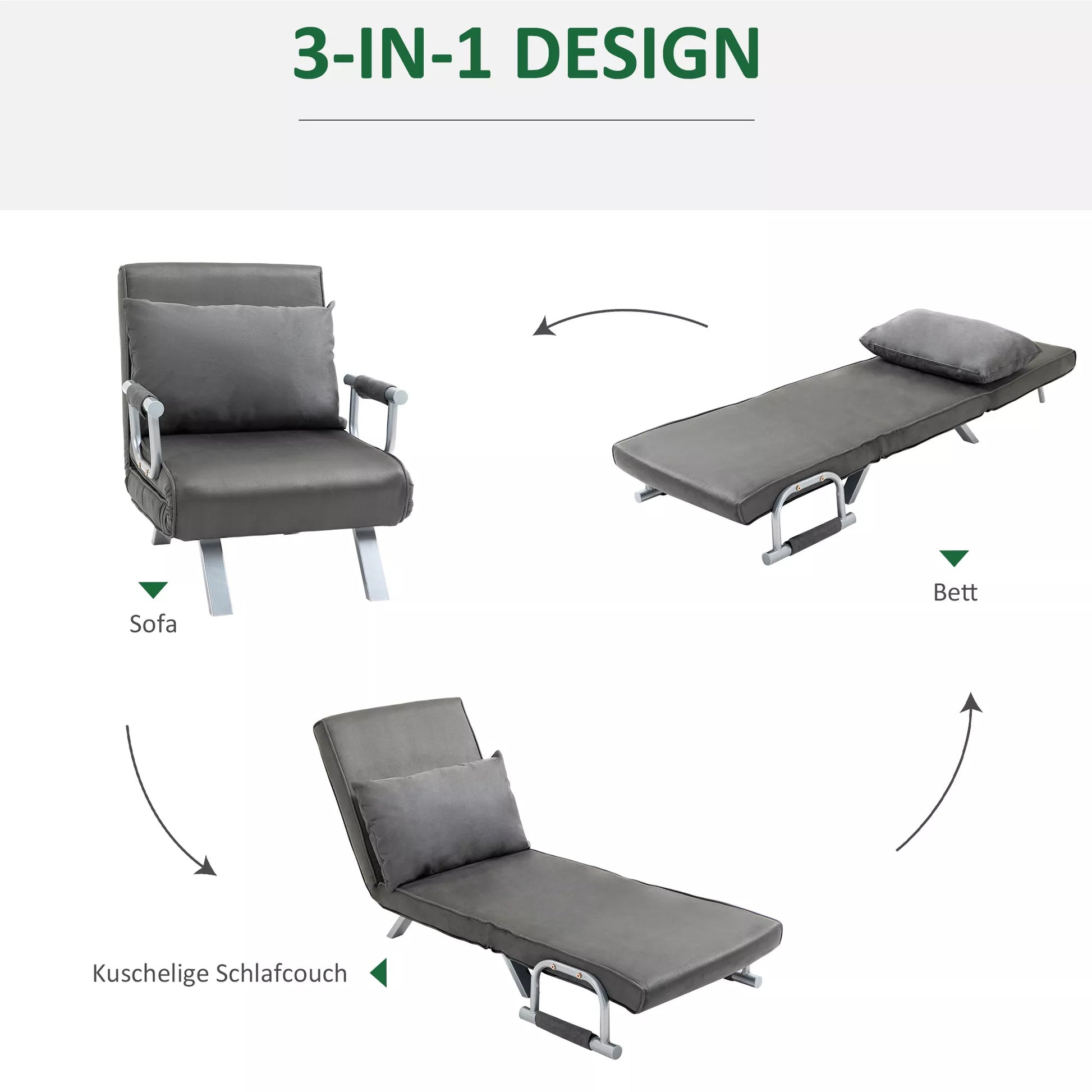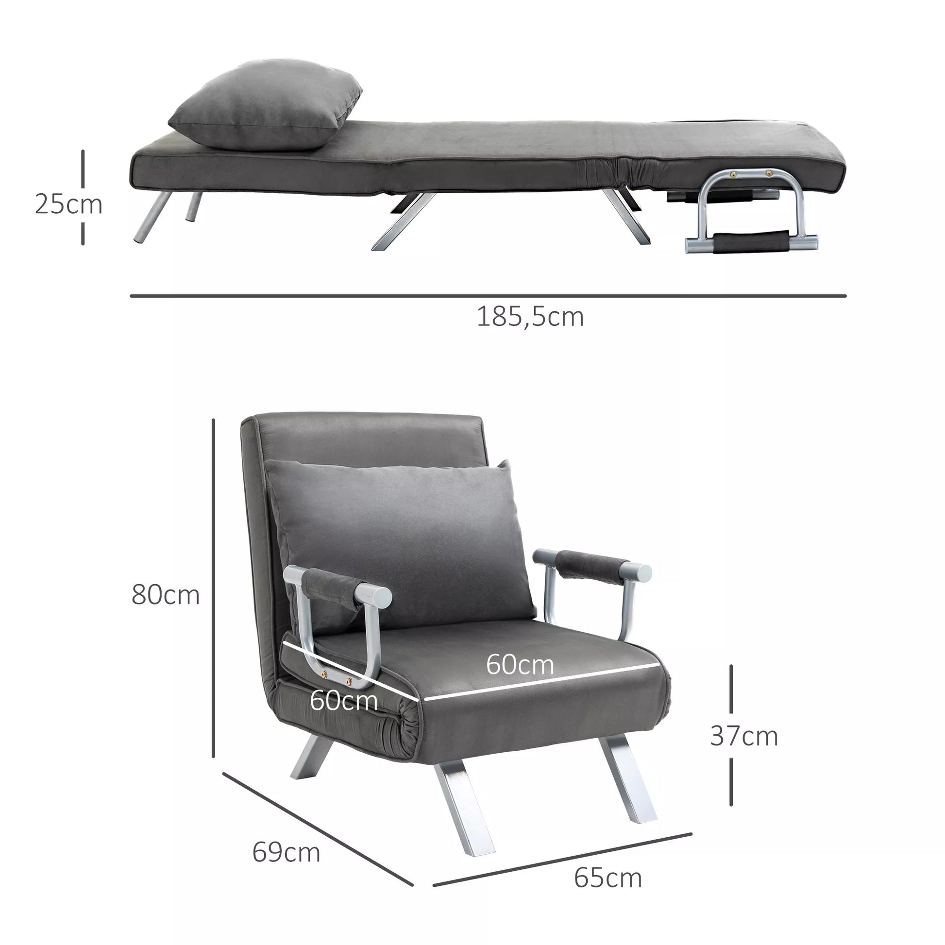 Relaksacinis fotelis, su gulėjimo funkcija, svečių lova, 65 cm x 69 cm x 80 cm, Pilkas