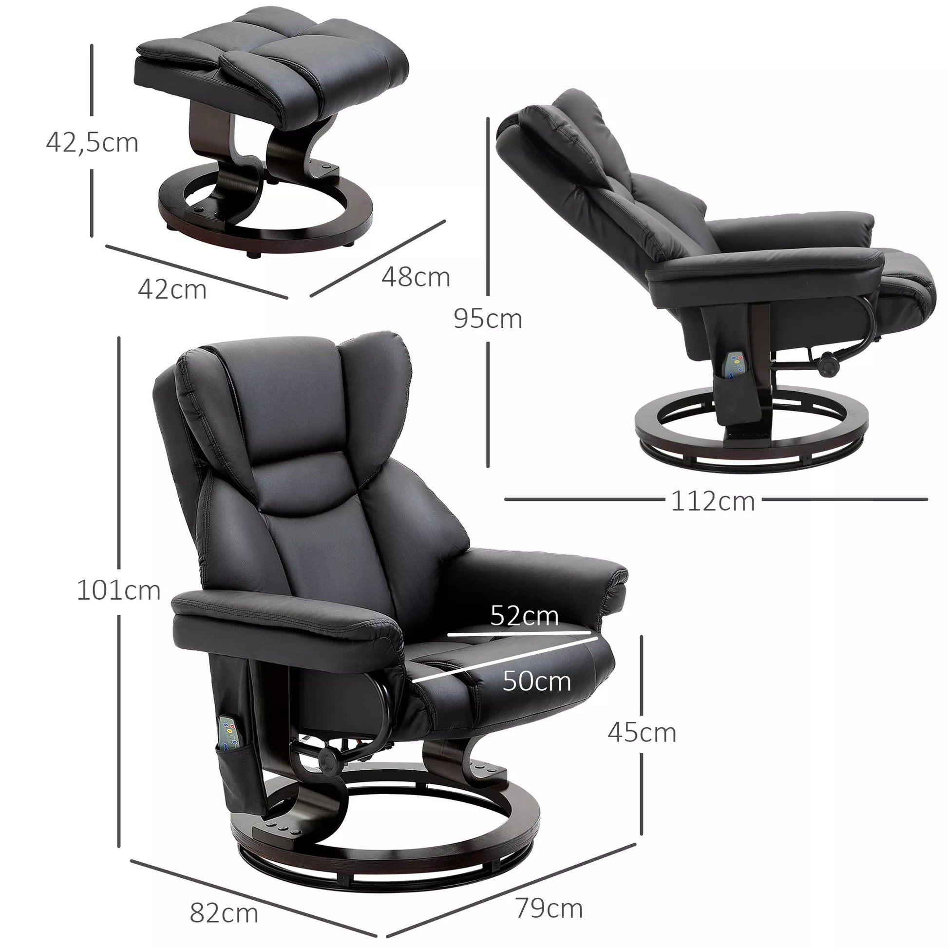 Relakso kėdė su masažo funkcija, pakoja, atlošiamoji funkcija, dirbtinė oda, 79 x 82 x 101 cm