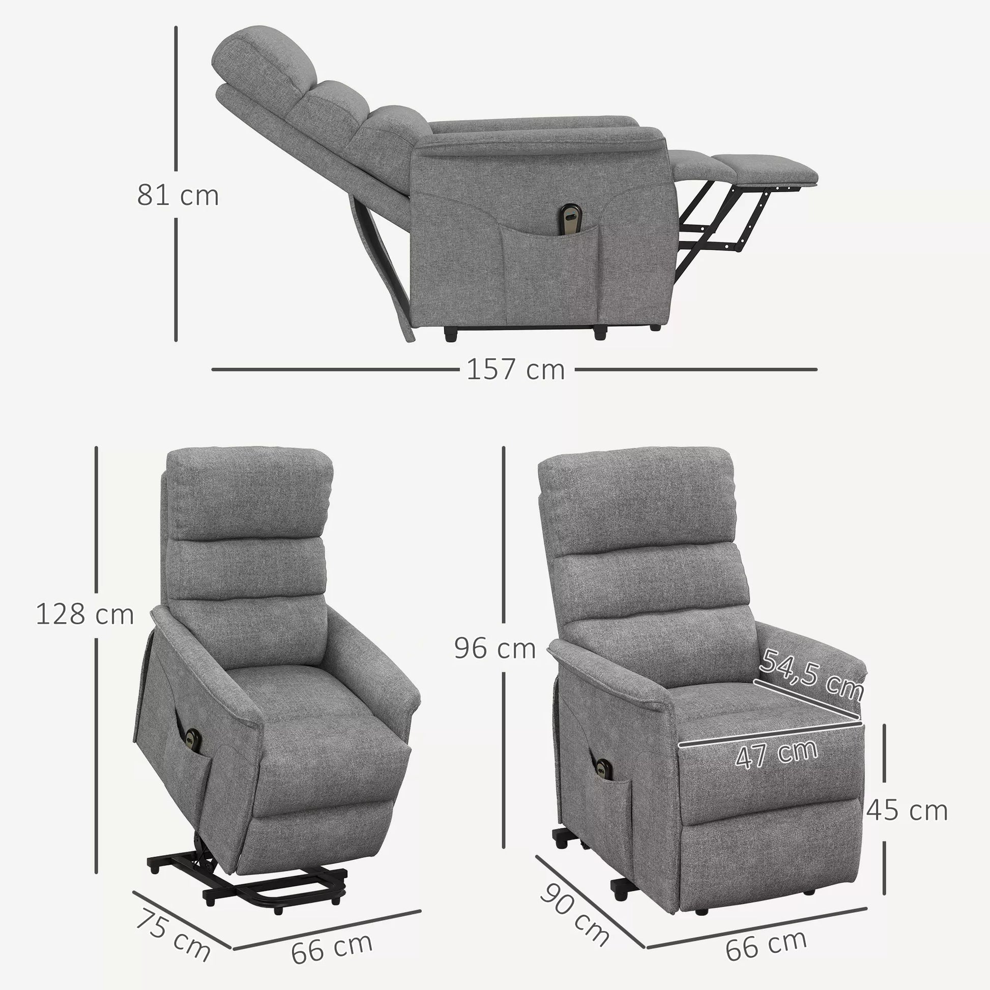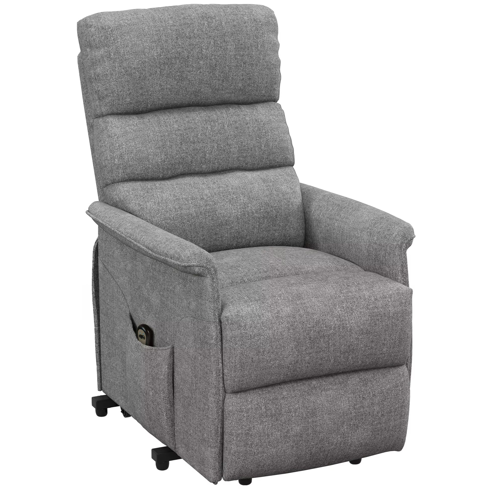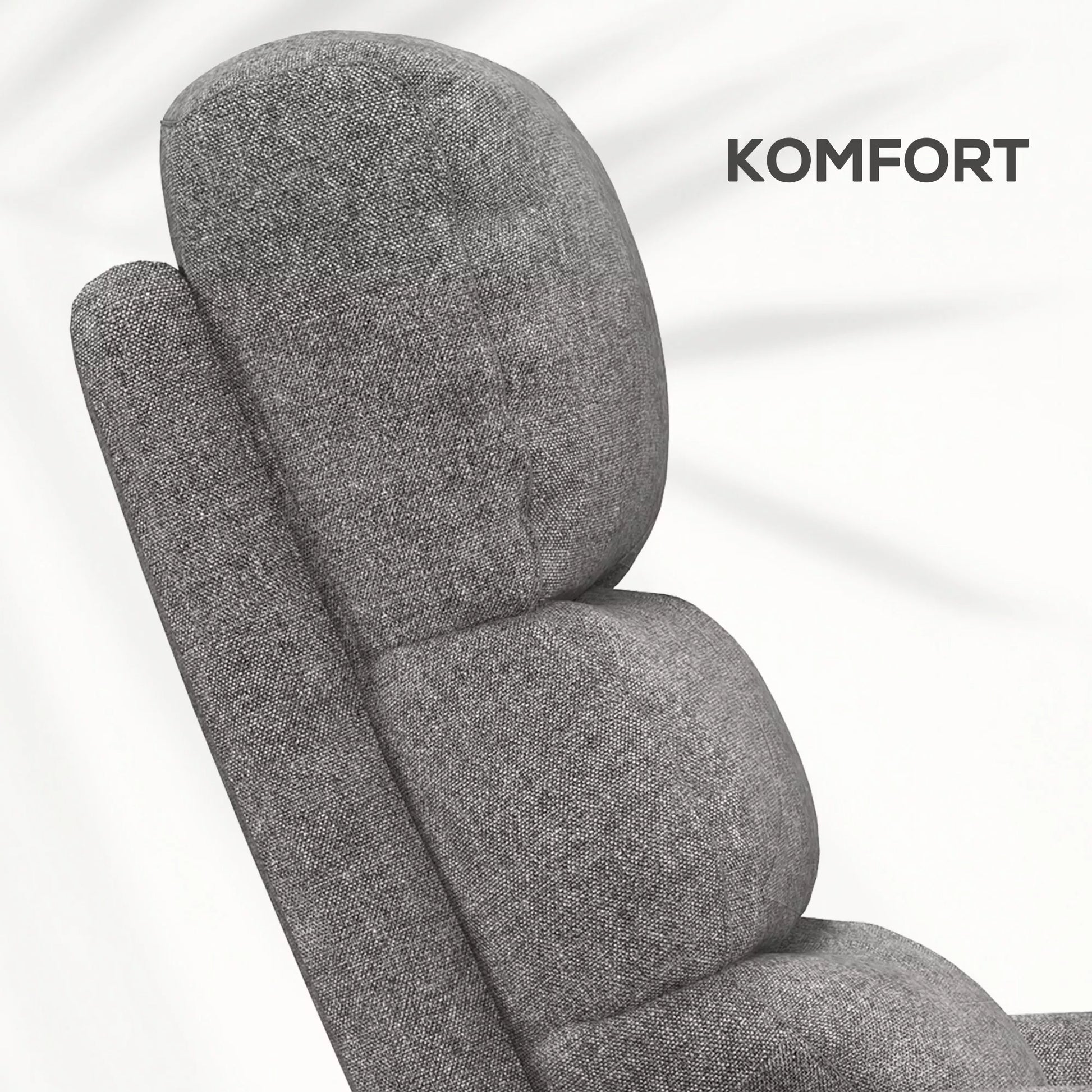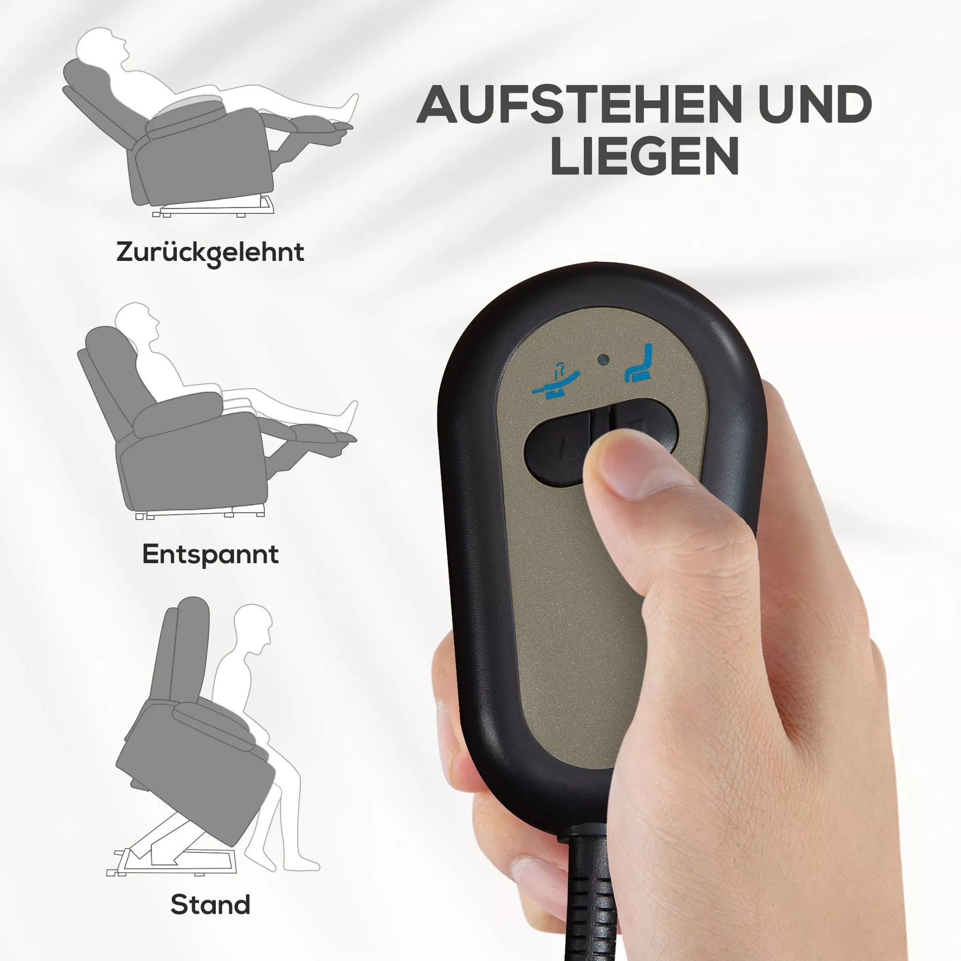 Relaksacinis krėslas su pagalba atsikeliant, reguliuojama atlošas ir kojų atrama, iki 120 kg, 66 x 90 x 96 cm, Pilkos spalvos