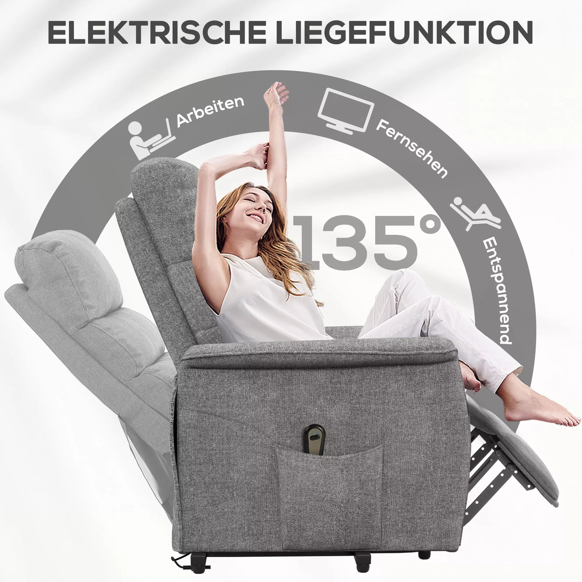 Patirkite nepakartojamą komfortą su mūsų elektrine TV kėde su pagalba atsikeliant. Šis elektrinis, reguliuojamas kino krėslas suteikia jums galimybę atlošą ir kojų atramą visiškai pagal jūsų pageidavimus reguliuoti nuotolinio valdymo pulteliu. Vienu mygtuko paspaudimu lengvai pereisite iš sėdimos į gulimą padėtį ir atgal, idealiai tinka atpalaiduojančioms akimirkoms jūsų namuose. Kad būtų lengviau atsikelti, TV krėslą galima pakelti, kad greitai ir saugiai atsidurtumėte ant kojų.