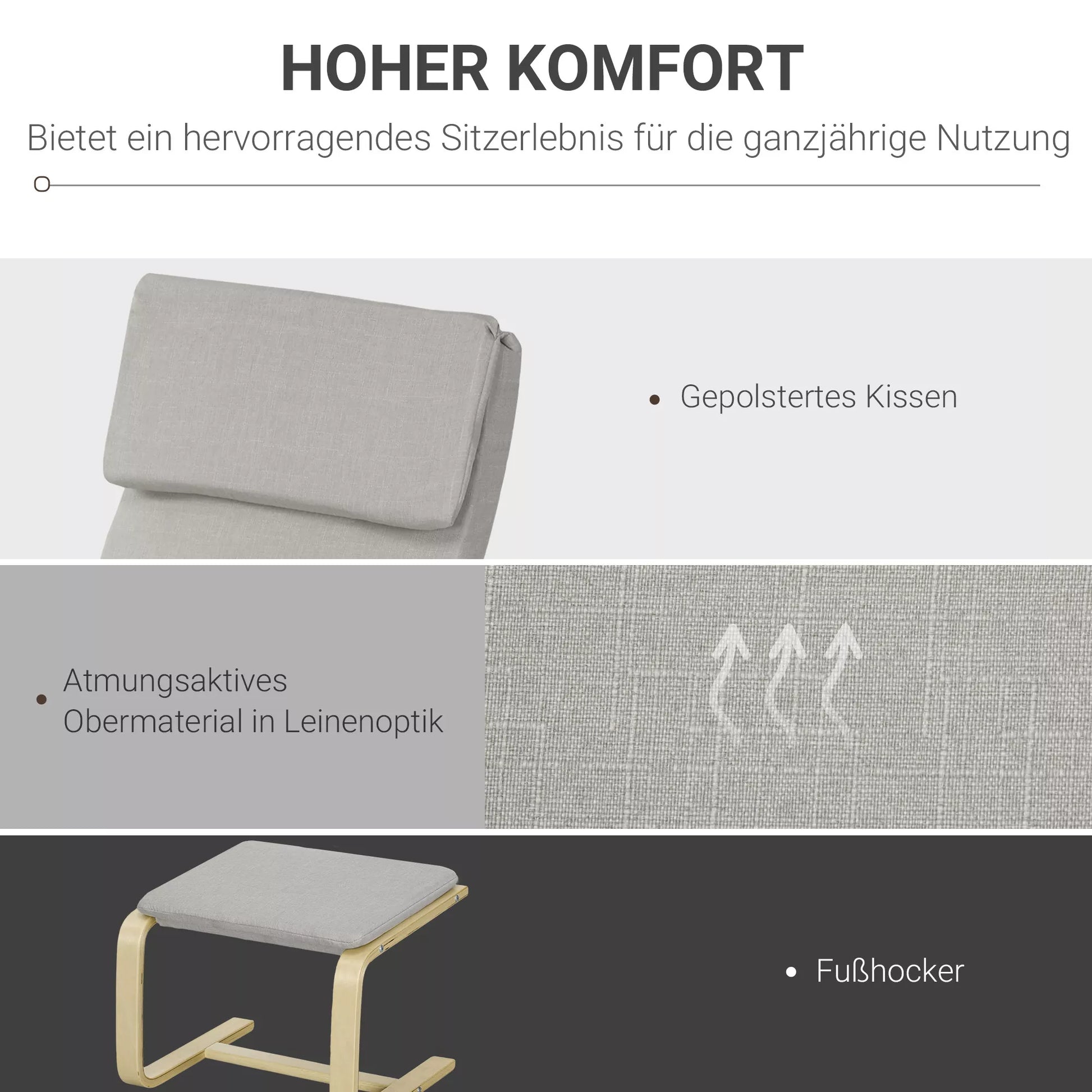 Poilsio krėslas su pakoja, lino išvaizdos apmušalas, medinis rėmas, iki 120 kg, šviesiai pilka/natūrali