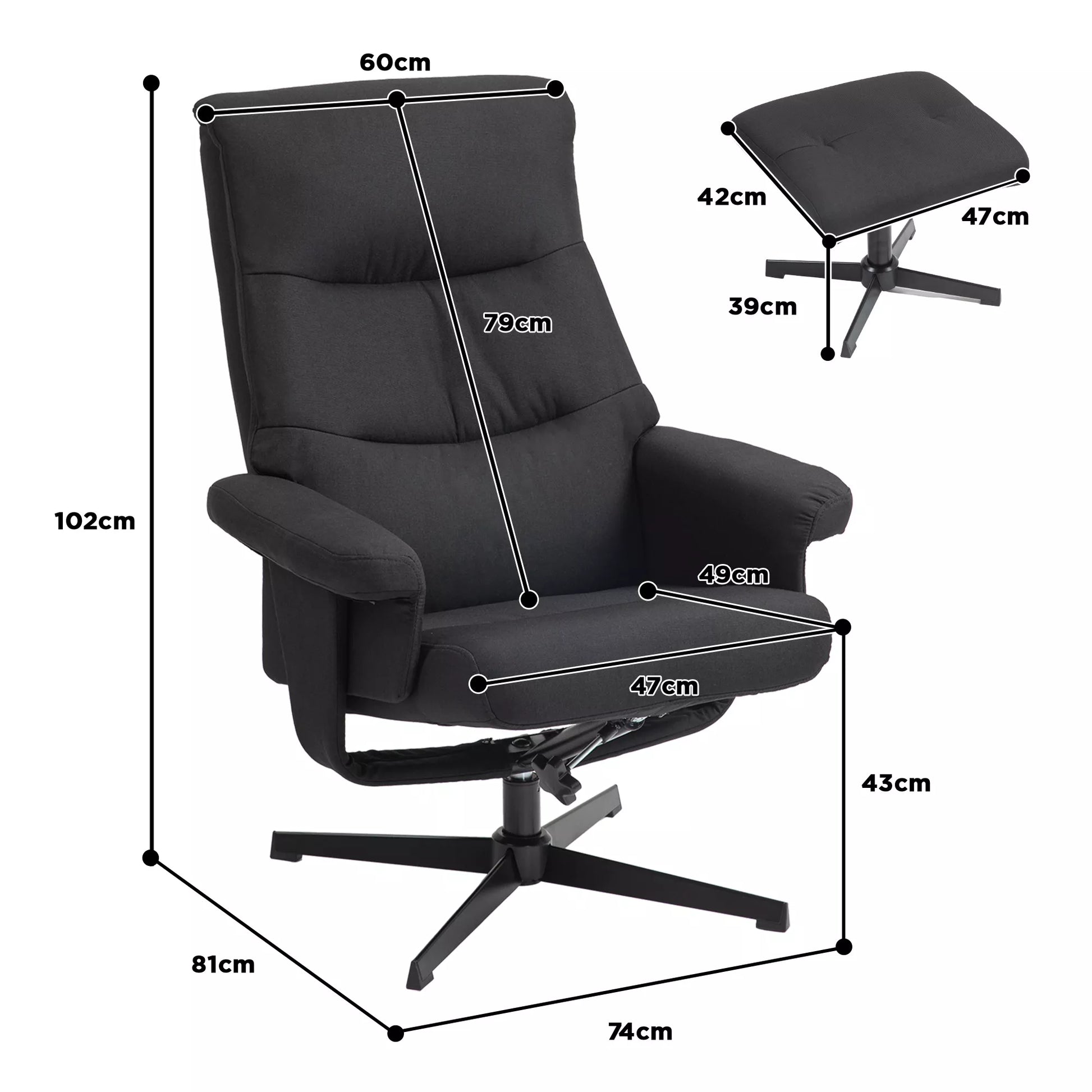- ✔ Sėdimosios dalies matmenys: 47A x 49G x 43A cm