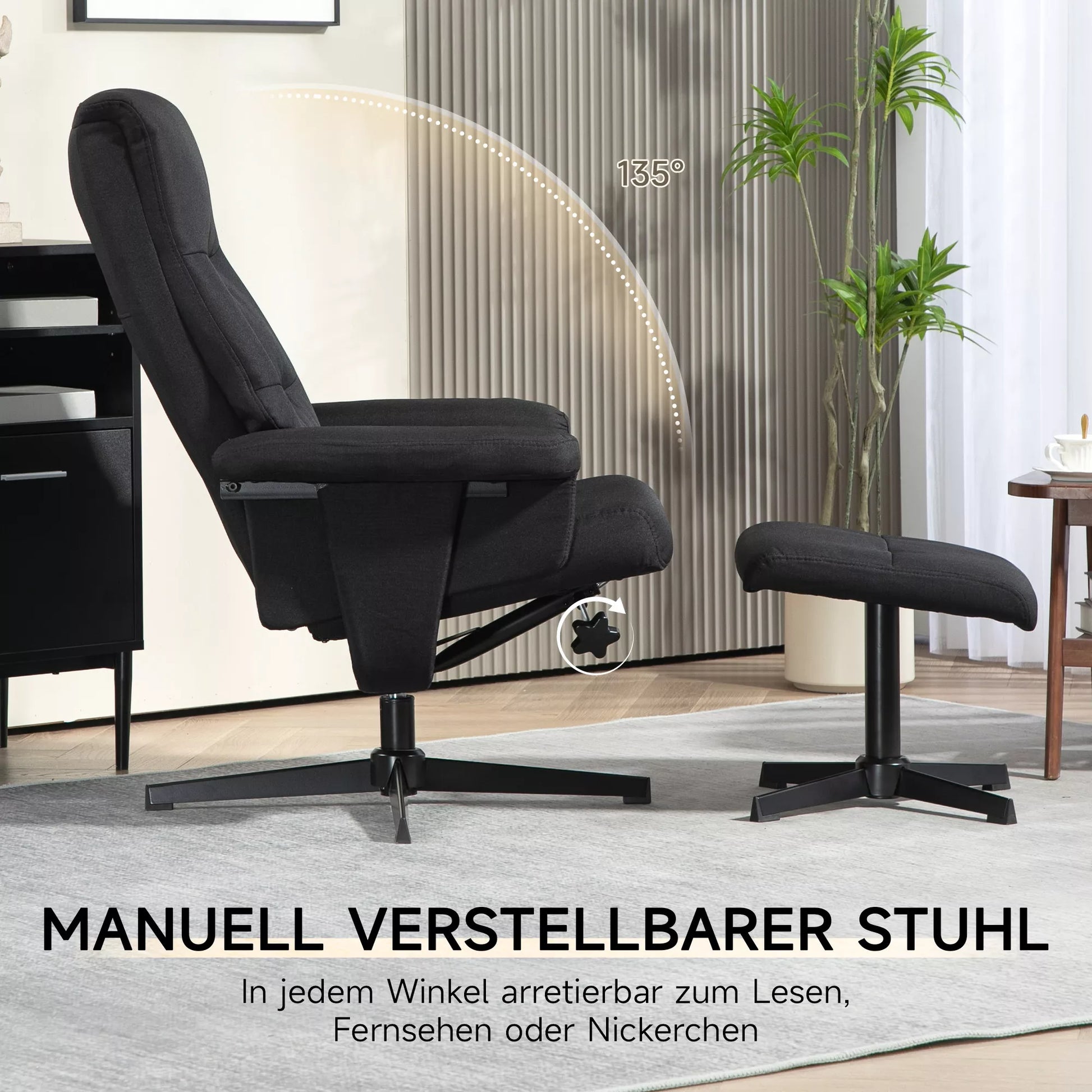 Poilsio krėslas su pakoja, sukamasis, su sūpynių funkcija, aksomo išvaizda, iki 150 kg, juodas