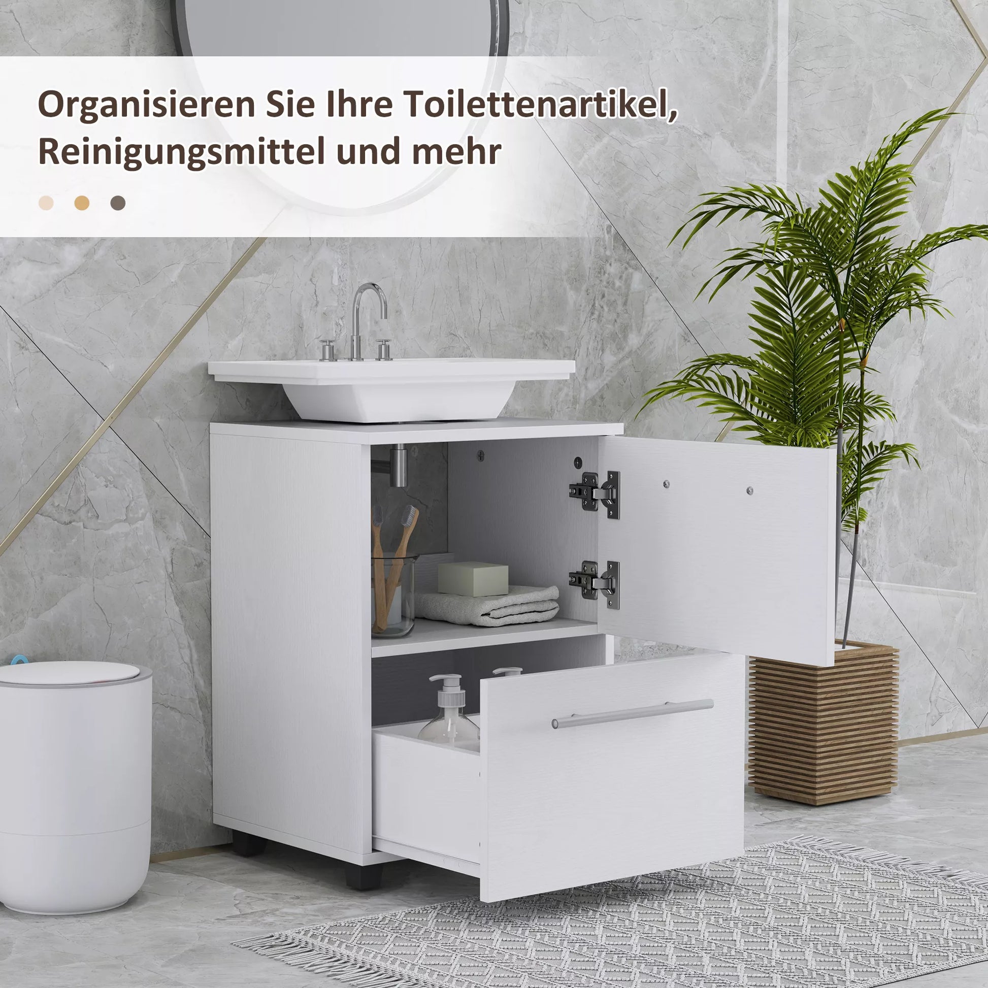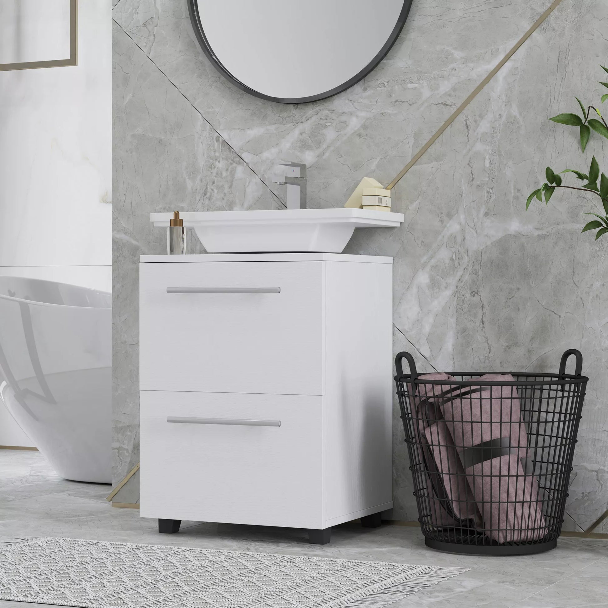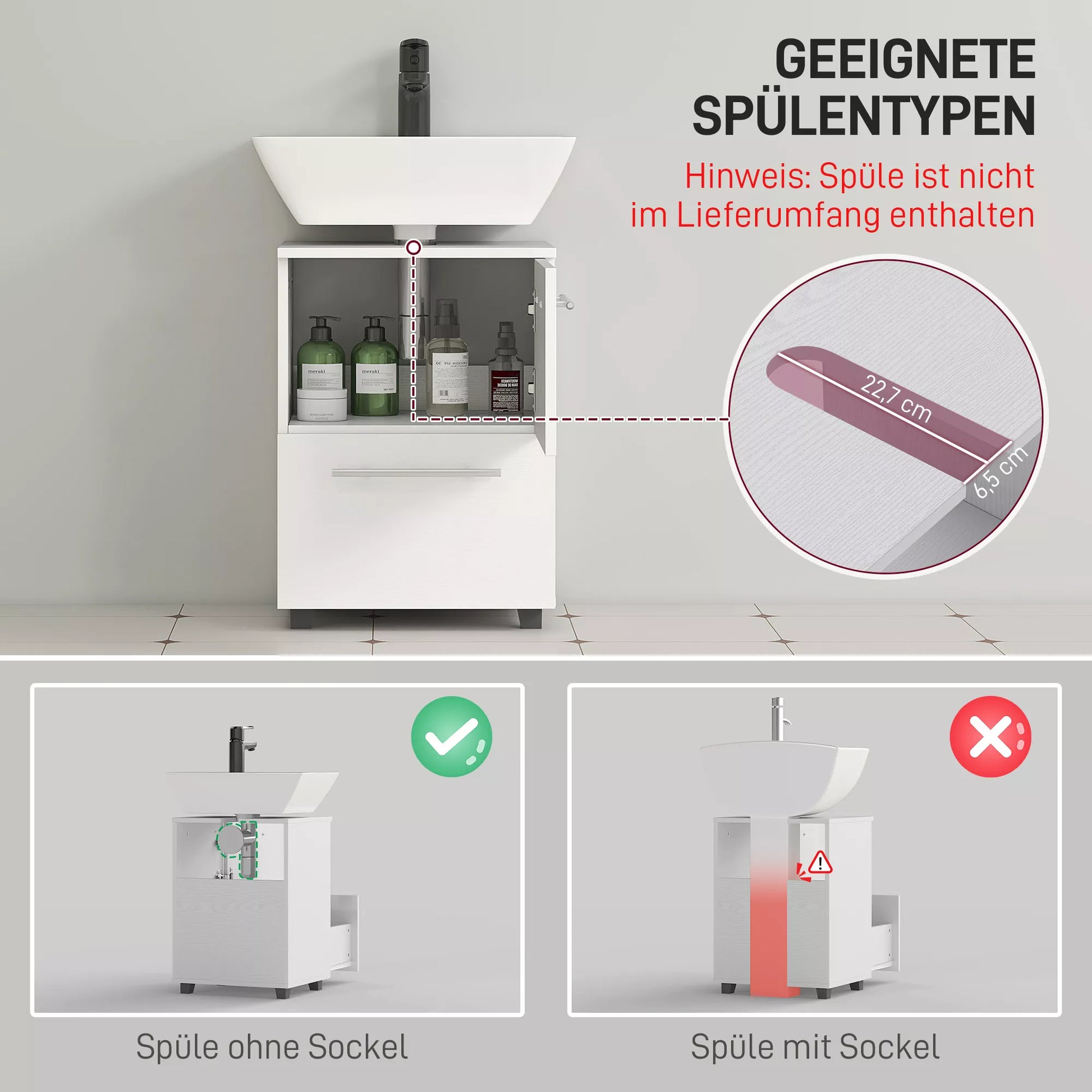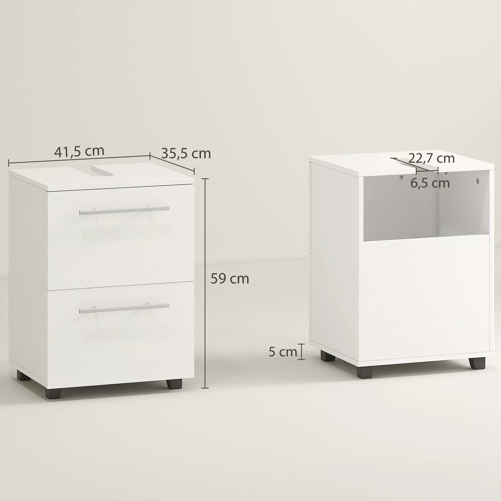 Padidinkite savo vonios kambario funkcionalumą su šia praustuvo spintele. Dėl sumanumoje suprojektuotos U formos išpjovos, ji idealiai tinka po laisvai pastatomais praustuvais. Ši kompaktiška spintelė turi vieną stalčių ir vieną lentyną, siūlančius praktišką vietą jūsų vonios kambario reikmenims laikyti. Puikus priedas bet kokiam vonios kambariui.