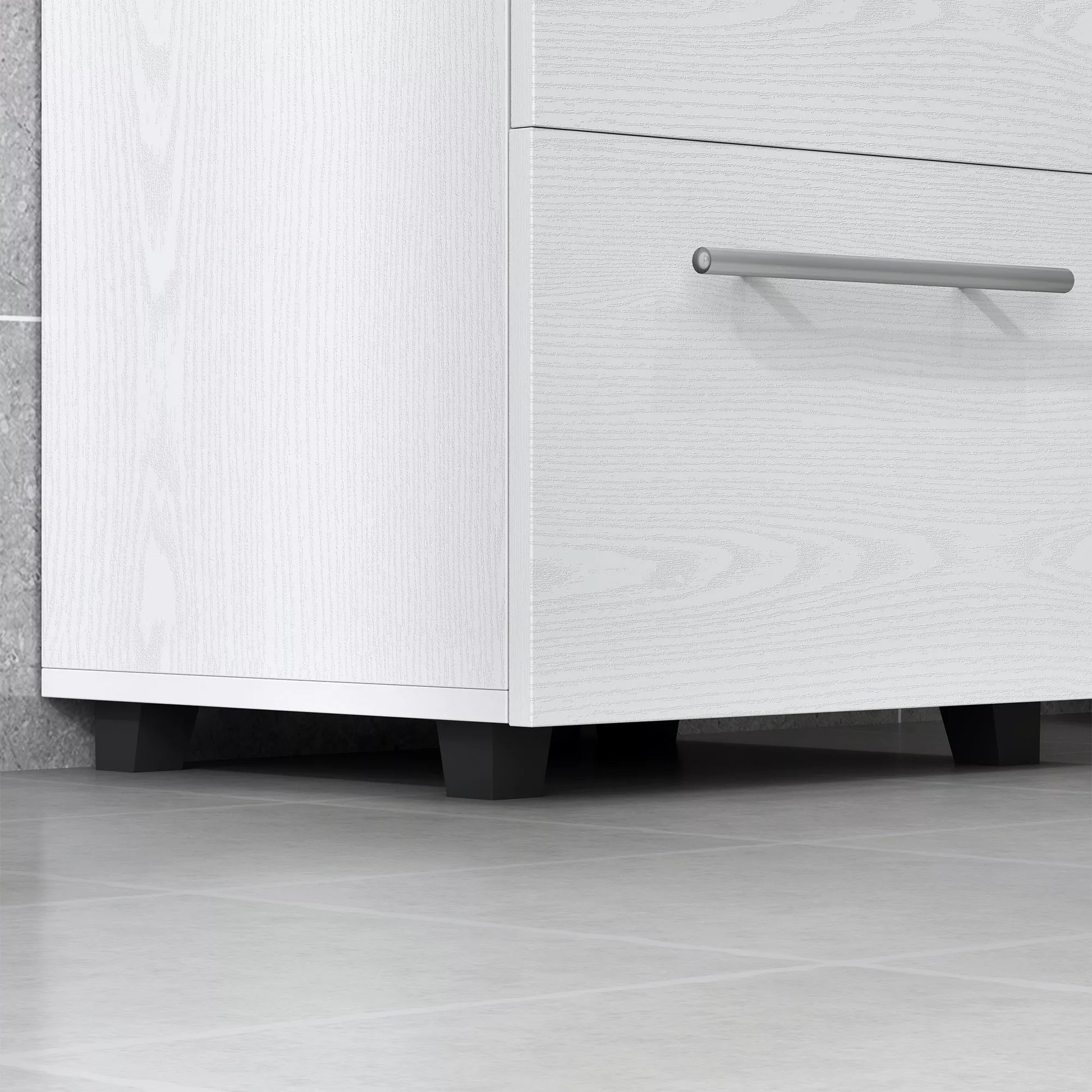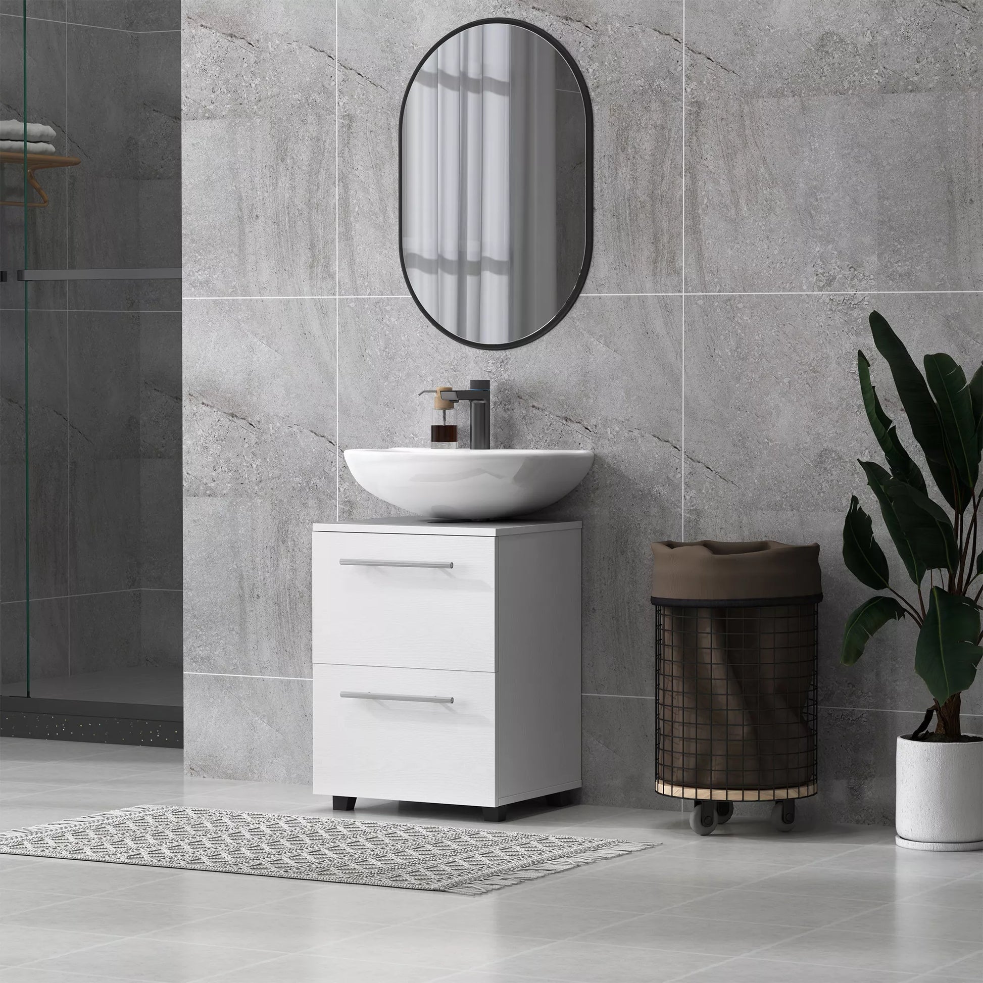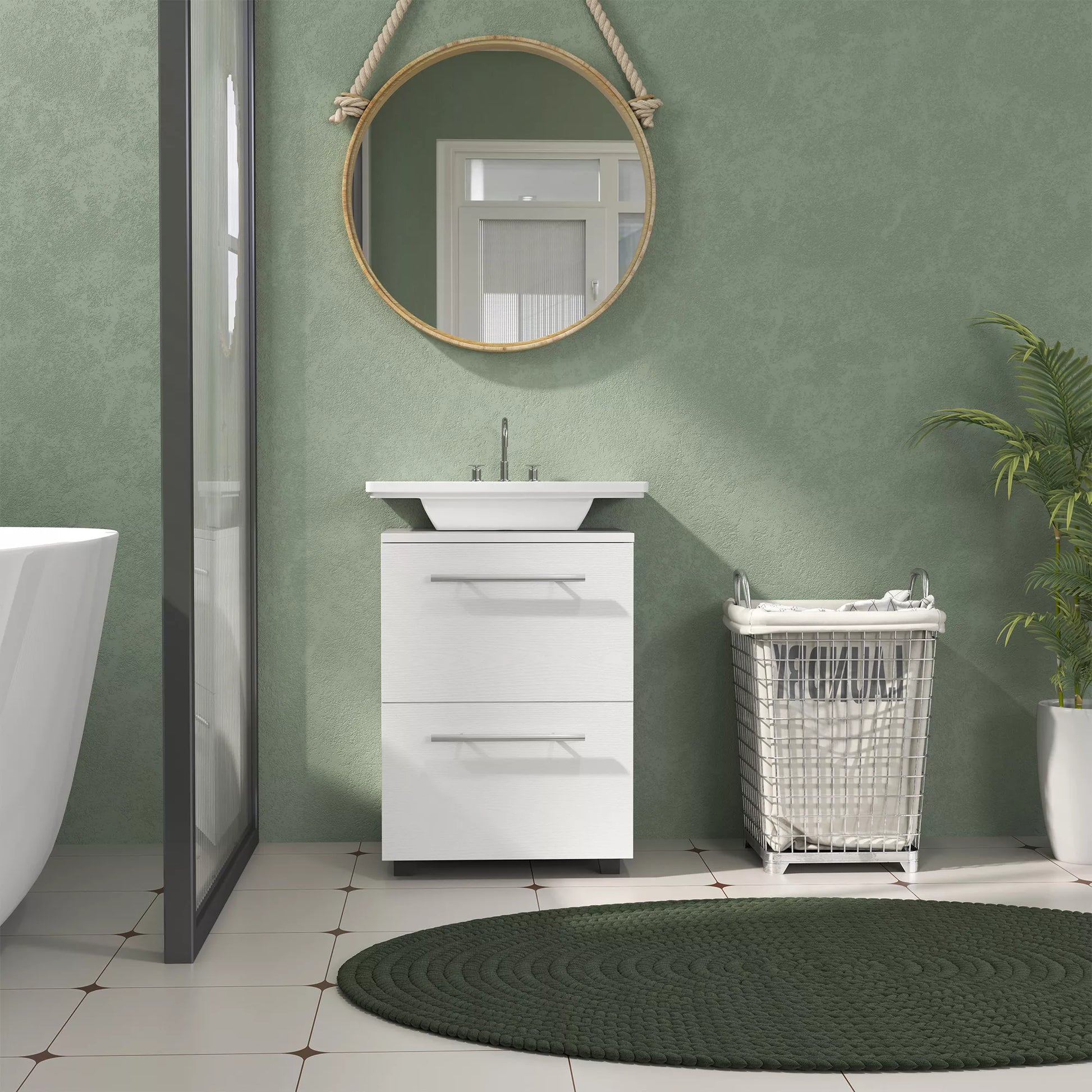 Vonios spintelė, praustuvo komoda su stalčiumi, kompaktiška, medžio drožlių plokštė, balta