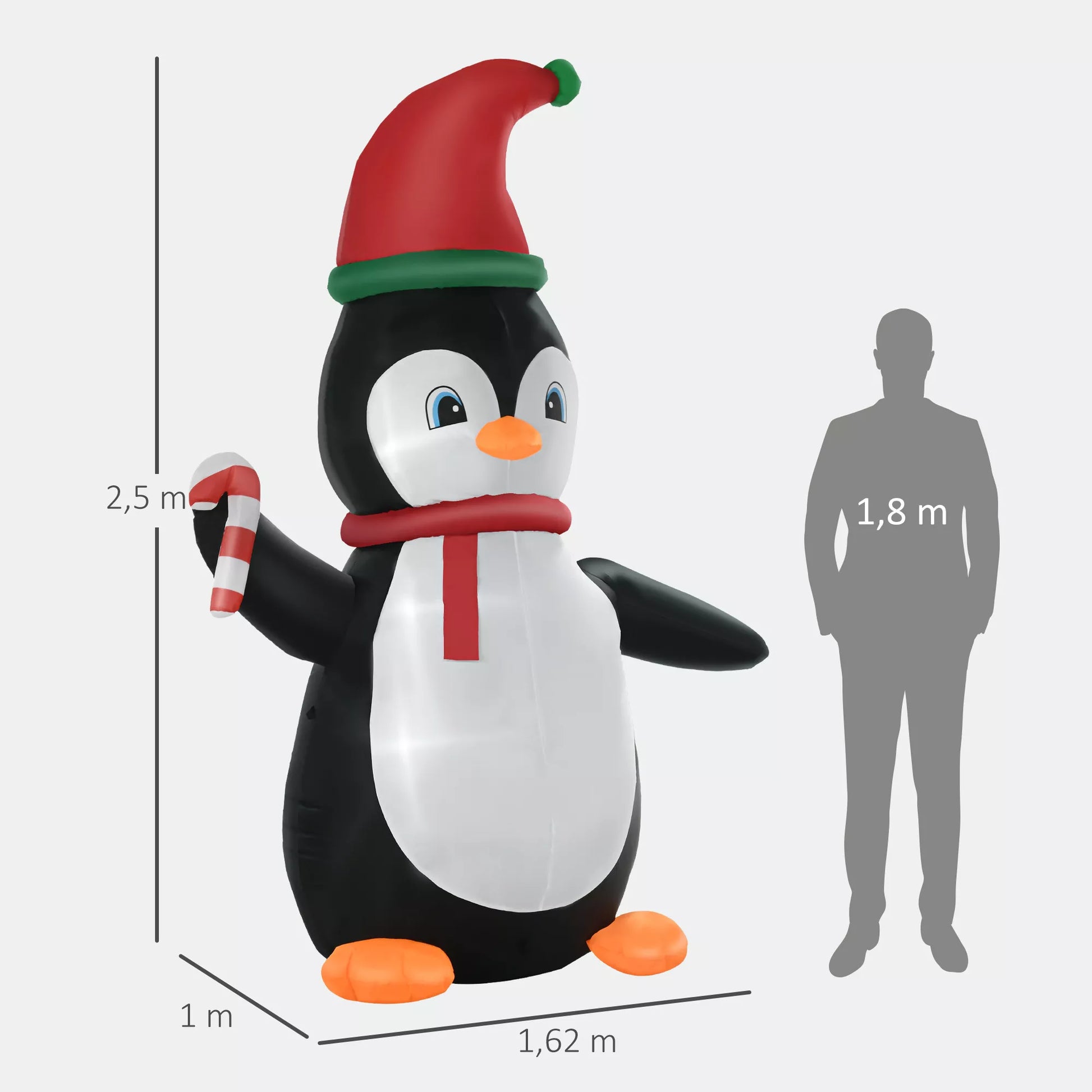 Pripučiamas kalėdinis dekoras, 2,5 m pripučiamas kalėdinis pingvinas su 3 LED lemputėmis, 162 x 100 x 250 cm, daugiaspalvis