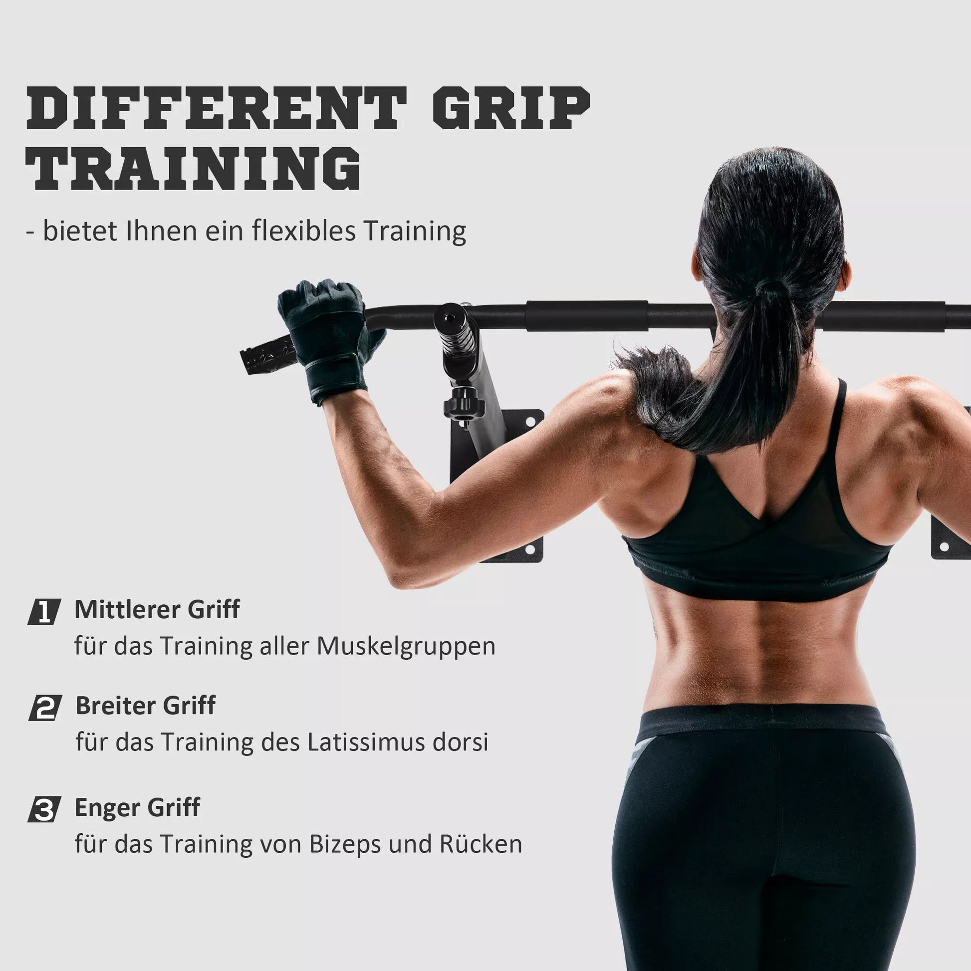 Sukinėjimosi strypas (Traukimo strypas) montuojamas prie sienos arba lubų, atlaiko iki 150 kg, daugiafunkcinis traukimo strypas su neslystančiomis rankenomis, saugus ir stabilus traukimo strypas sportui namuose, plieninis, juodas