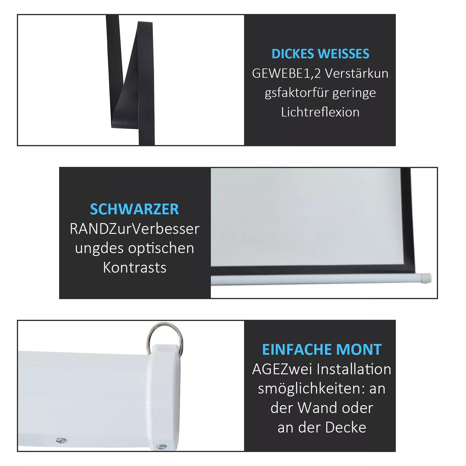 HOMCOM Projektoriaus ekranas, 100 colių, 4:3, 203x152 cm, baltas