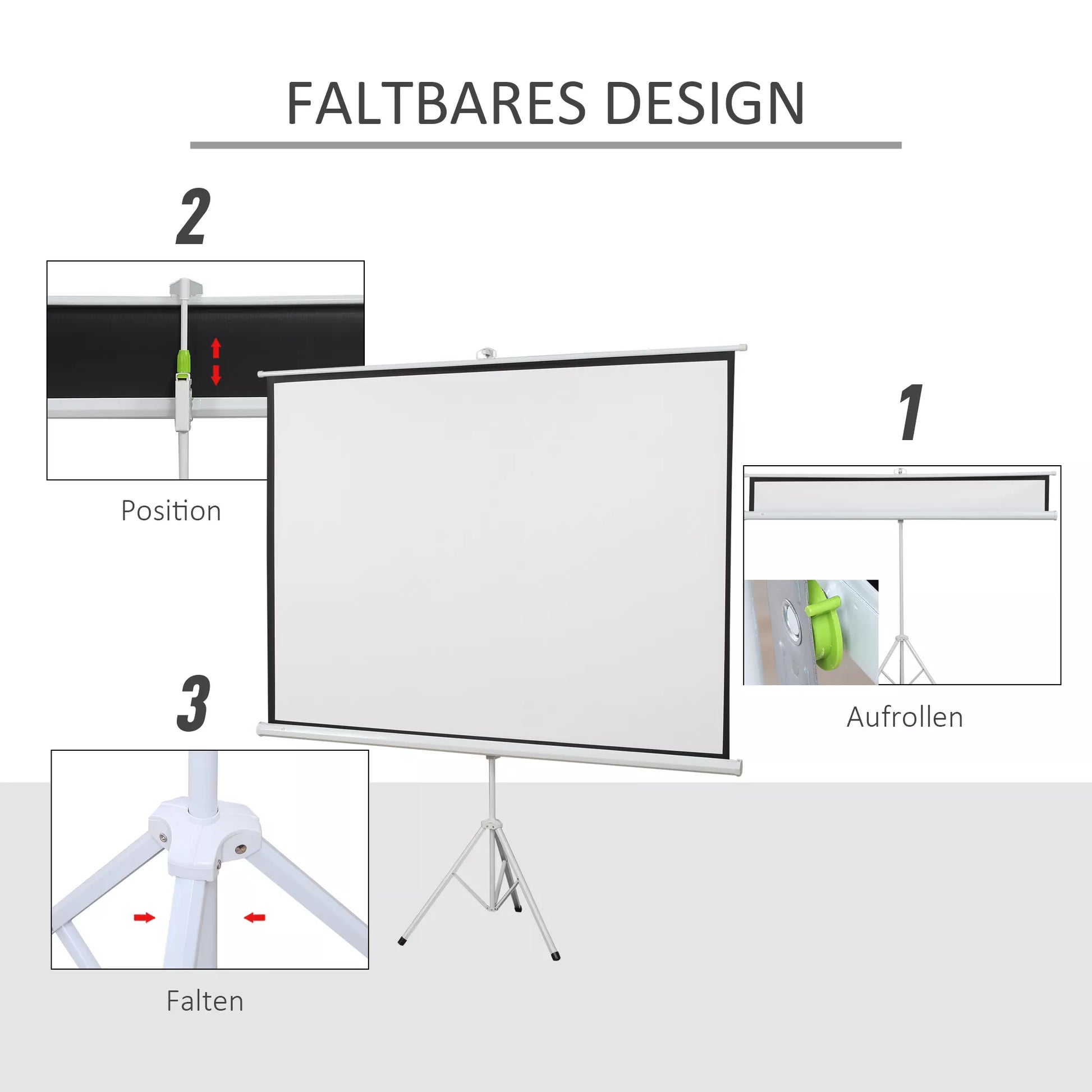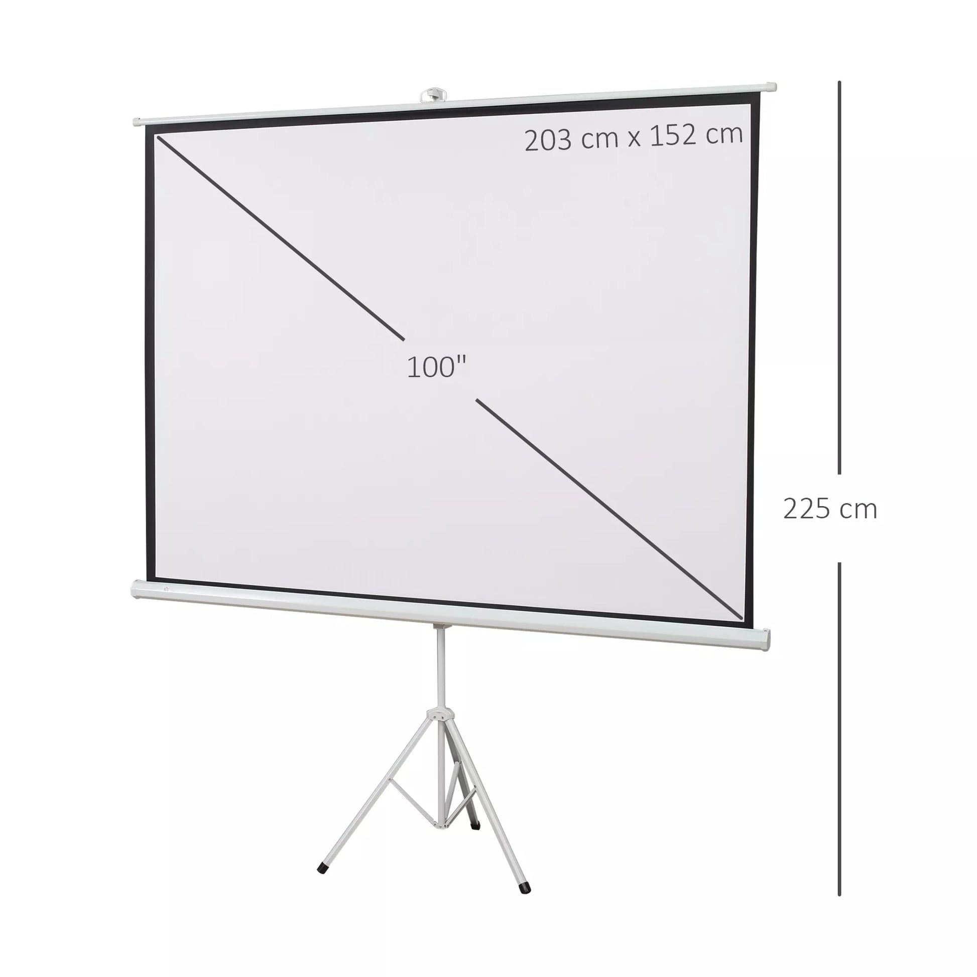 Projektorinė drobė 4:3 formatu, kino ekranas, pristatymų paviršius namams ar biurui, balta
