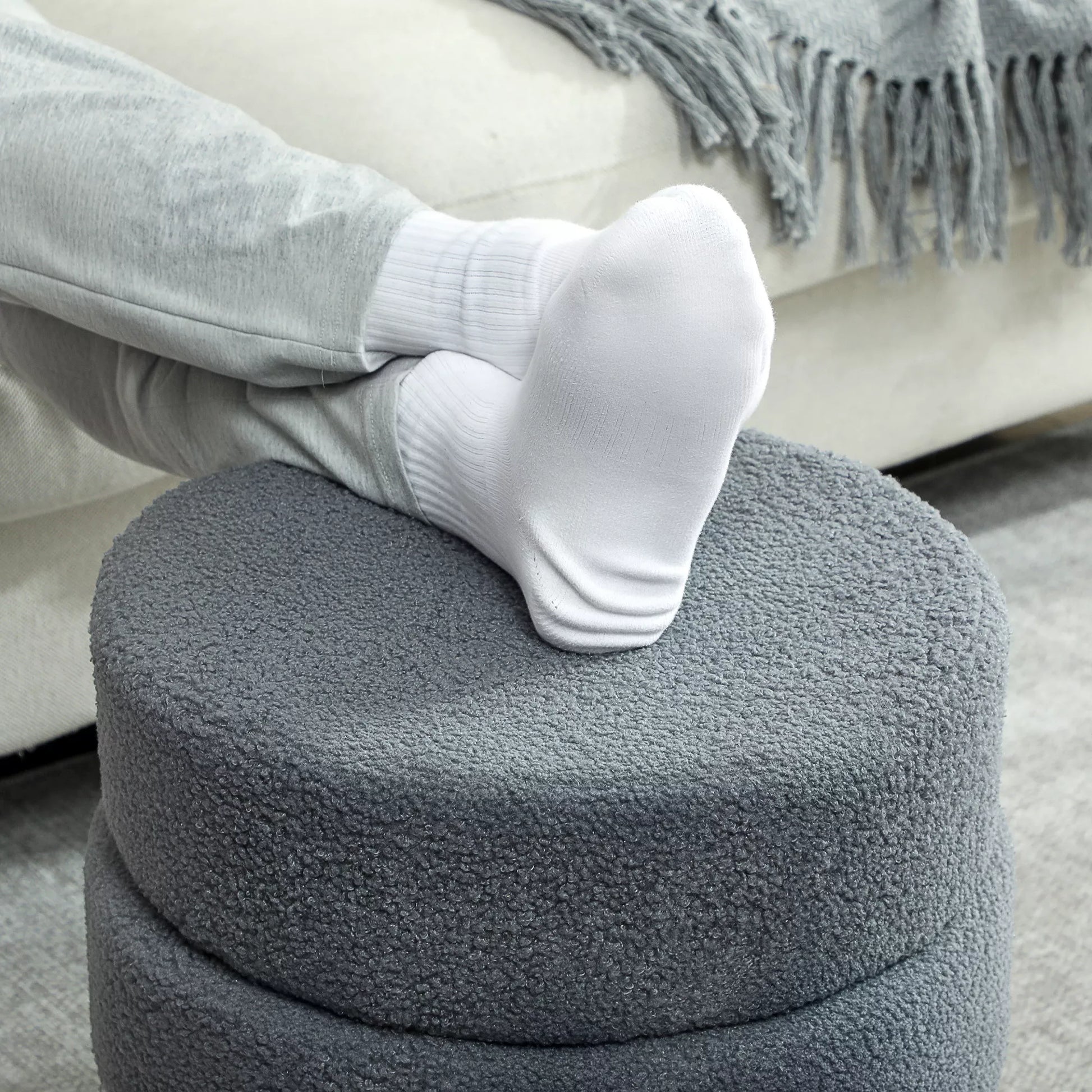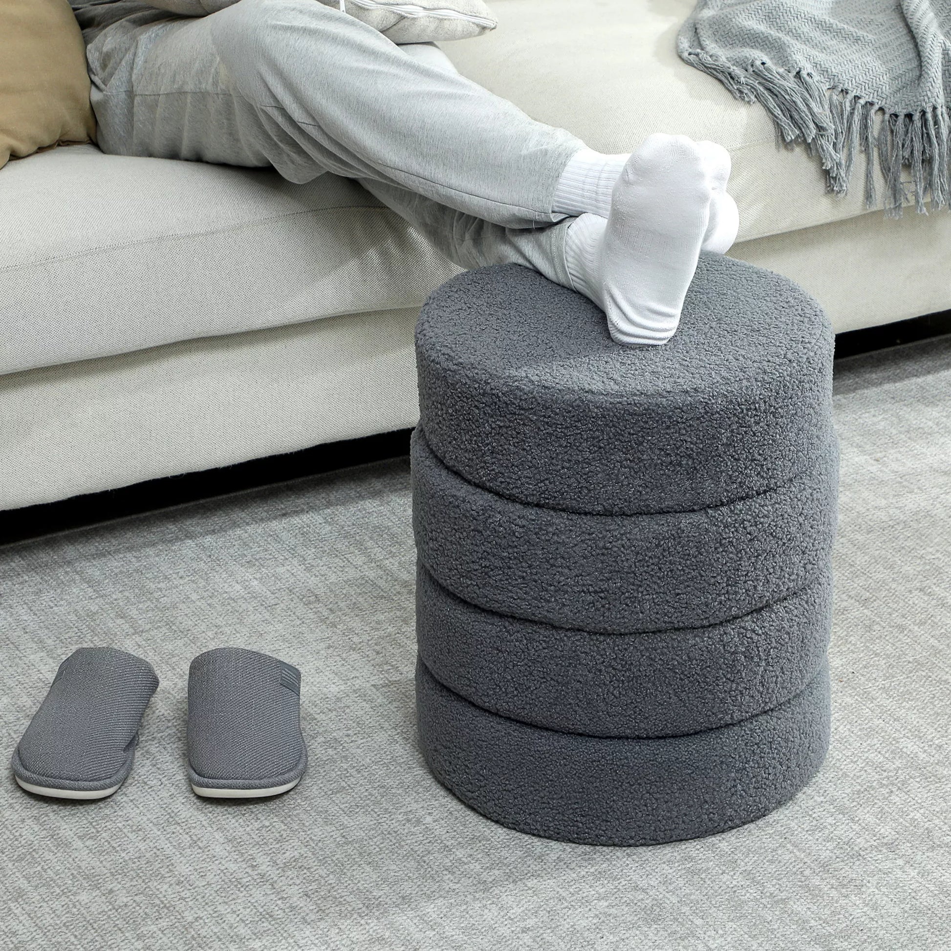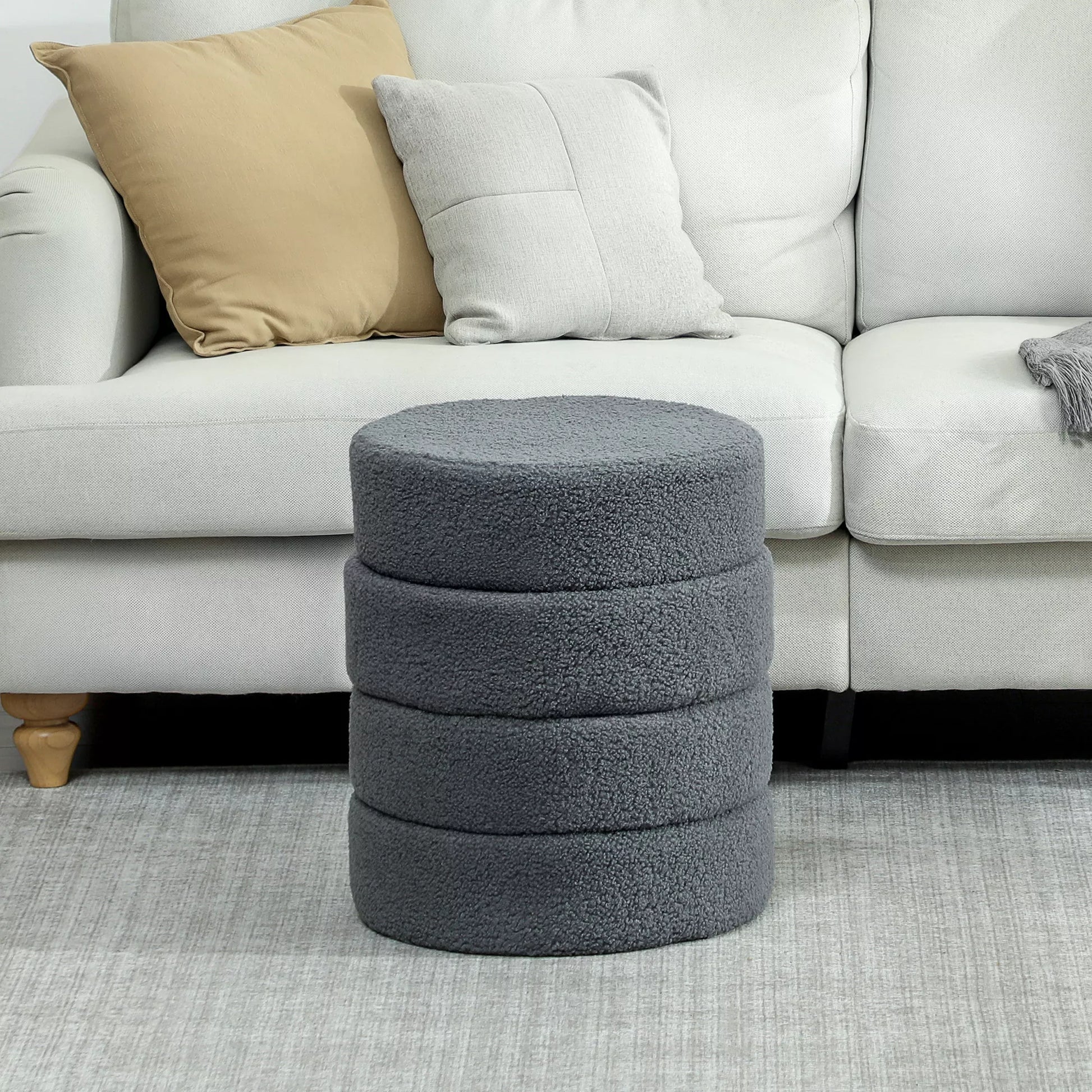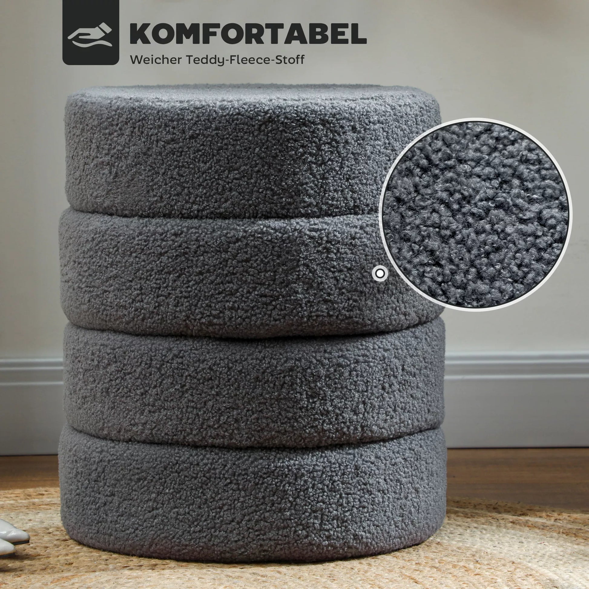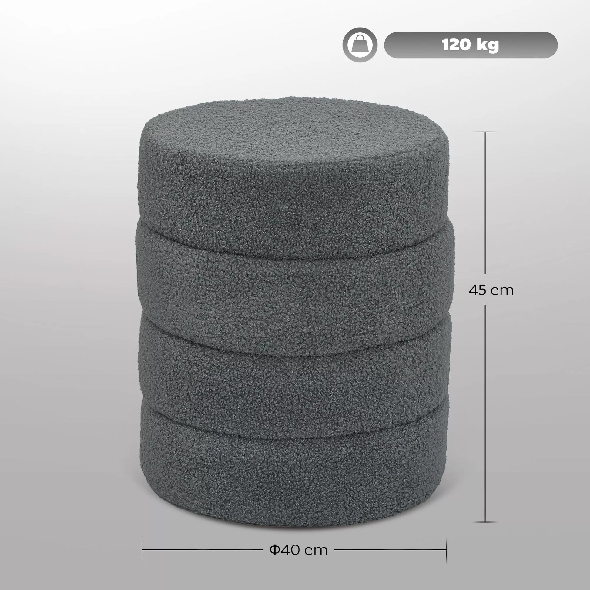Pufas, apvalus, Teddy vilnos, iki 120kg, Ø40x45A cm, Tamsiai pilkas