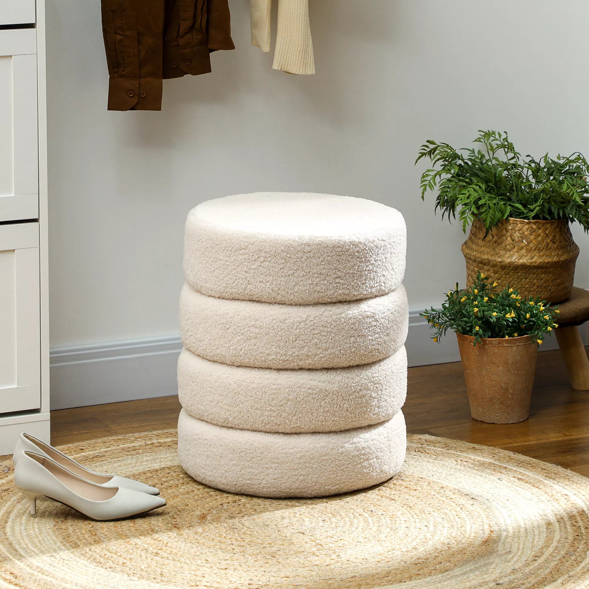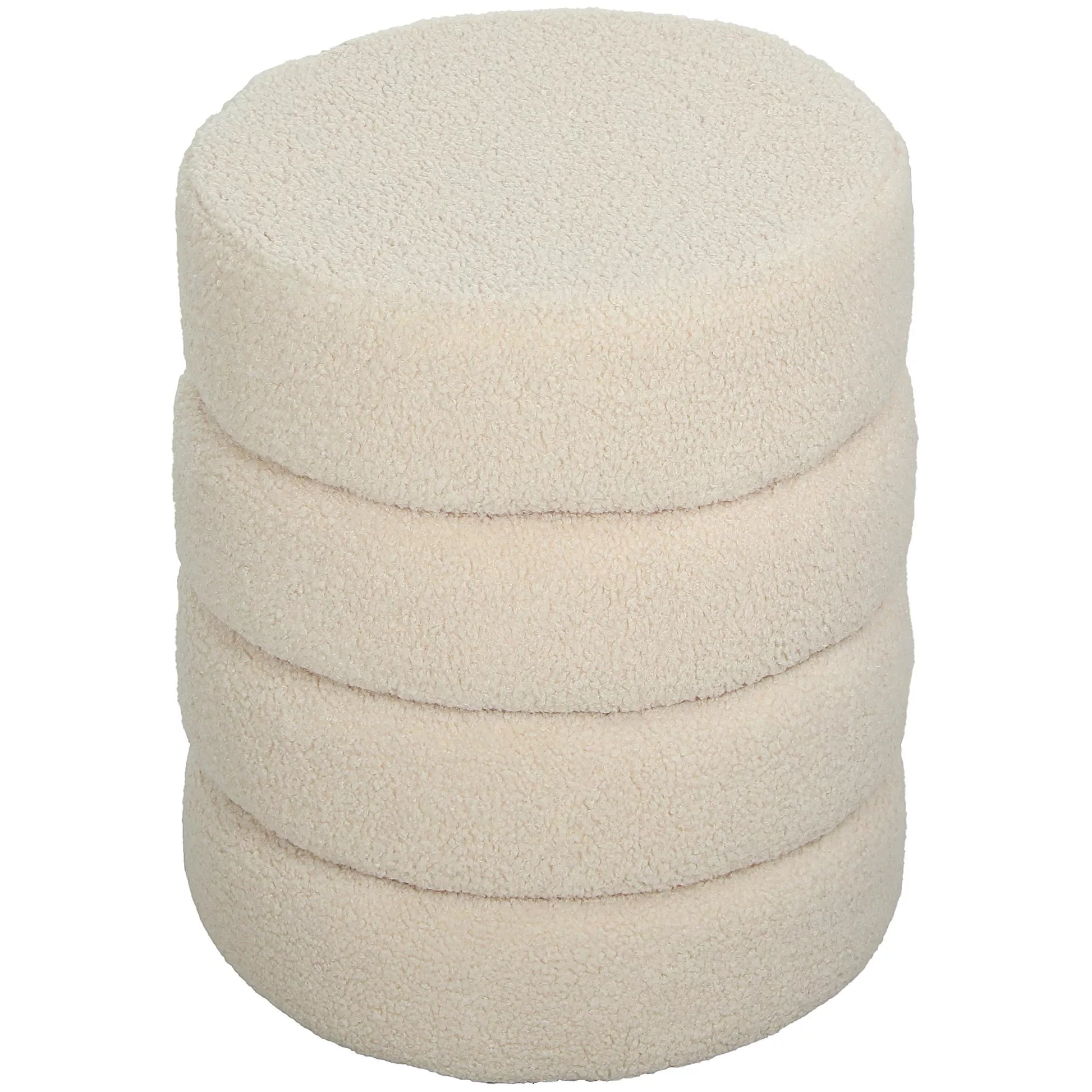 Apvalus pufas, Teddy vilna, iki 120kg, Ø40x45cm, smėlio spalvos