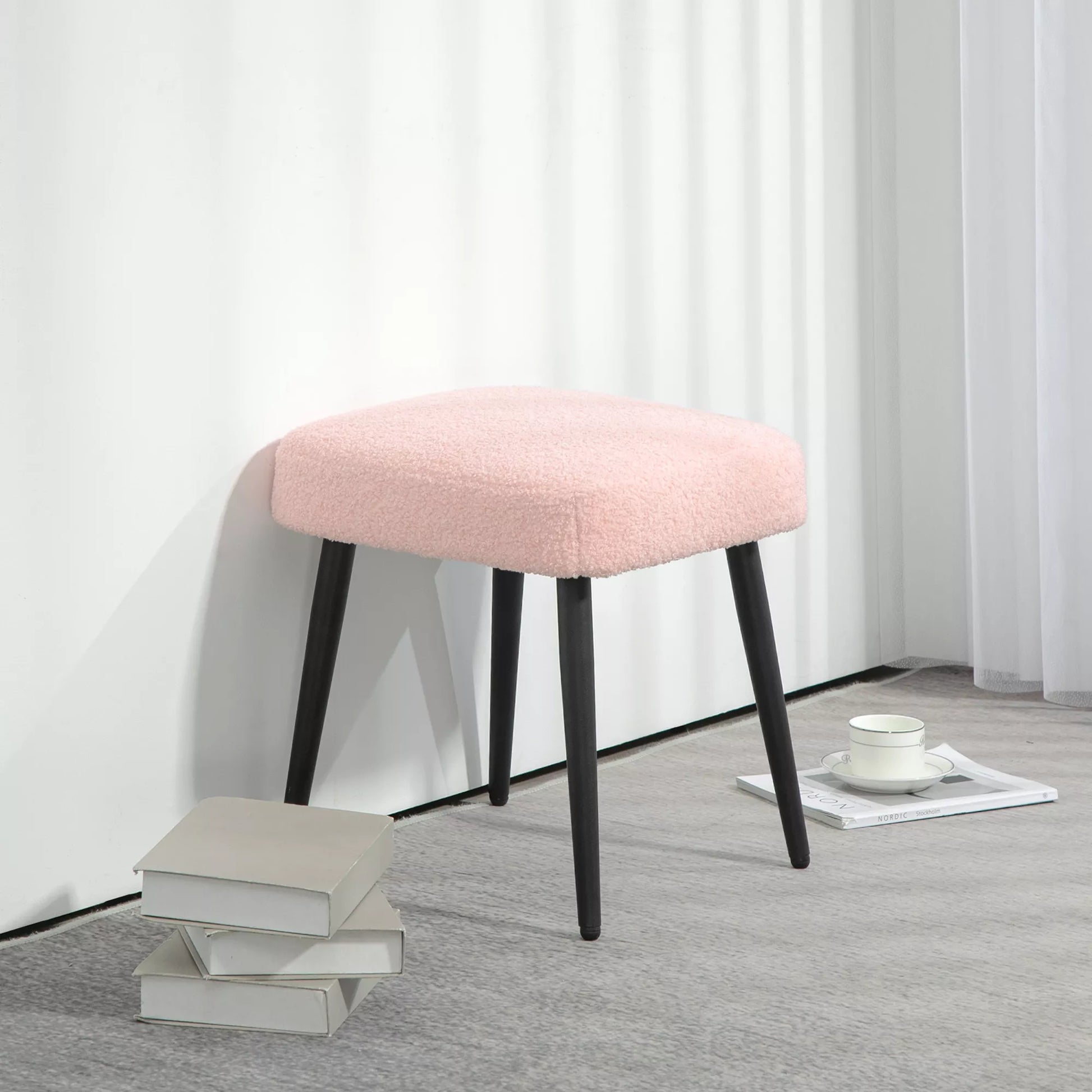 Pufas, atrama kojoms, paminkštinta sėdynė, kašmyro išvaizda, plieninės kojos, 42 x 42 x 44 cm, Rožinė