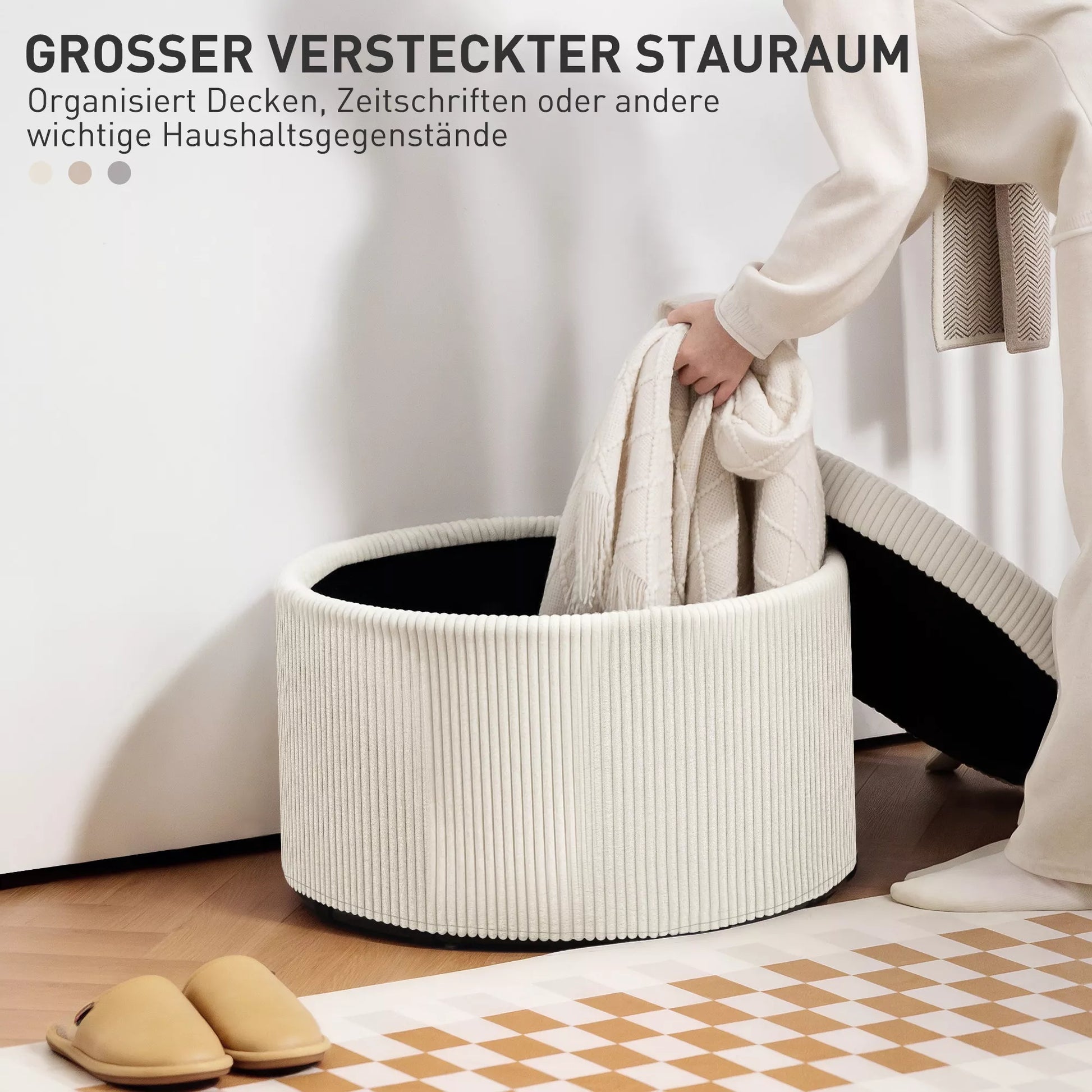 Patirkite unikalų apvalaus pufų su laikymo funkcija stilių, kuris derina dizainą su praktiniu naudojimu. Šis pufas žavi savo minkštu veliūro audiniu ir tankiu putplasčiu, tačiau taip pat siūlo 97 L talpos paslėptą saugyklą po dangčiu. Idealiai tinka kaip pakoja arba papildoma sėdynė, jis suteiks jaukumo bet kuriam kambariui.