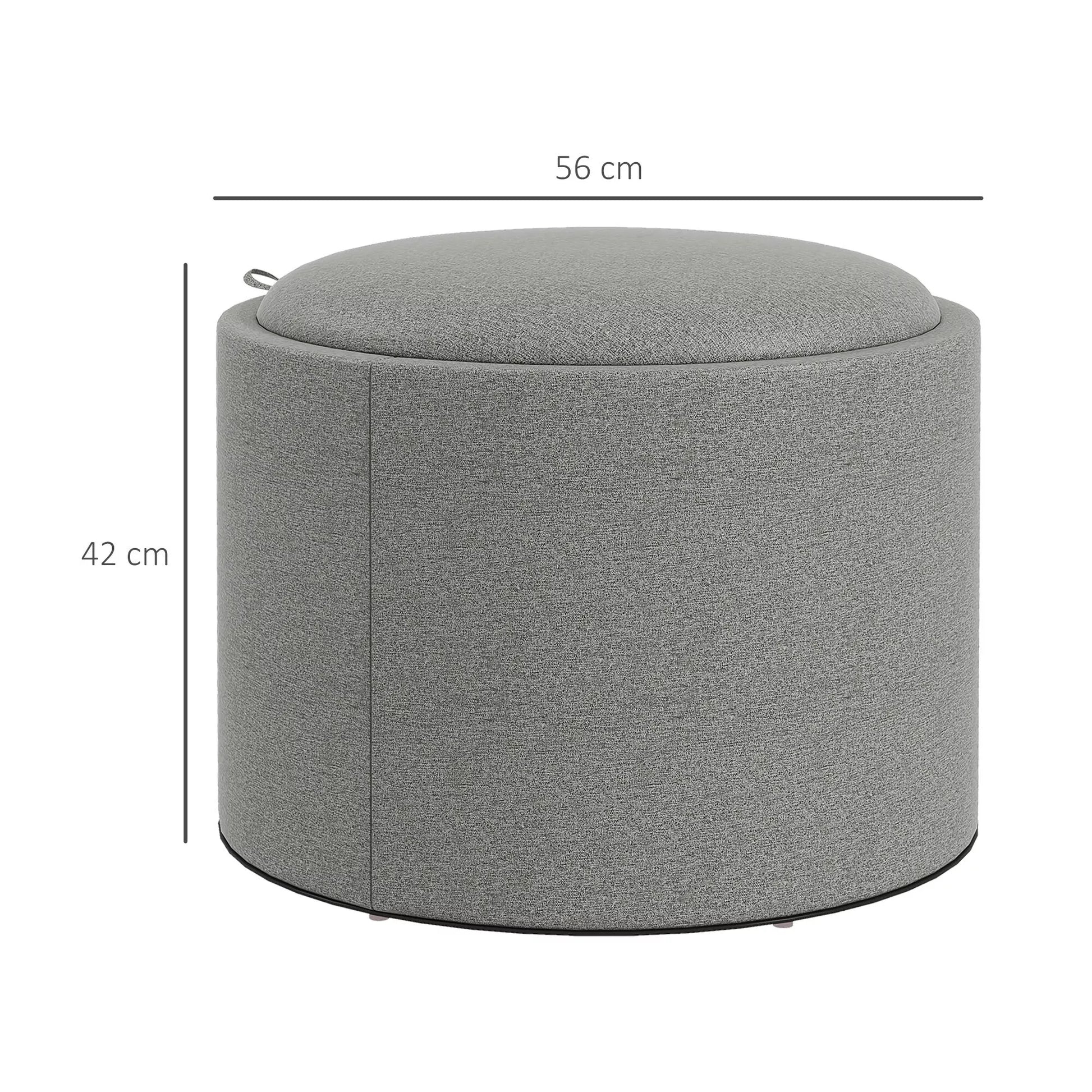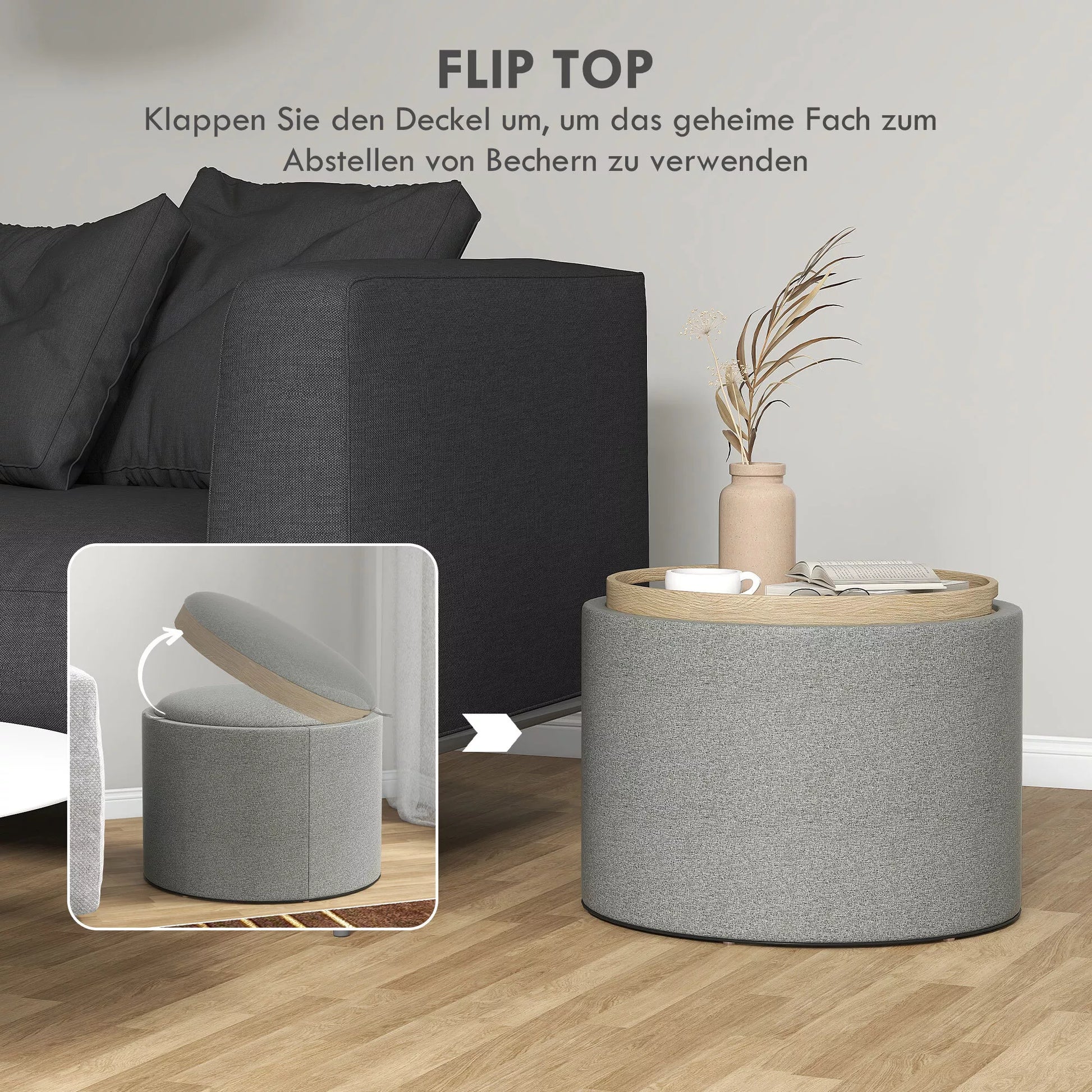 Pufas su laikymo funkcija, linas, paslėpta daiktadėžė, atidaromas dangtis, 56 cm x 56 cm x 42 cm, pilkas + natūralus
