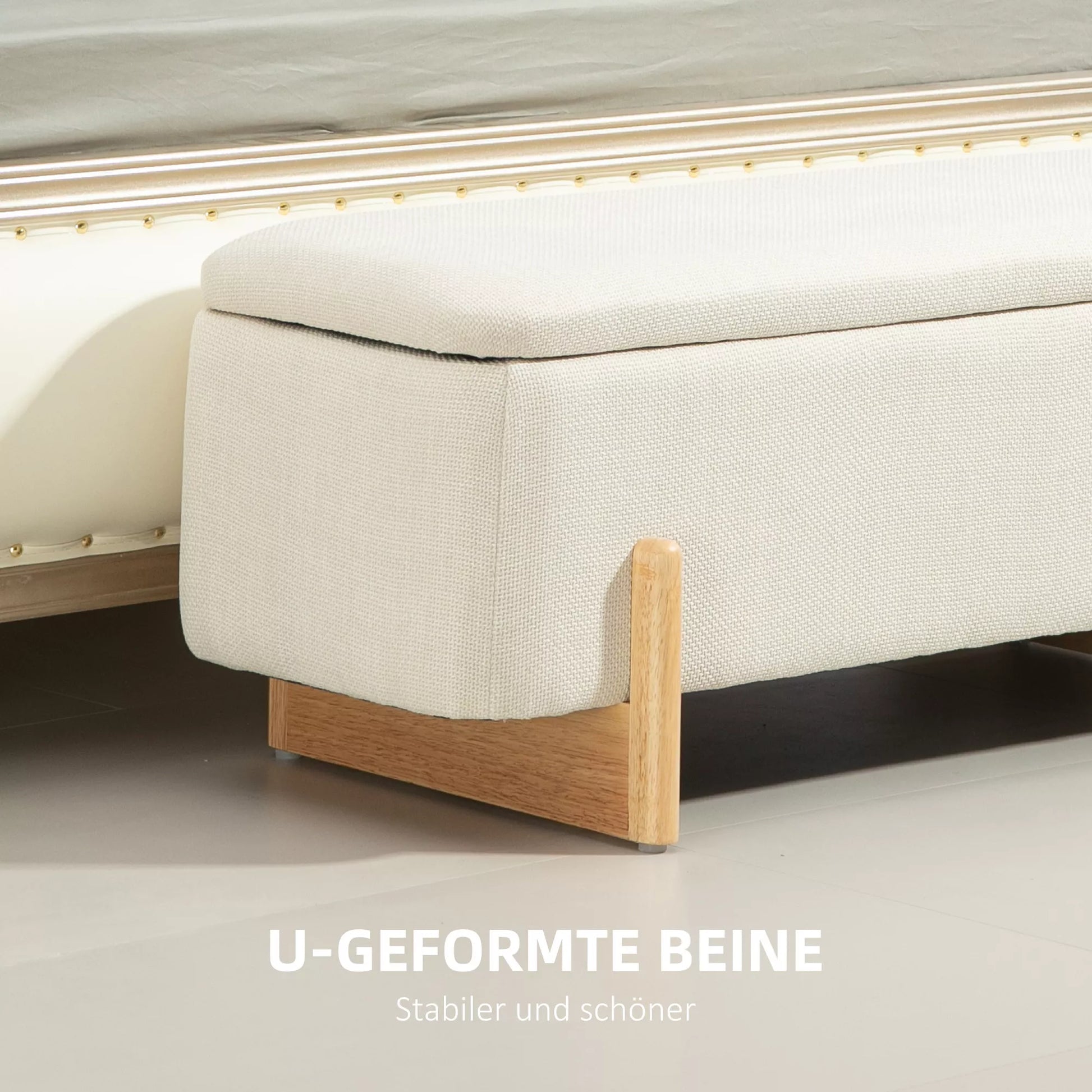 Pufas su laikymo vieta, suoliukas su putplasčio paminkštinimu, lininio audinio imitacija, 111 x 44 x 44,5 cm, kreminės baltos spalvos