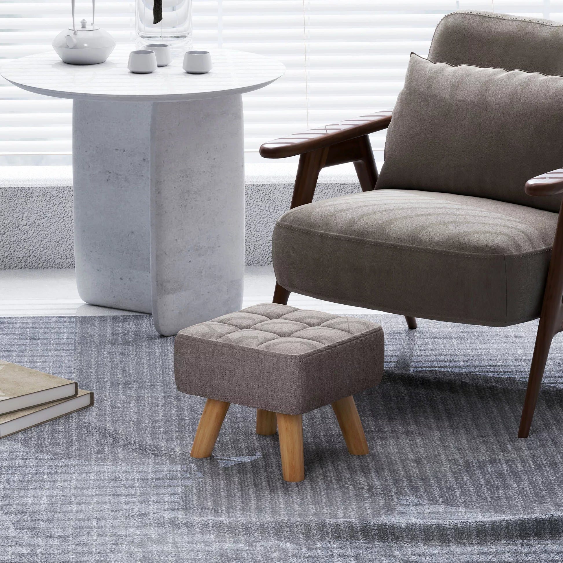HOMCOM Pufas su paminkštinimu, linine išvaizda, medinės kojelės, atlaiko iki 110 kg, pilkas