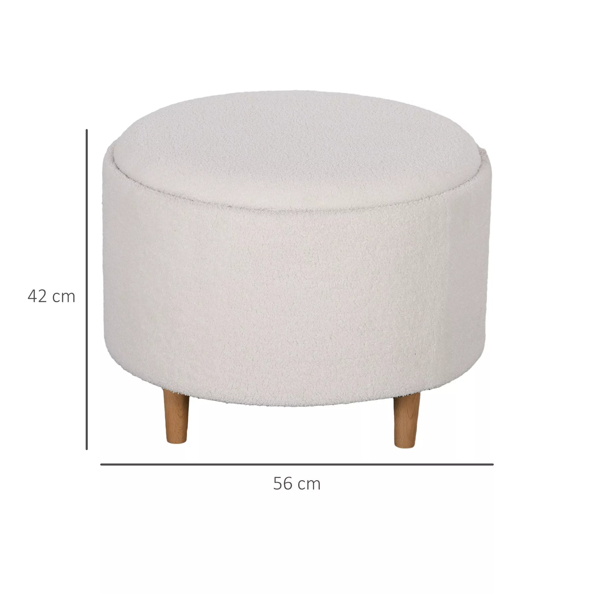 Pufas, Teddy vilnos audinys, paslėpta daiktadėžė, atverčiamas dangtis, 56 cm x 56 cm x 42 cm, baltas