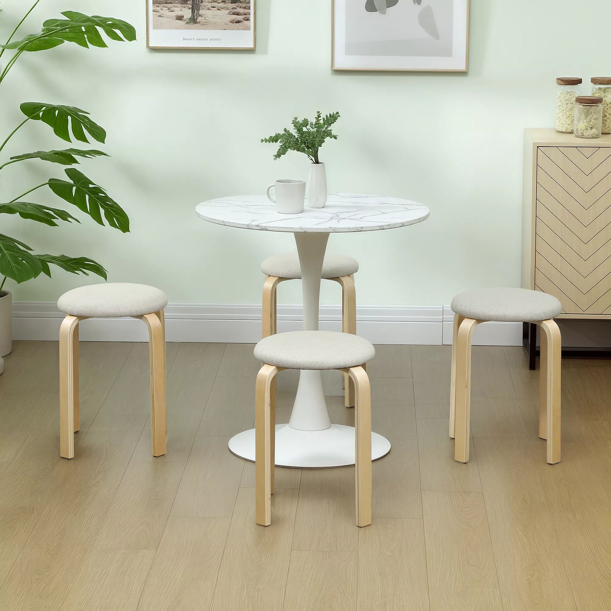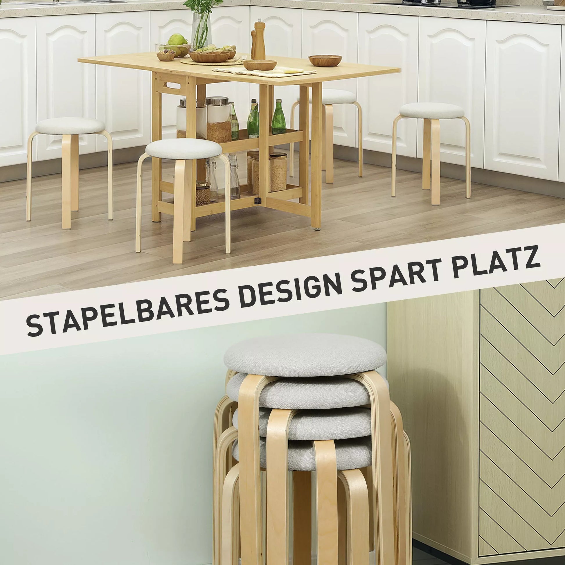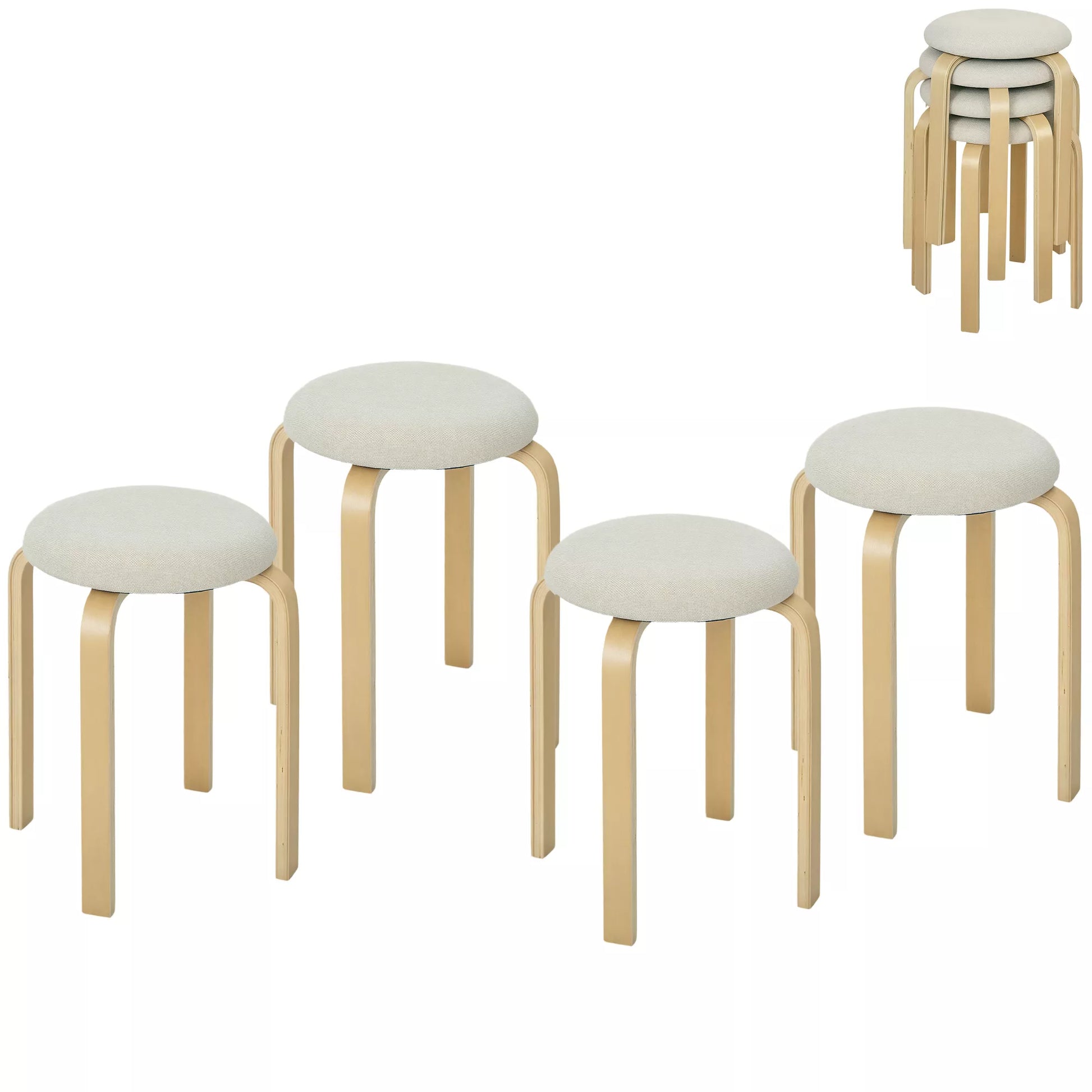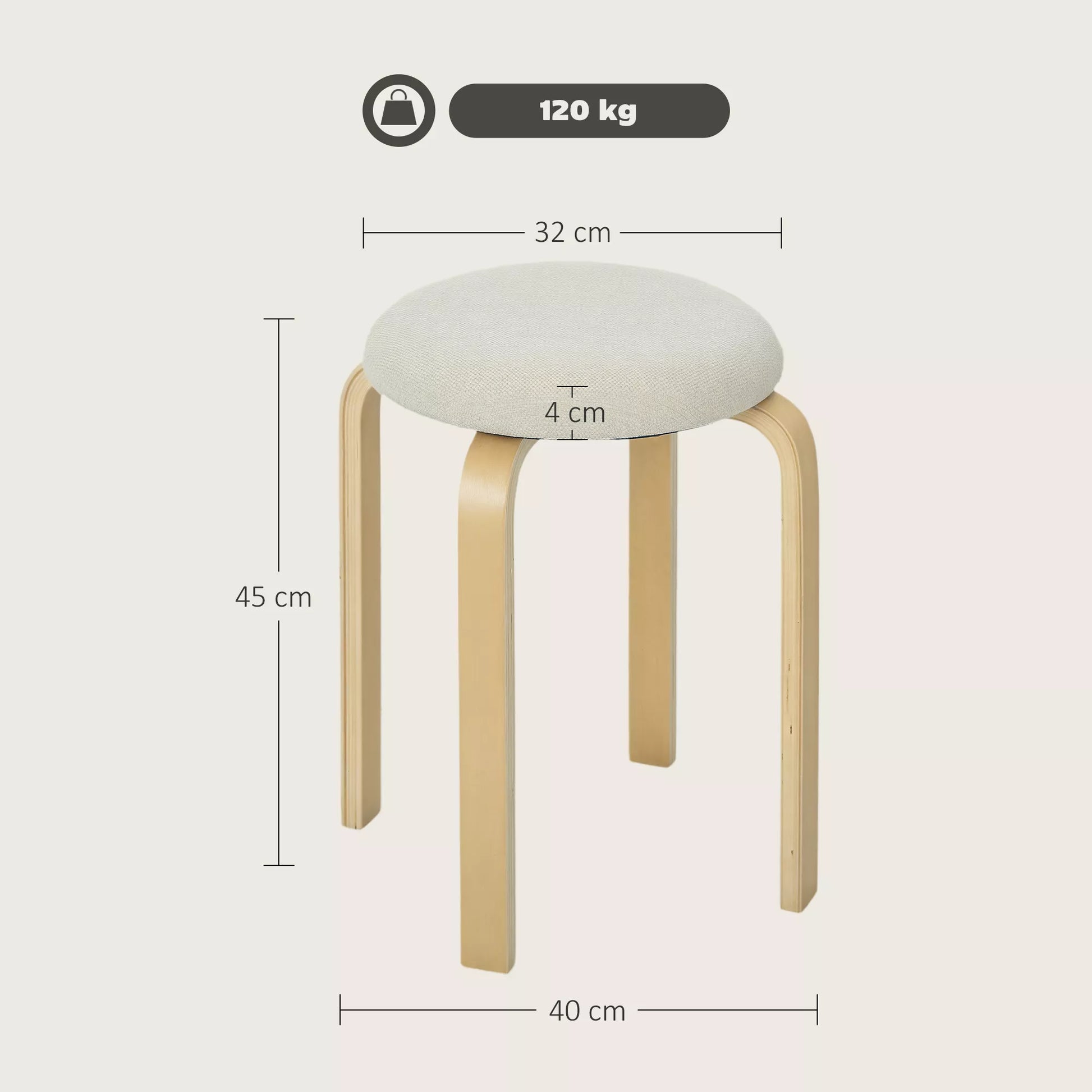 Pufų komplektas iš 4 vnt., sukraunamas, lakuotas paviršius, medinės kojelės, kreminės baltos