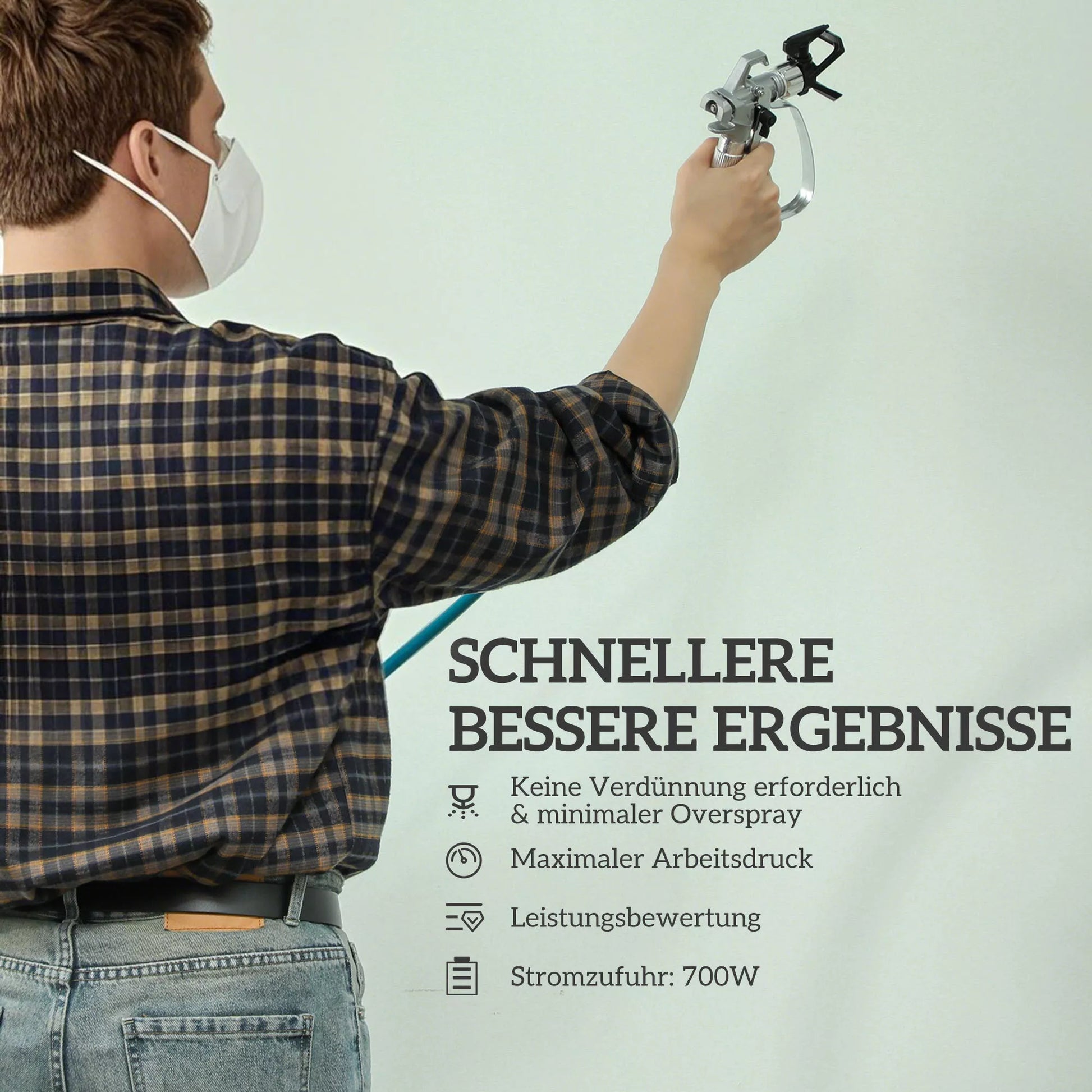 - ✔ Reguliuojamas sienų dažų purškimo įrenginio slėgis prisitaiko prie skirtingų dažų tipų