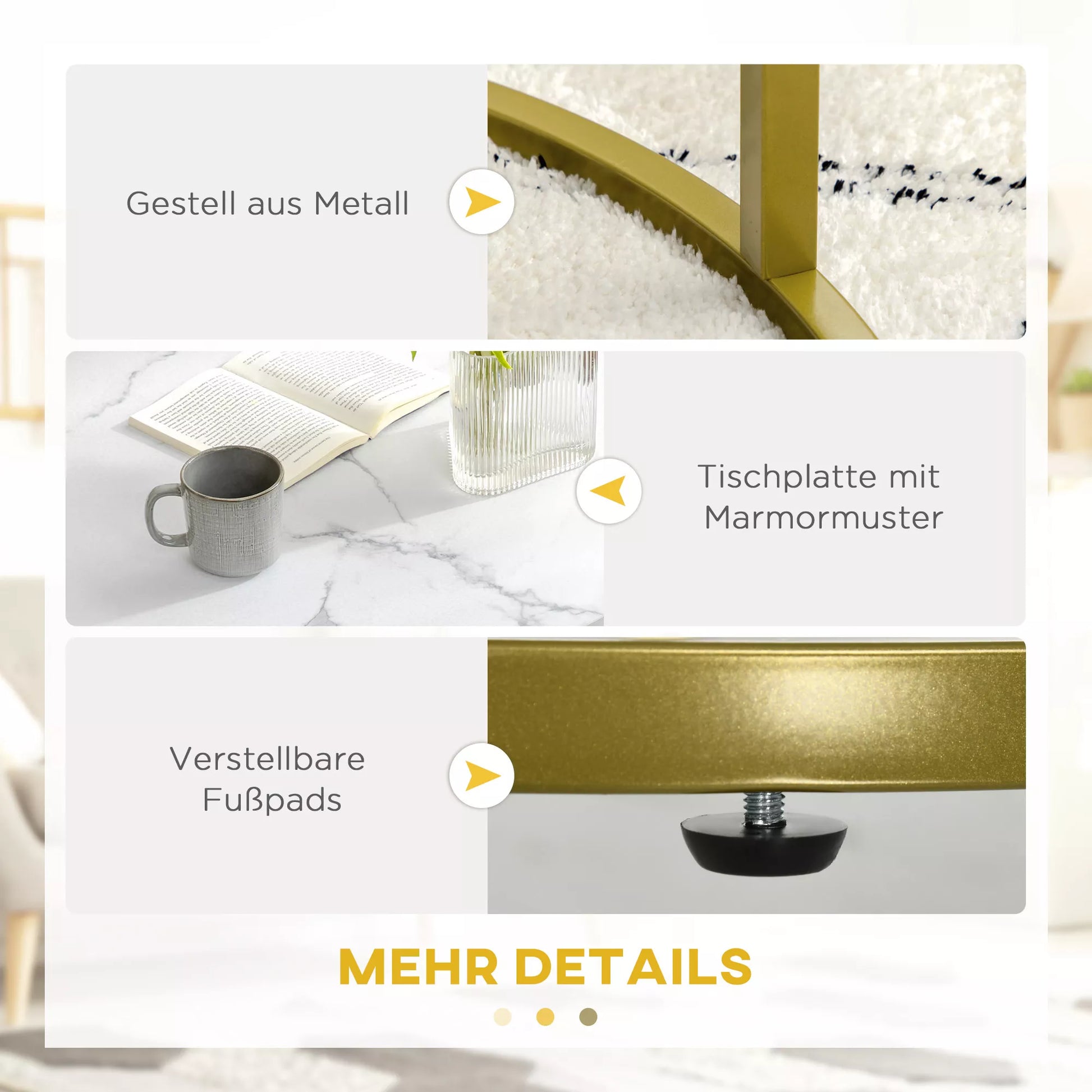 Šoninių staliukų komplektas, 2 staliukai, Ø74 ir Ø59 cm, marmuro imitacija, auksinės spalvos rėmas