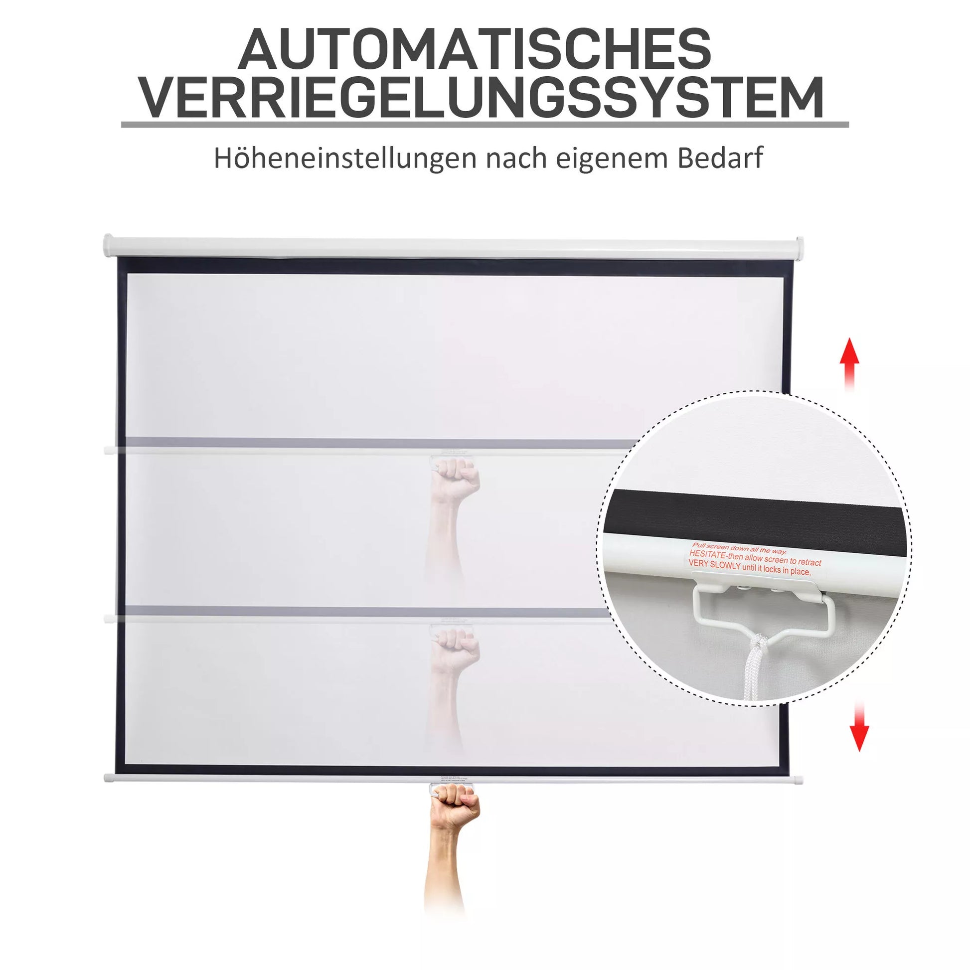 - ✔ Nuleidžiamas projektoriaus ekranas yra reguliuojamo aukščio su automatine fiksavimo sistema, atitinkančia jūsų specifinius poreikius