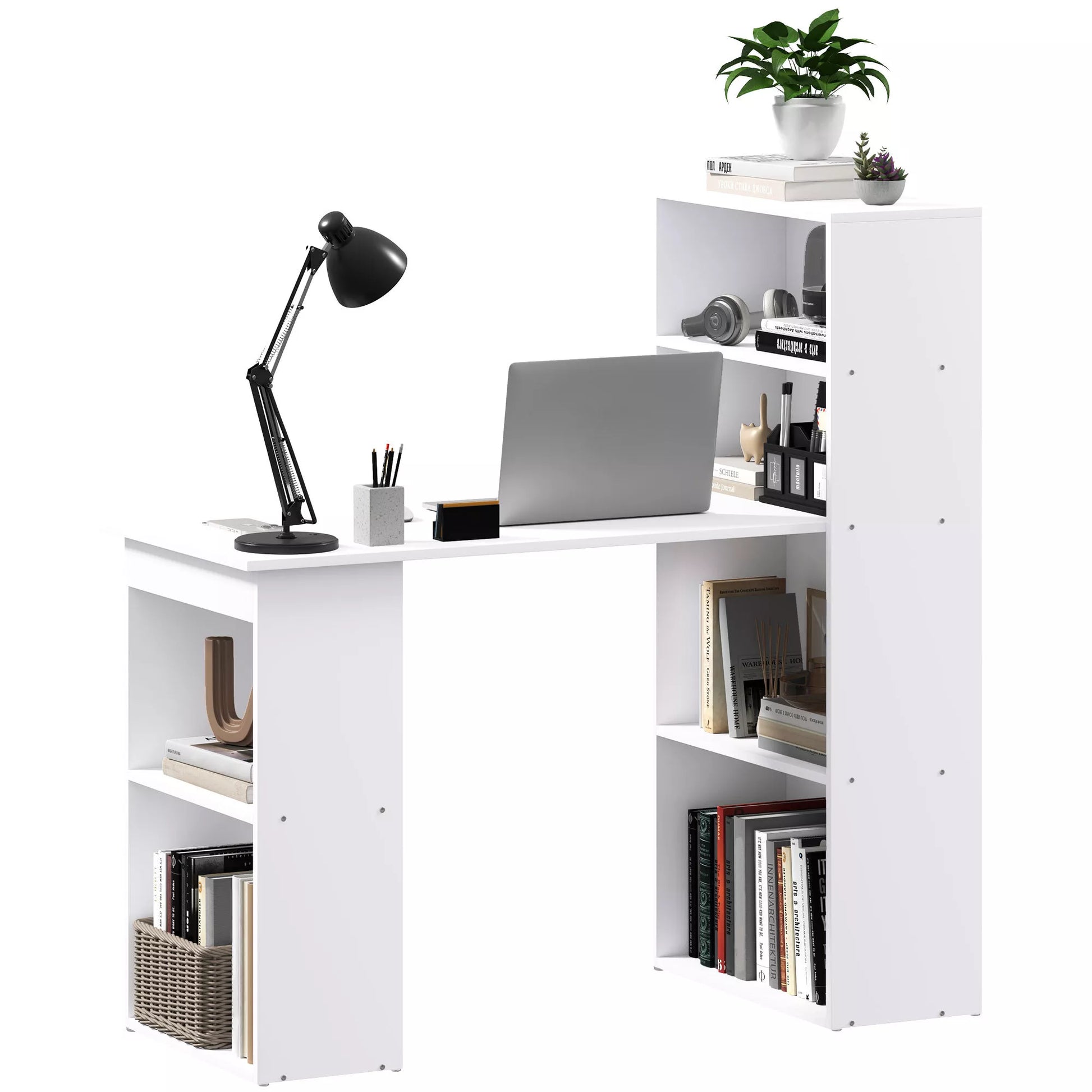 HOMCOM Rašomasis stalas, biuro stalas, kompiuterio stalas, su 2 lentynomis, 5 lentynos, 120 cm x 55 cm x 120 cm, baltas
