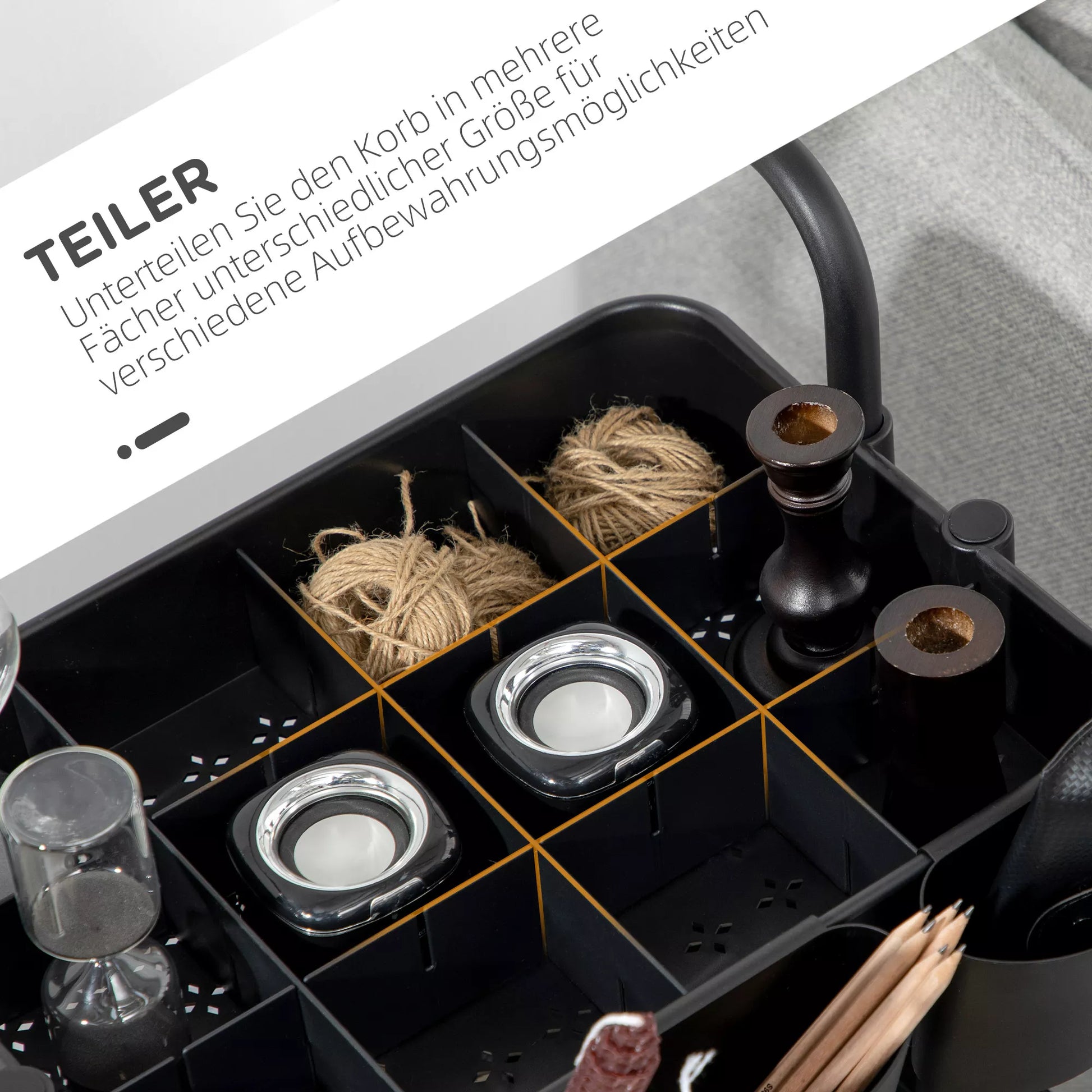 - ✔ Su 5 pertvaromis galite vieną krepšį suskirstyti į kelis skirtingų dydžių skyrelius įvairiems laikymo poreikiams
