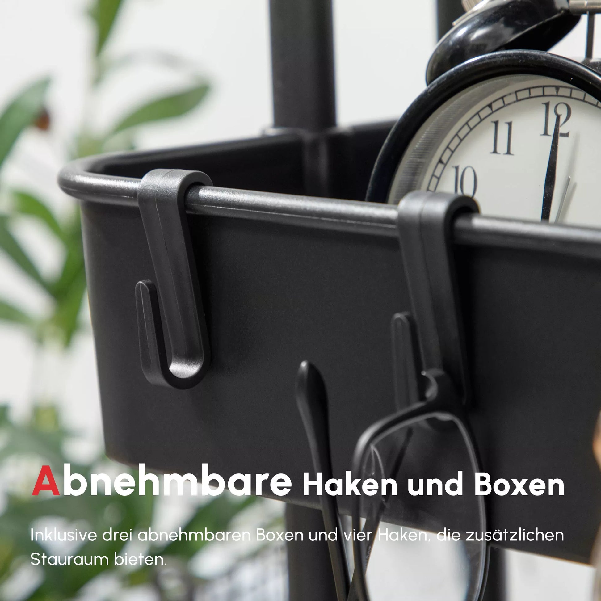 - ✔ 3 nuimamos pakabinamos dėžutės ir 4 nuimami kabliukai gali būti pakabinti ant bet kurio lygio, pagal poreikį