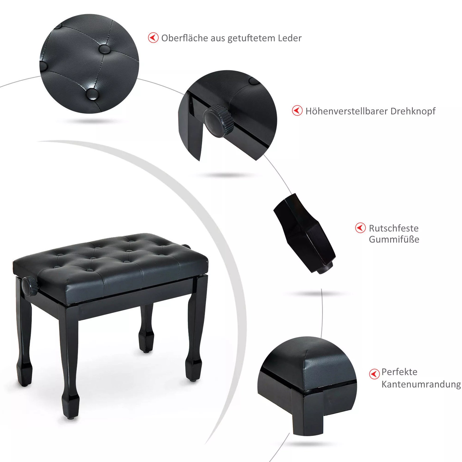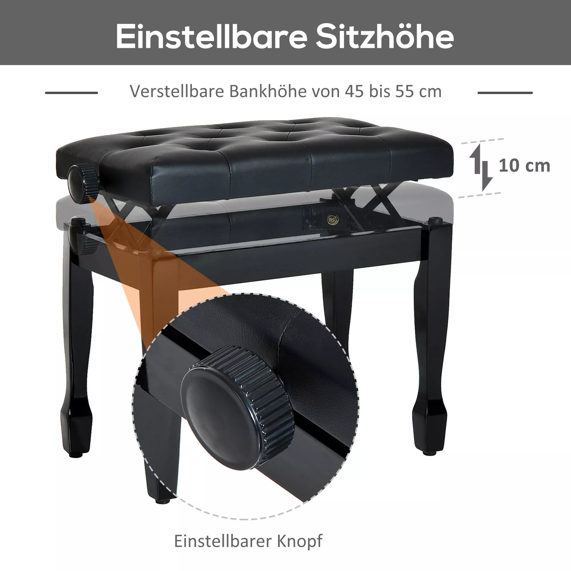 Aukščio reguliavimo pianino suolas, fortepijono suolas su dirbtinės odos pagalvėle, klaviatūros suolas pianinui, klaviatūrai 64 x 35 x 45-55 cm Juodas