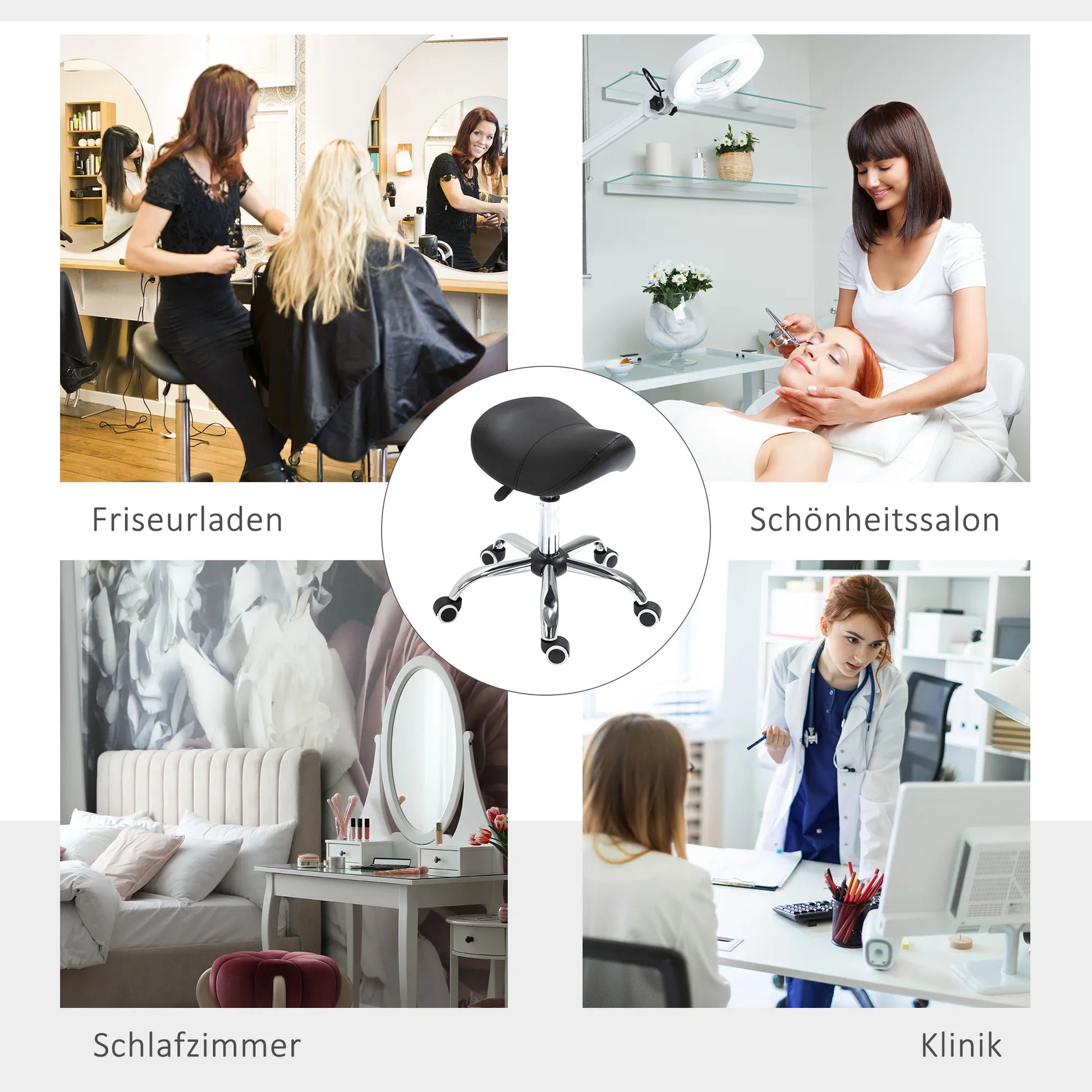 Reguliuojamo aukščio ratinė darbo kėdutė ant ratukų 49-61 cm, pasukama balninė kėdutė biurui, salonui, masažui, SPA, juoda