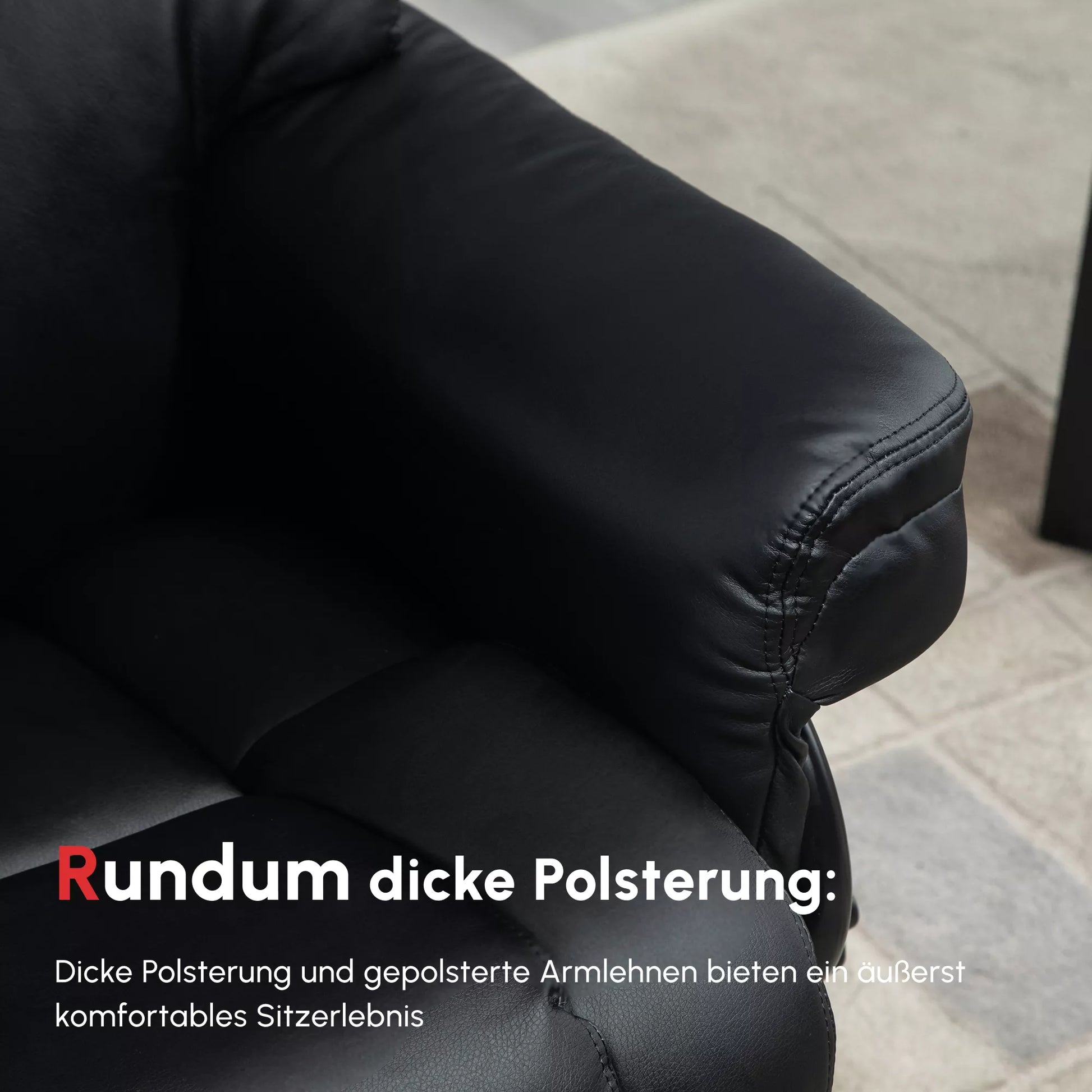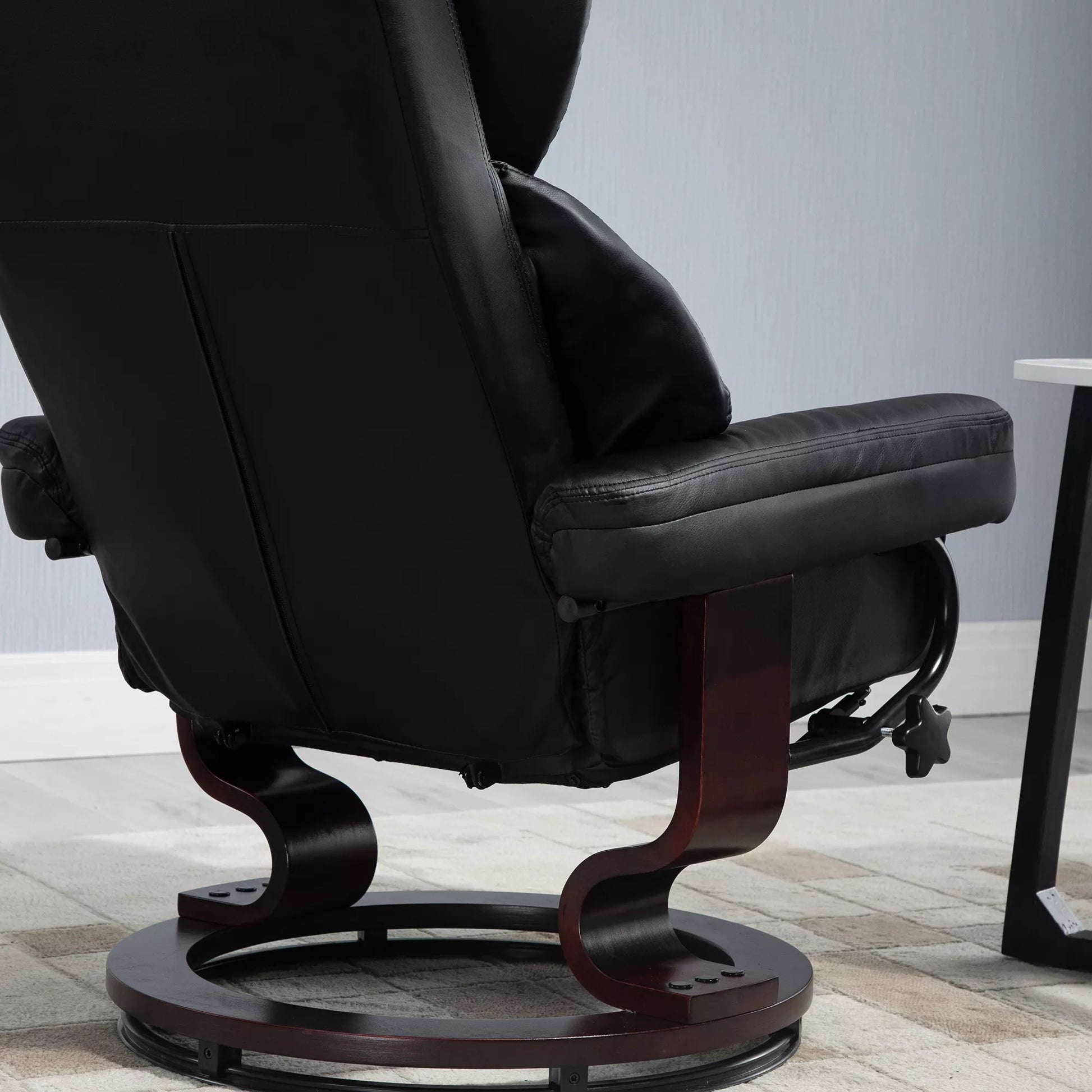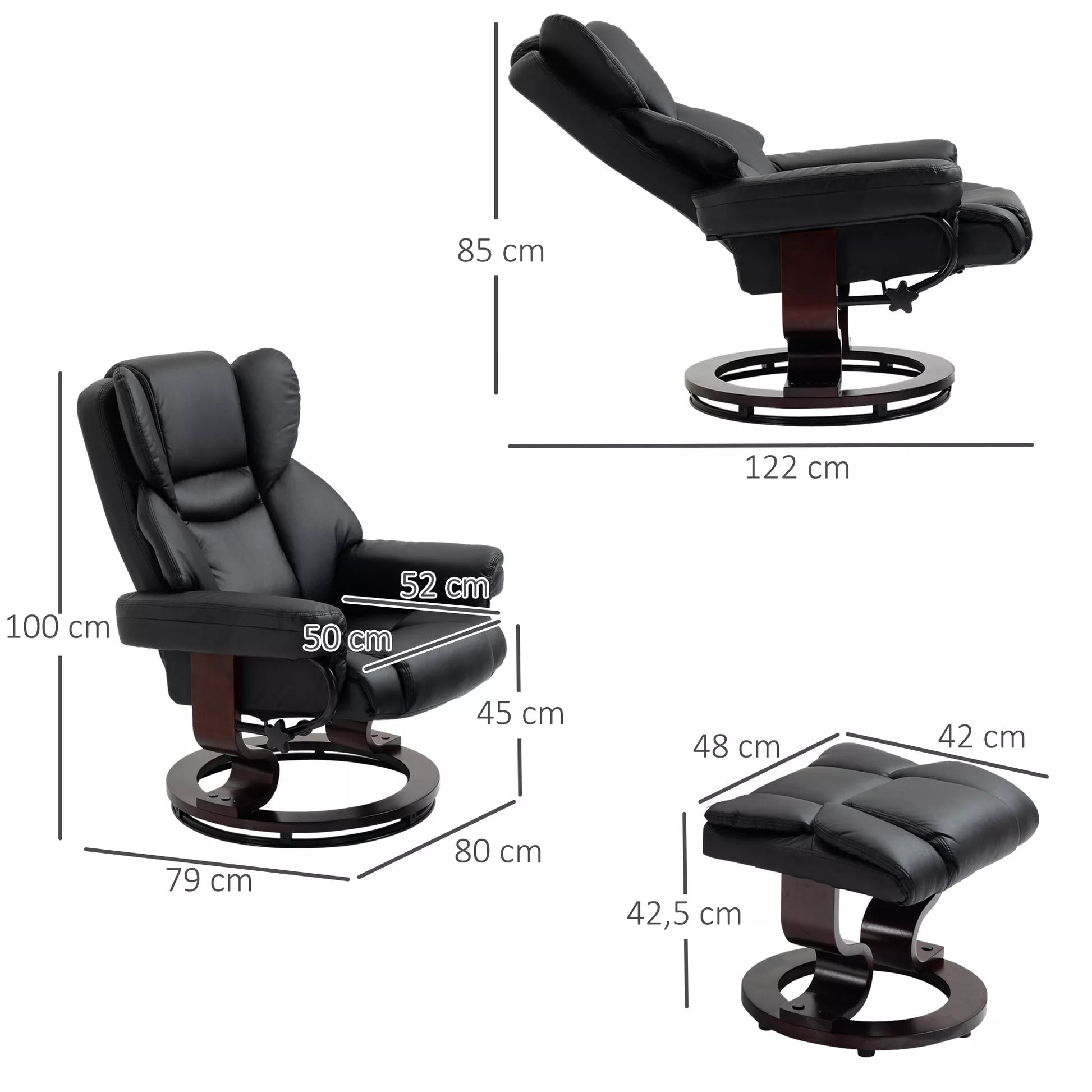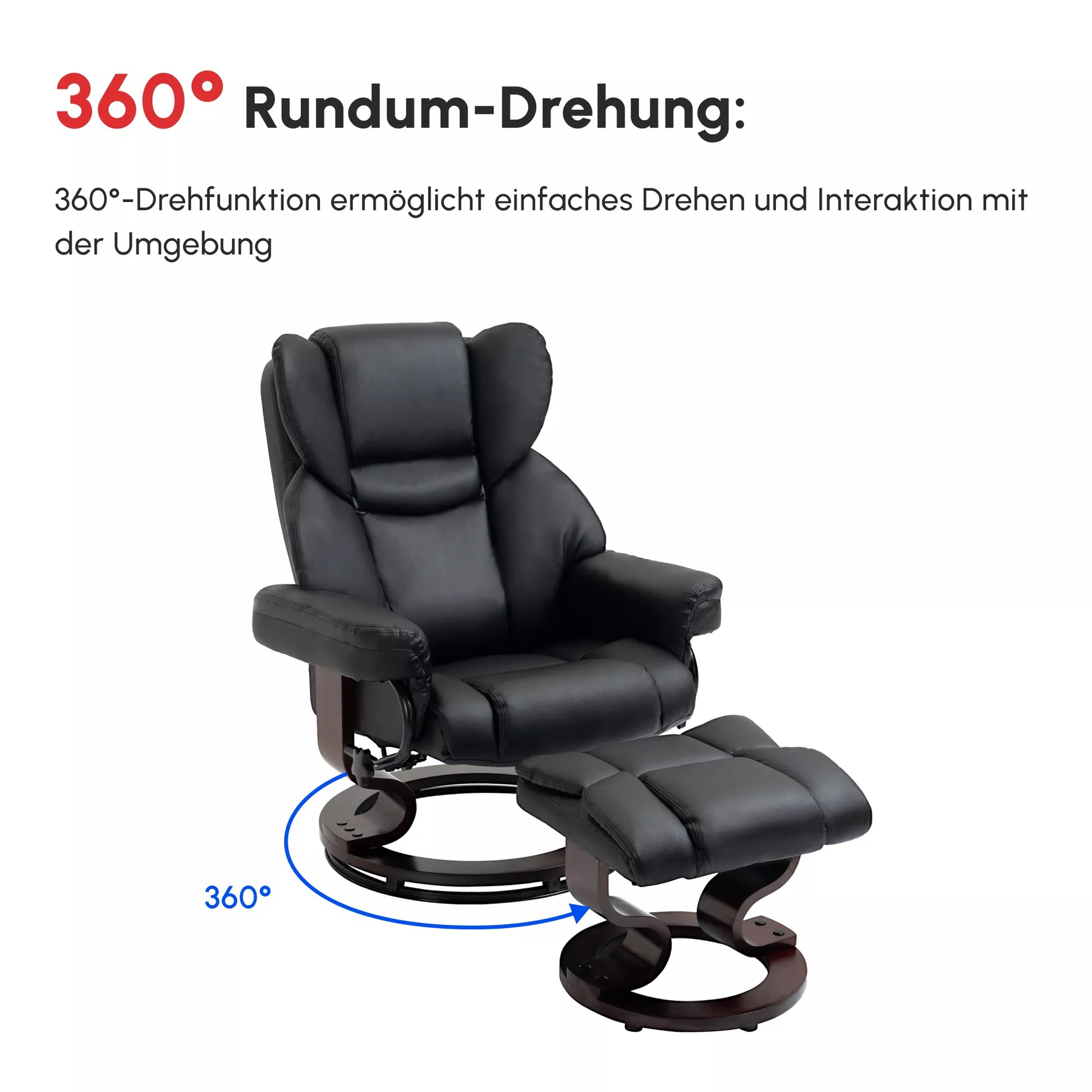Poilsio fotelis su pakoja, atlošimo funkcija, sukamas, iki 160 kg, dirbtinė oda, metalo rėmas, juodas, 80 x 79 x 100 cm