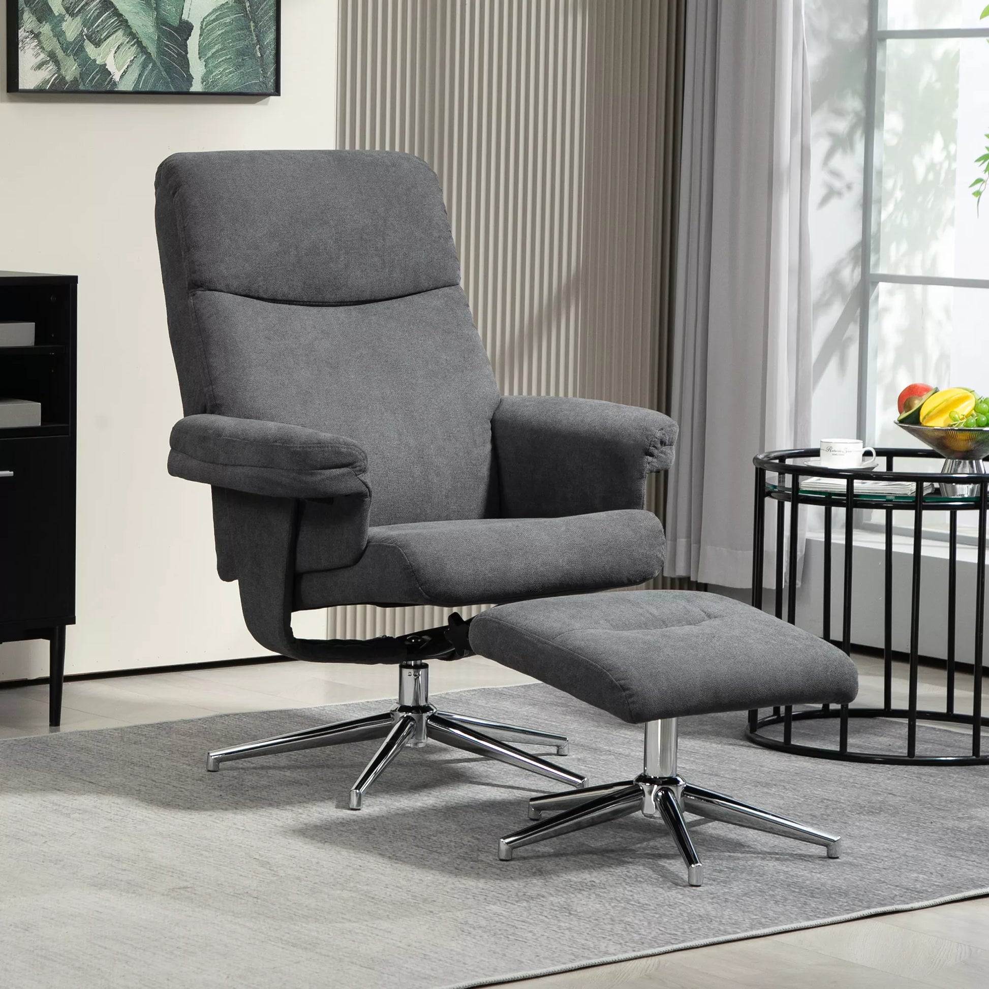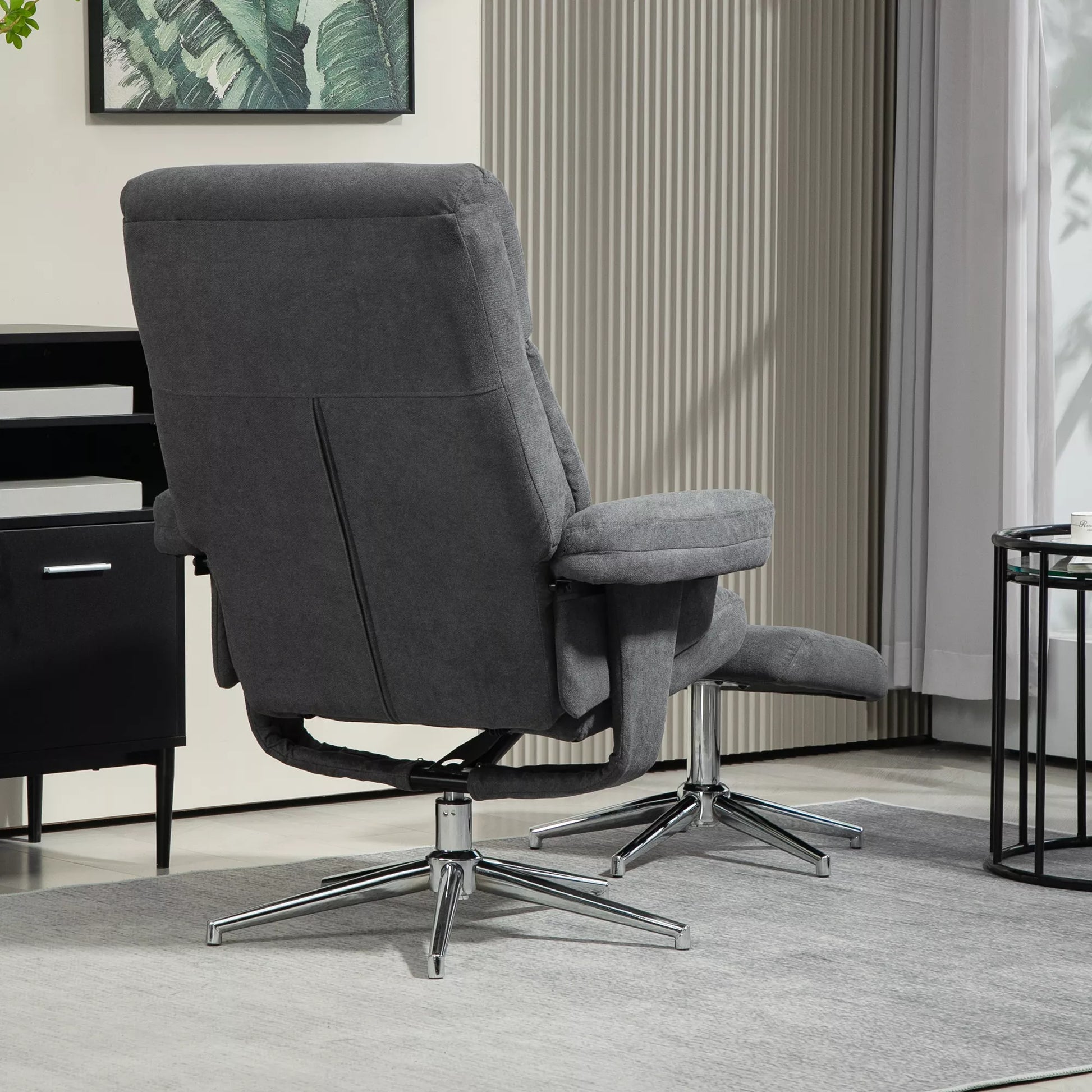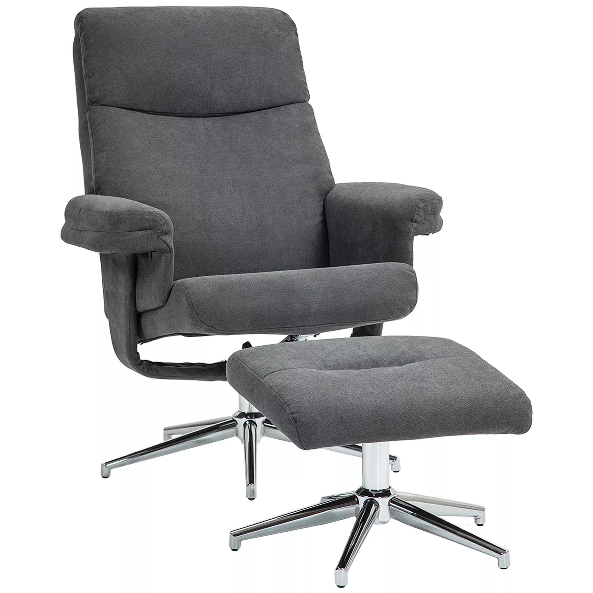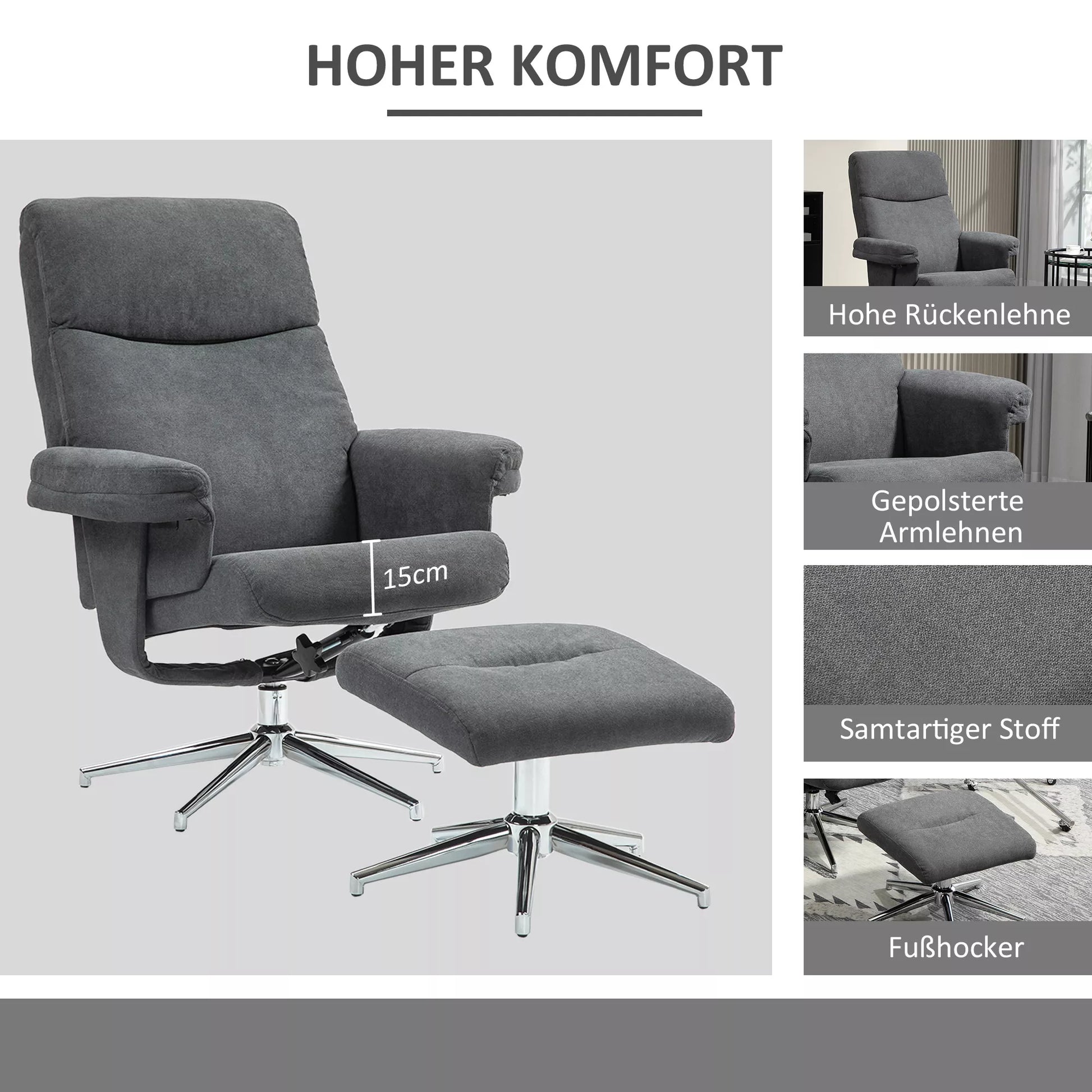 Poilsio krėslas su pakoja, reguliuojama nugaros atrama, velveto išvaizda, iki 150 kg, tamsiai pilkos spalvos