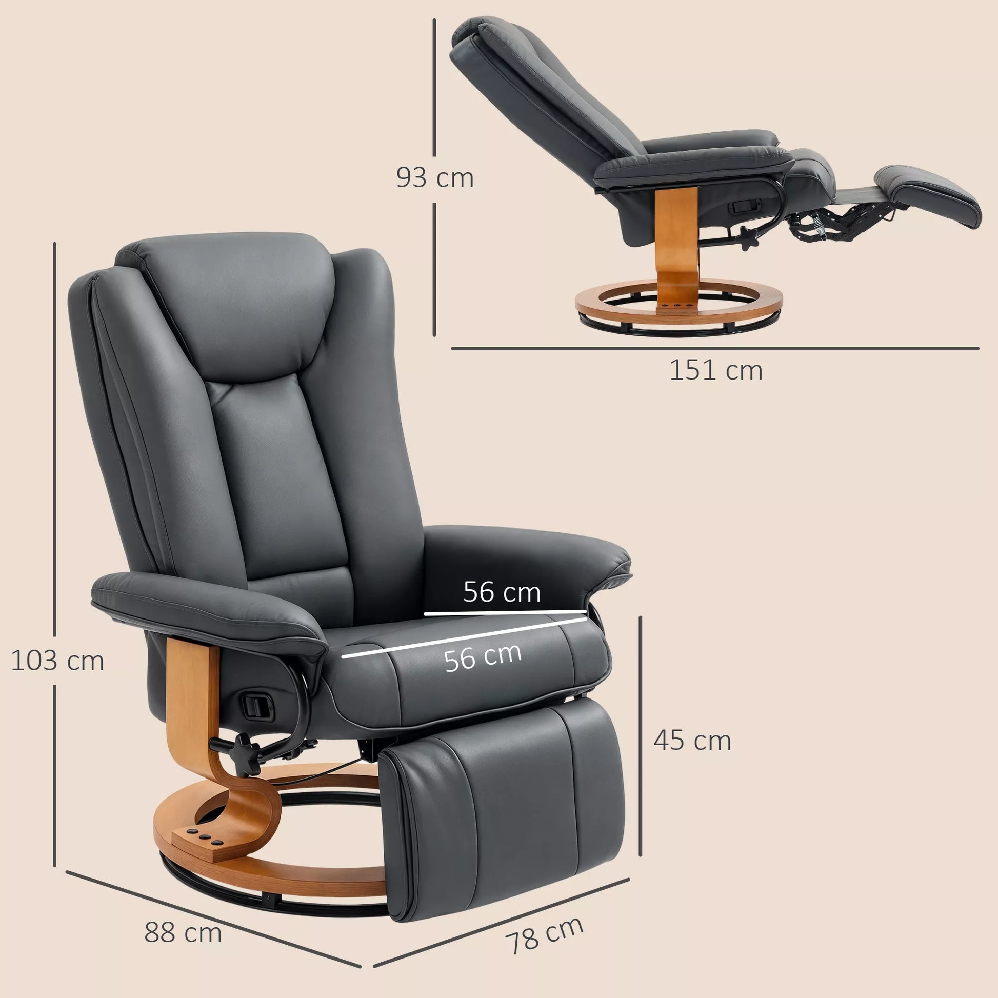 Sūkurinis poilsio fotelis su atlošimo funkcija, iki 150 kg, dirbtinės odos apmušalas, plieninis rėmas, tamsiai pilkas