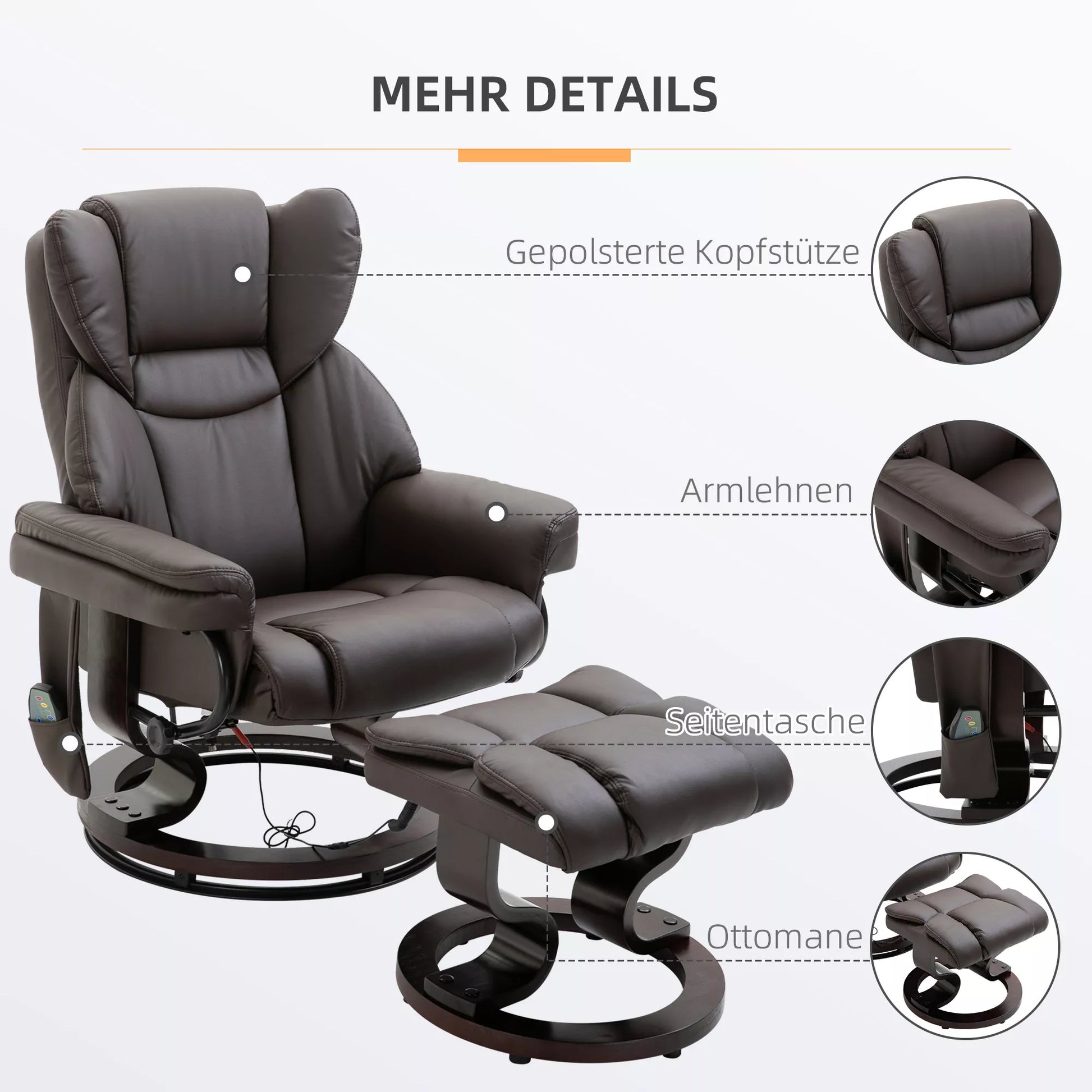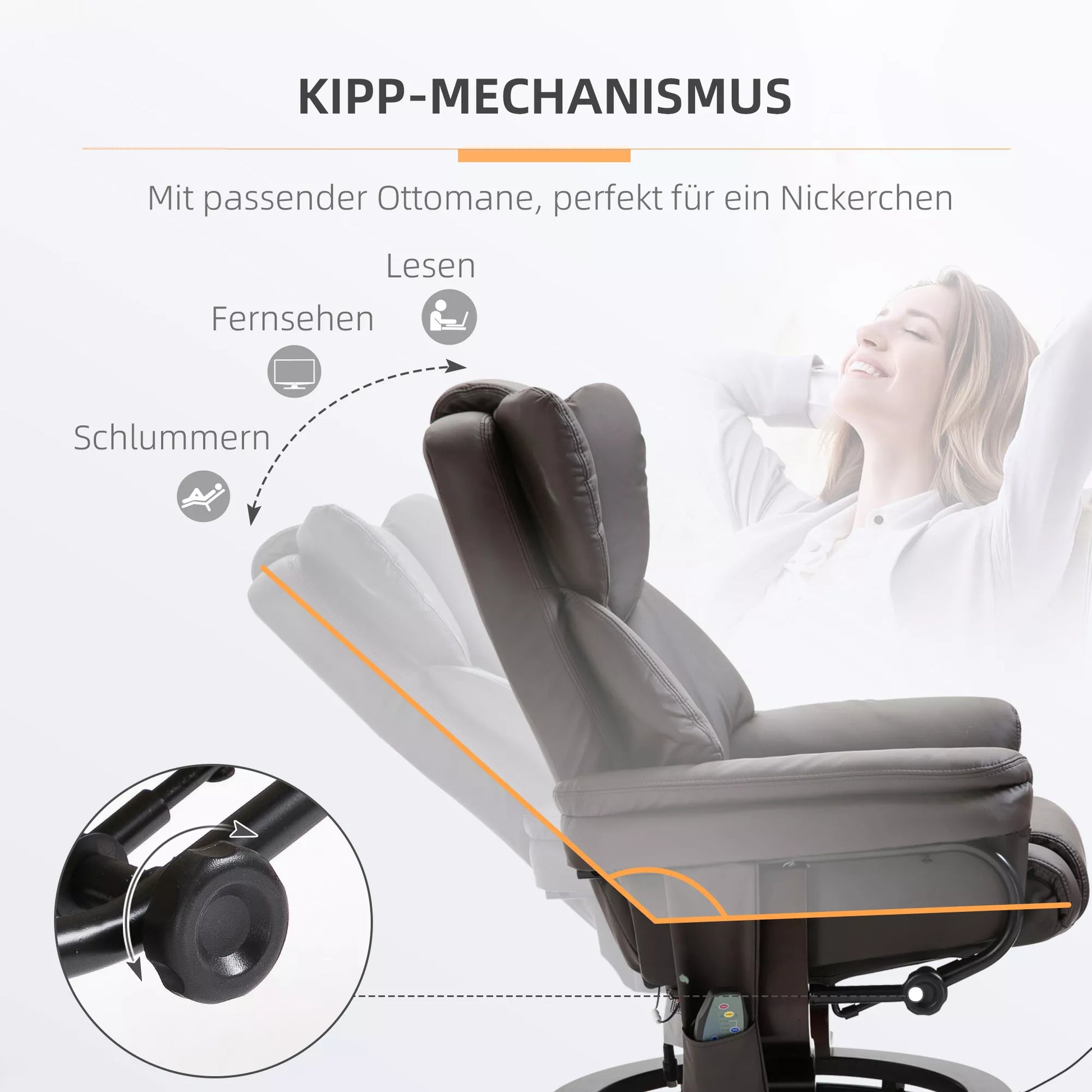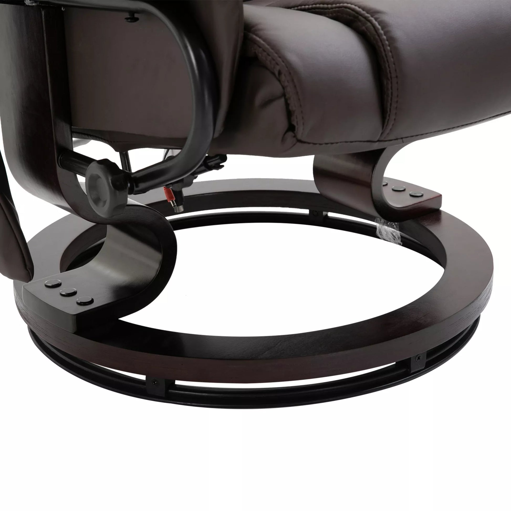 Relaksacinis krėslas su pakoja, 360° besisukantis televizijos fotelis su masažu, atlošimo funkcija, masažinis fotelis su šonine kišene, poilsio krėslas, dirbtinė oda svetainei, rudas