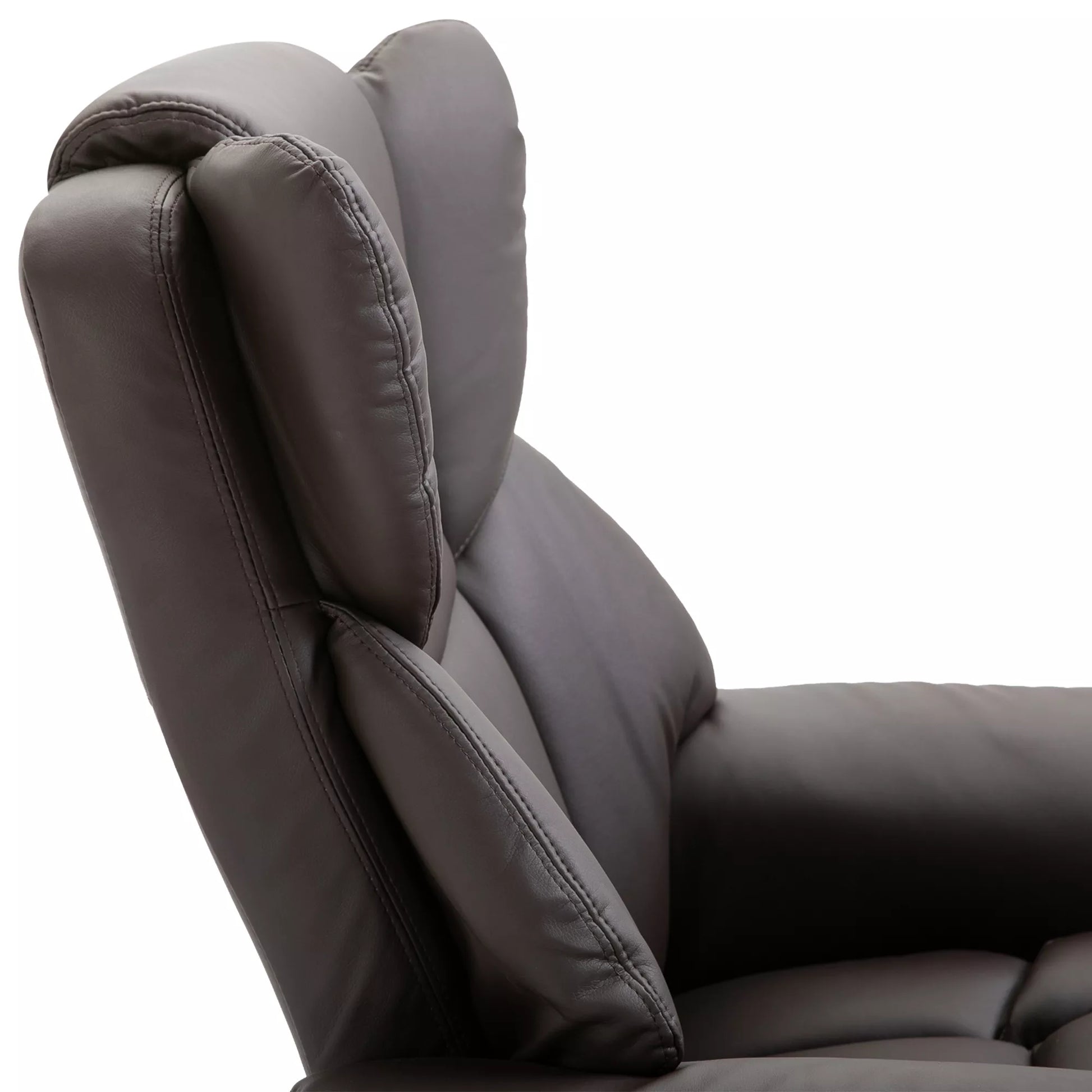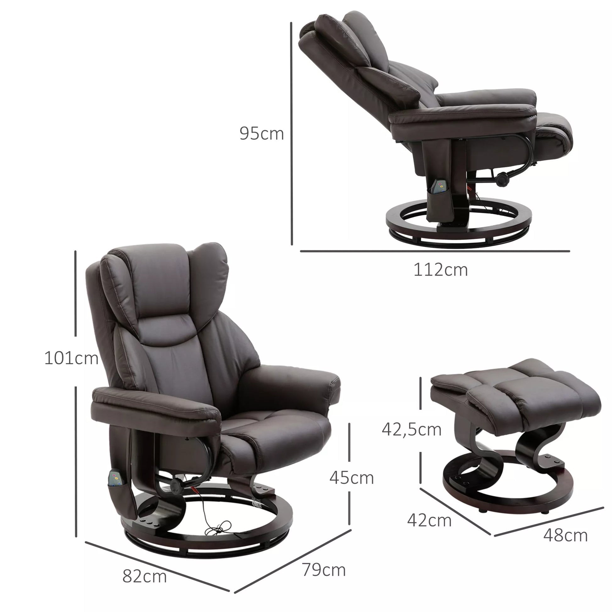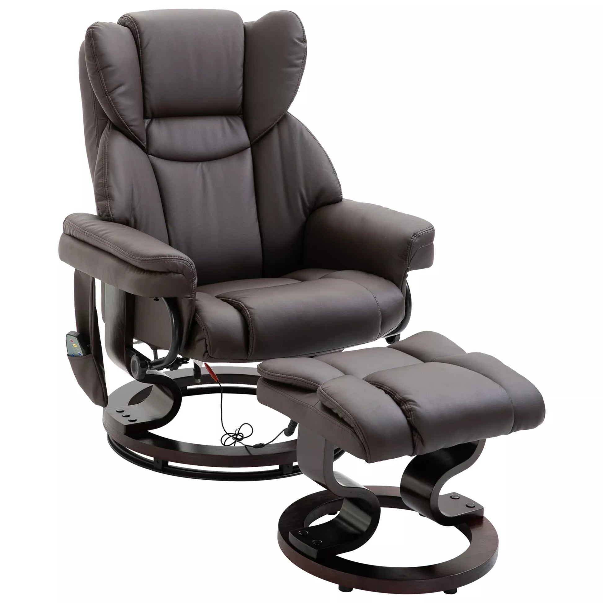 Relaksacinis krėslas su pakoja, 360° besisukantis televizijos fotelis su masažu, atlošimo funkcija, masažinis fotelis su šonine kišene, poilsio krėslas, dirbtinė oda svetainei, rudas