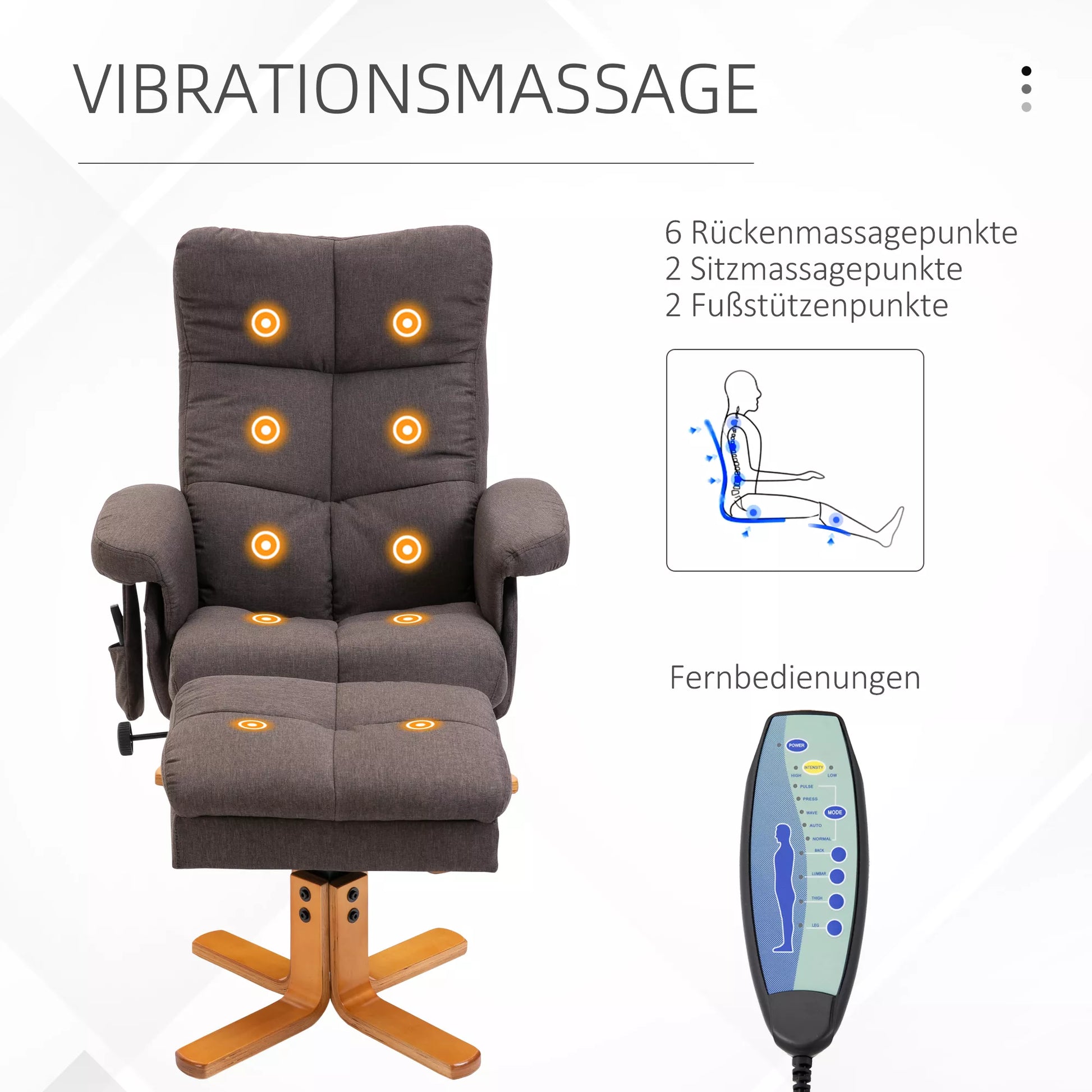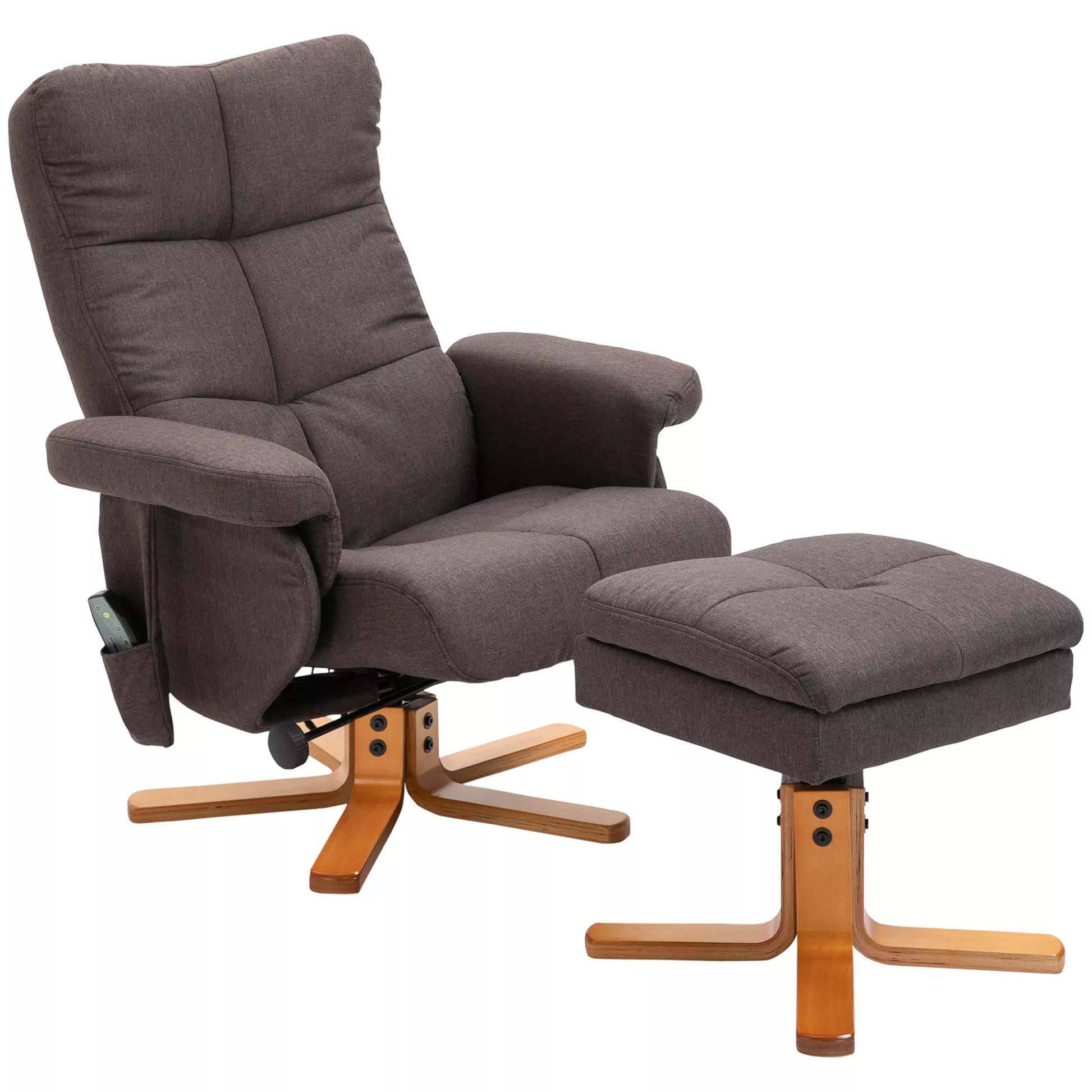 Elektrinis relaksinis masažinis krėslas su pakoja, laikymo erdve, gulėjimo funkcija, besisukantis TV krėslas su šonine kišene, nuotolinio valdymo pultelis, medinis rėmas, poliesteris, rudas