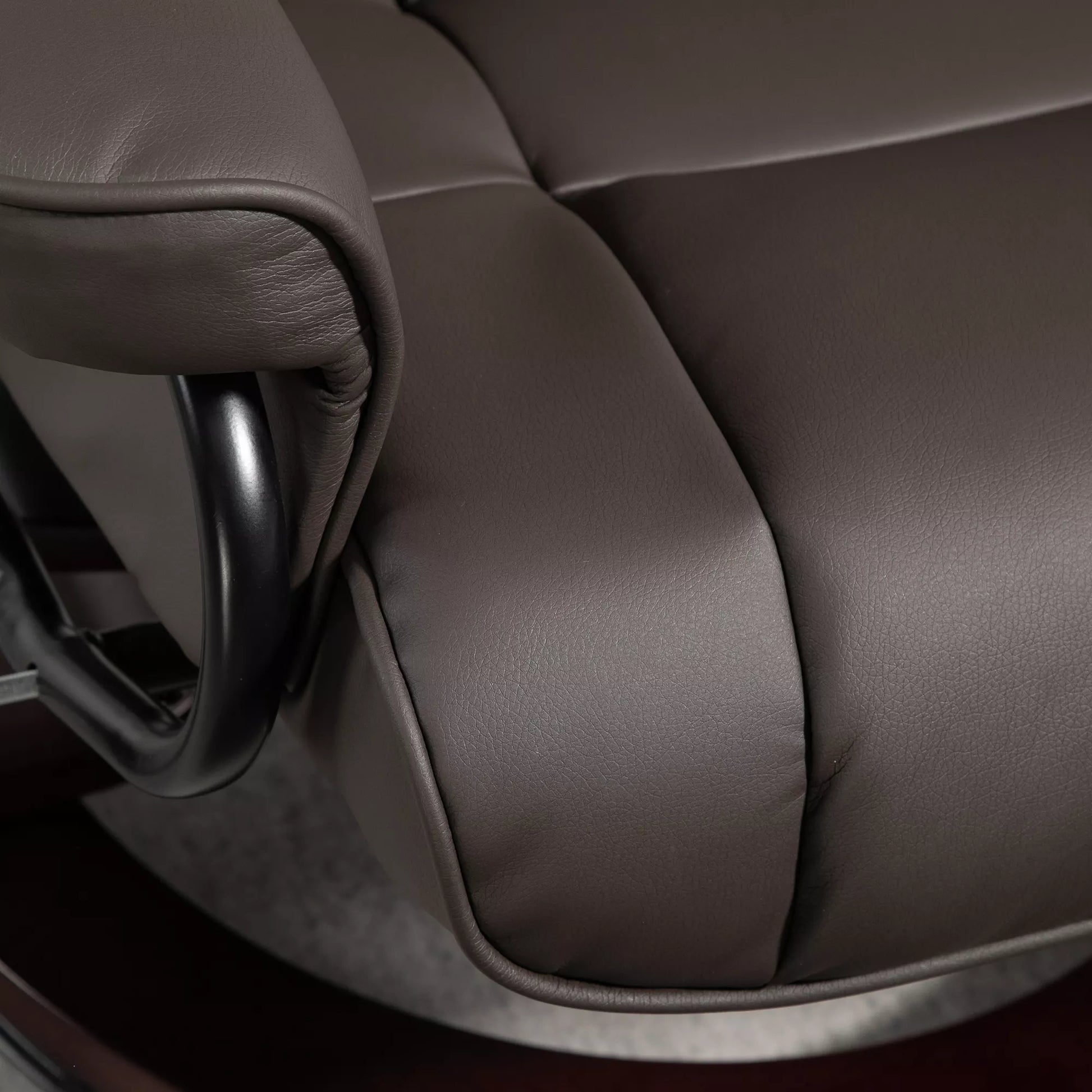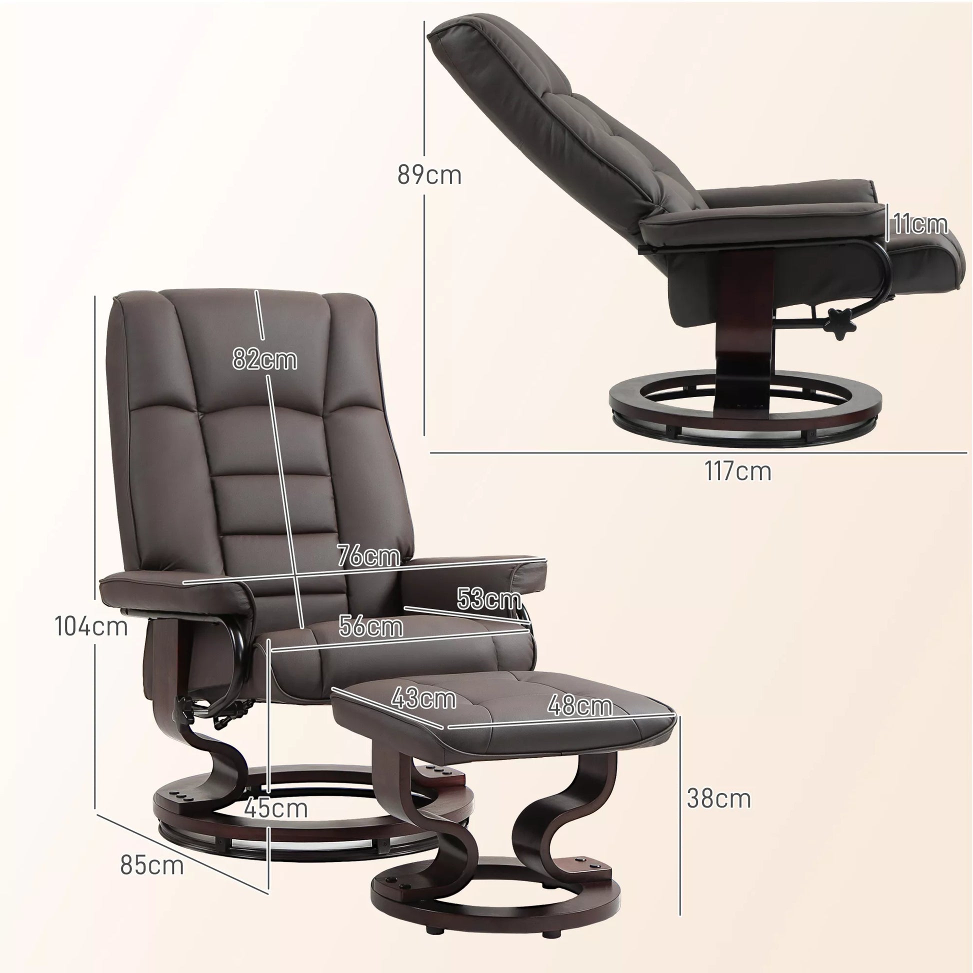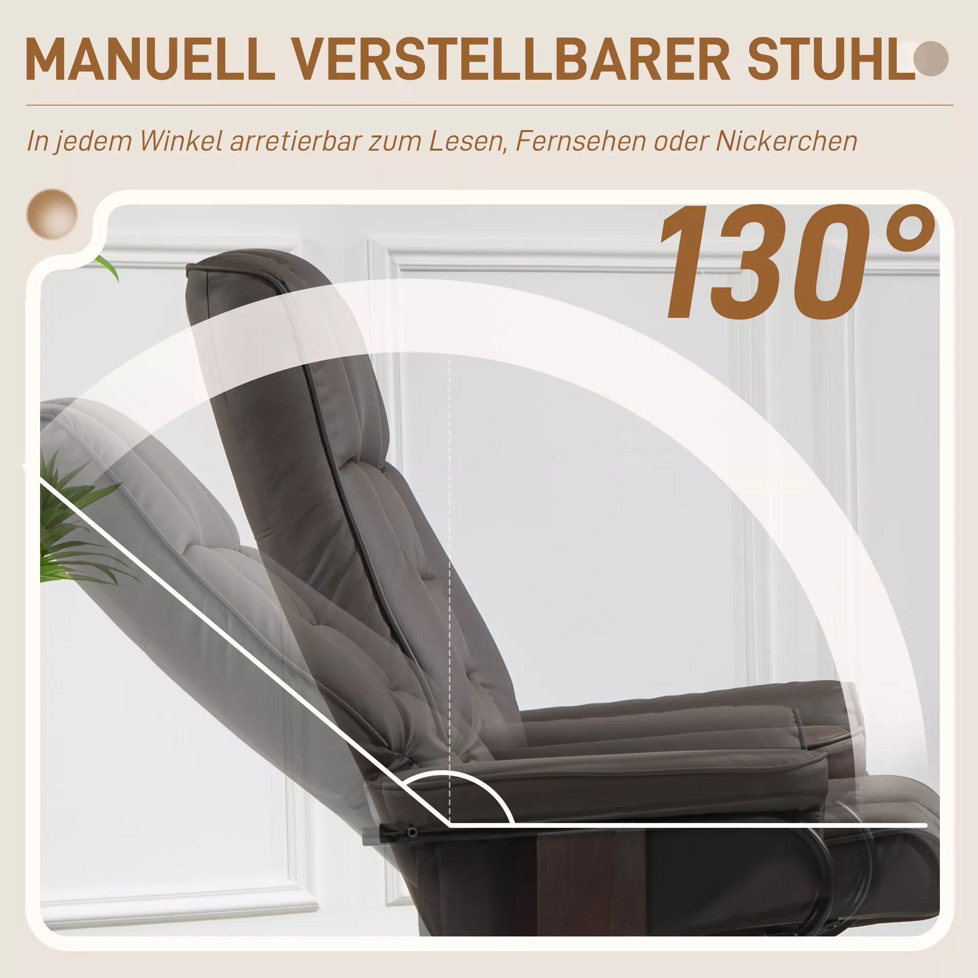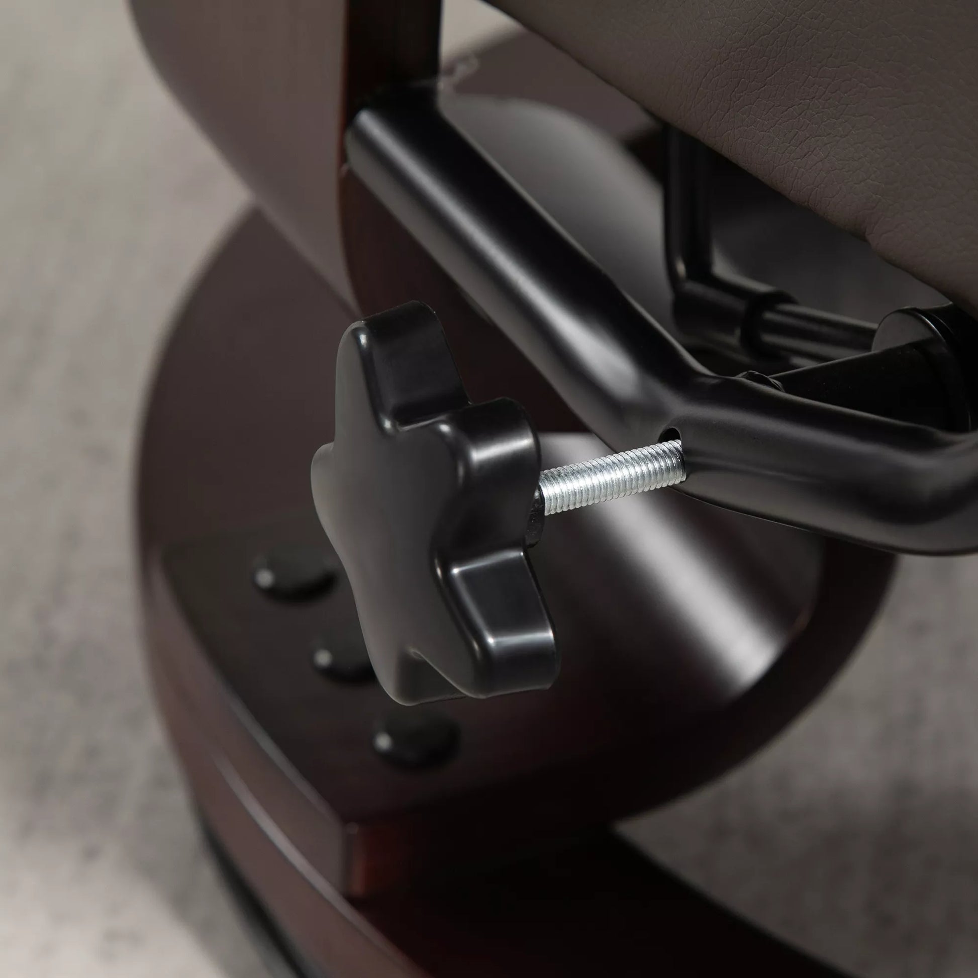 Atsipalaidavimo krėslas su pakoja, sukinėjamas ir atlošiamas, dirbtinės odos apmušalas, iki 150 kg, medinis rėmas, rudas
