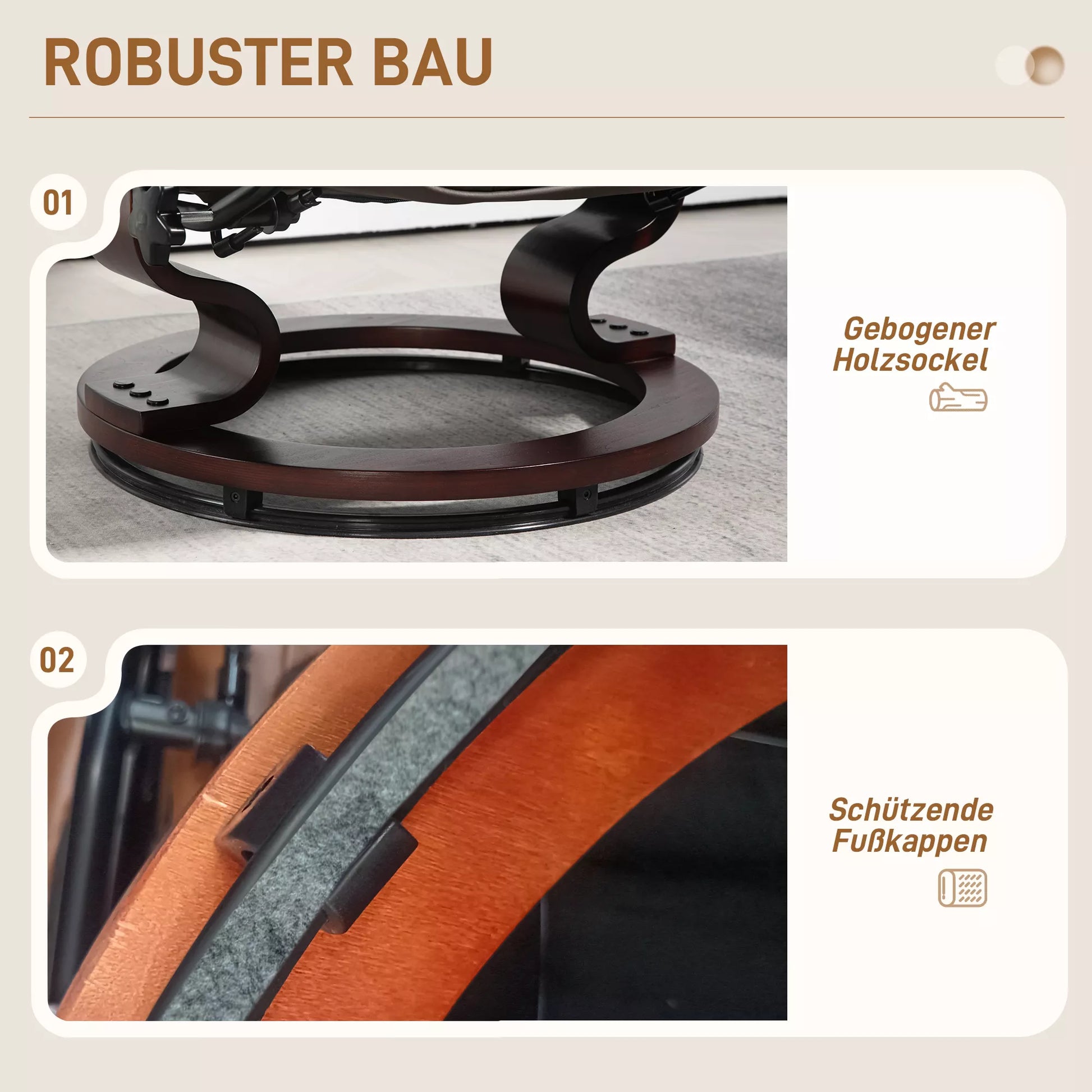 Stilingai atsipalaiduokite su mūsų foteliu su pufiku, jūsų naująja partnerių pora, skirta visapusiškam poilsiui! Atsiloškite iki 130° ir mėgaukitės 360° besisukančio pagrindo bei siūbavimo funkcijos teikiama judėjimo laisve. Pasilepinkite mūsų TV fotelio prabanga, apmuštu elegantiška dirbtine oda ir įtvirtintu stabilioje lenkto medžio konstrukcijoje. Idealiai tinka svetainei arba kaip stilingas jūsų skaitymo kampelio priedas.