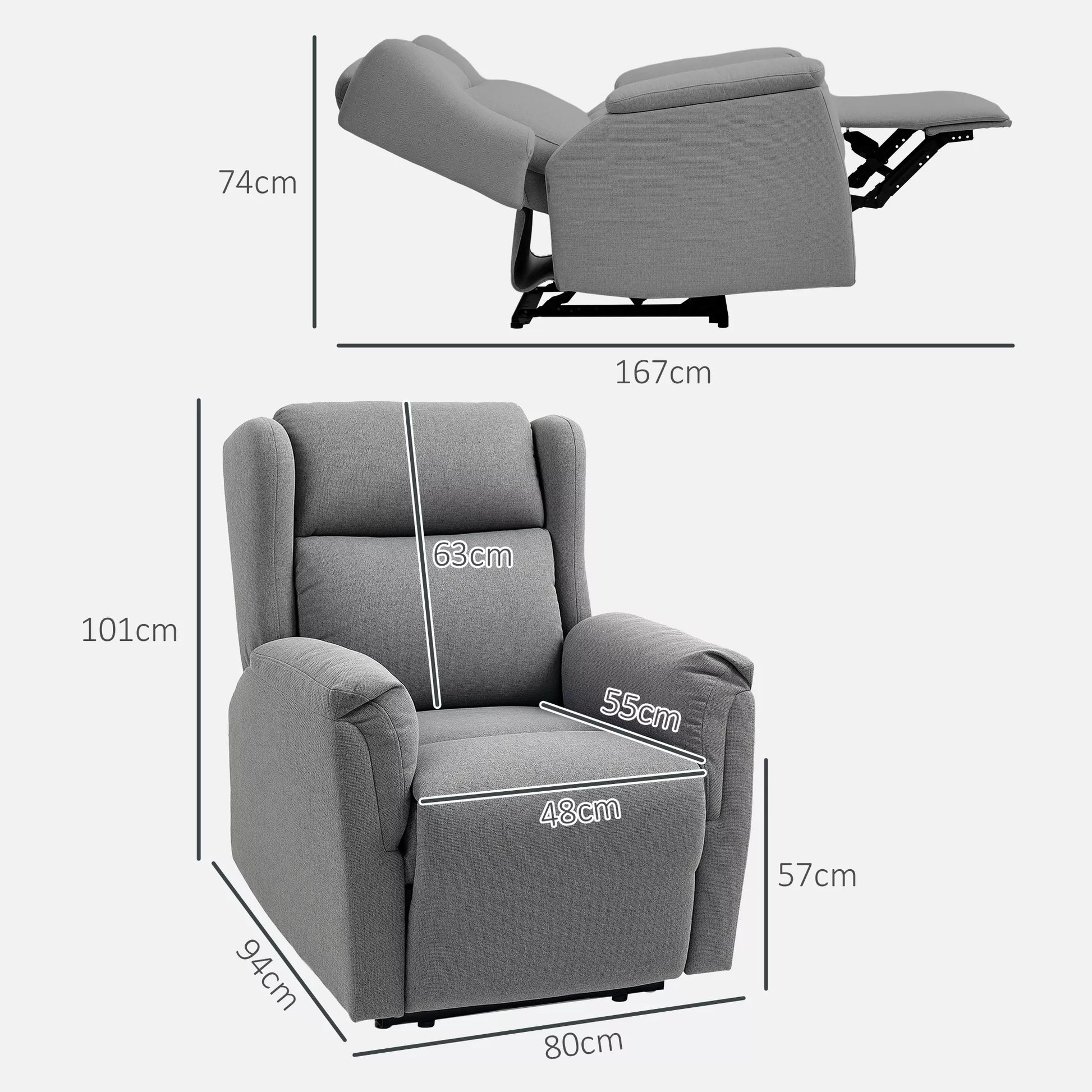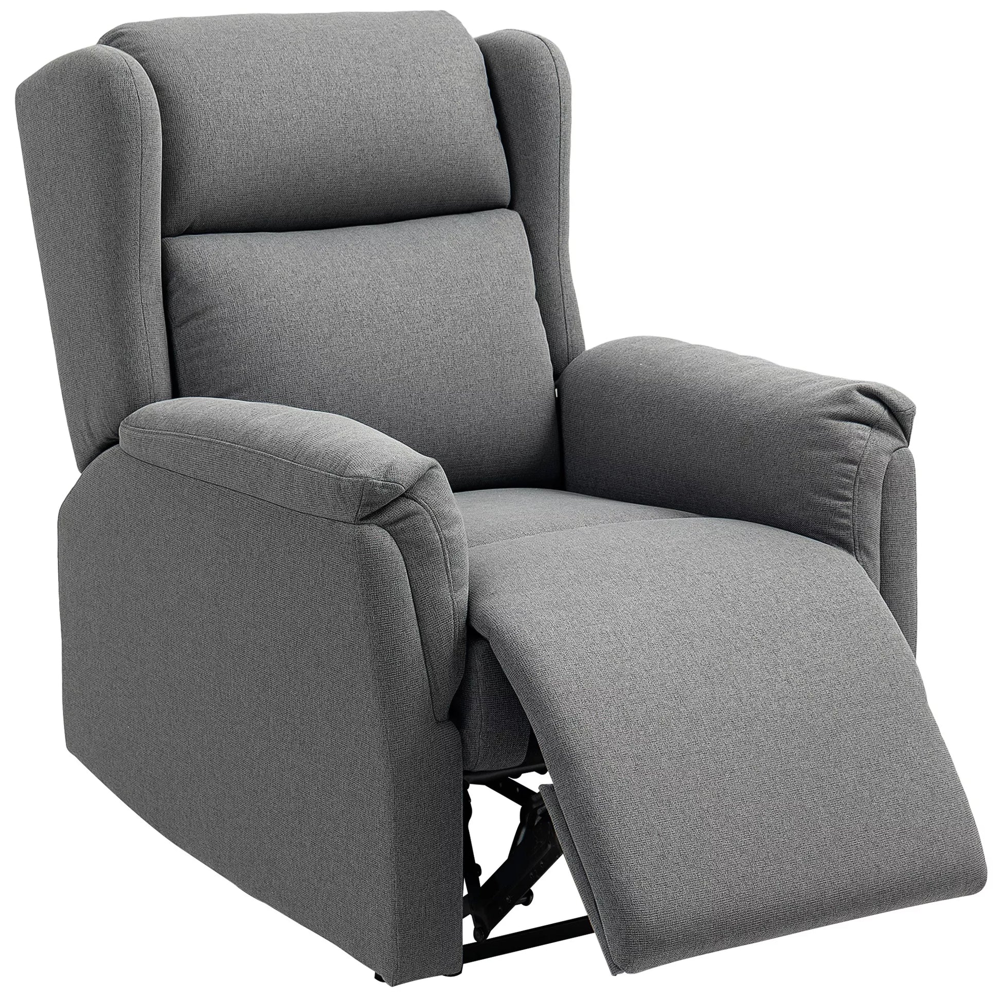 HOMCOM Relaksacinis krėslas, Reguliuojamas minkštas krėslas su kojų atrama, 160° atlošiamas, lininio audinio išvaizda, greitas surinkimas, tamsiai pilkas