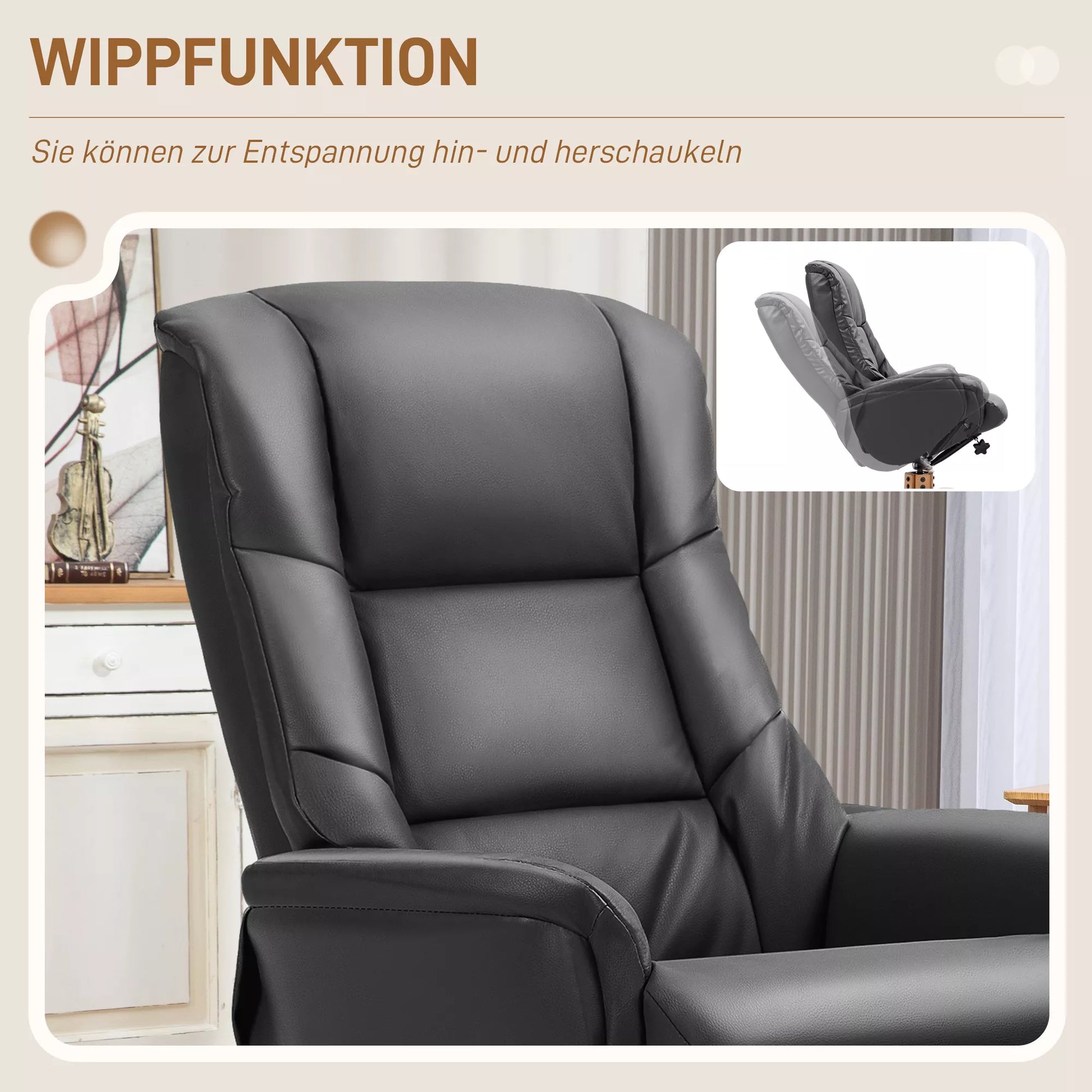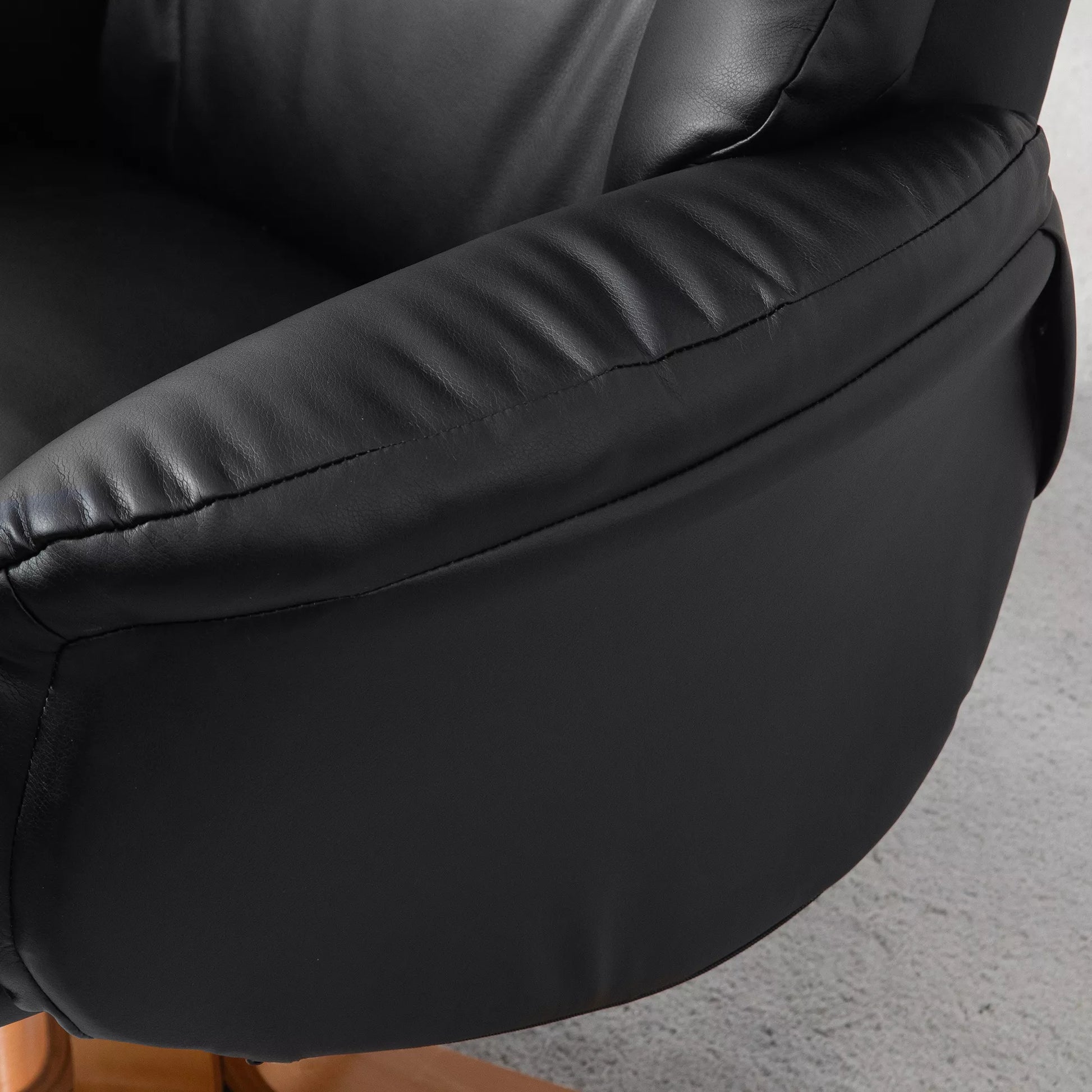 Poilsio fotelis su pakoja, atlošimo funkcija, dirbtinės odos apmušalas, iki 150 kg, 71 x 84 x 102 cm, Juodas
