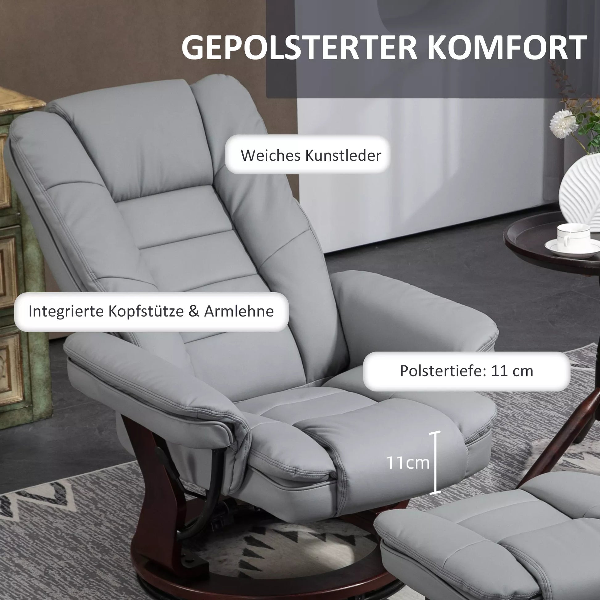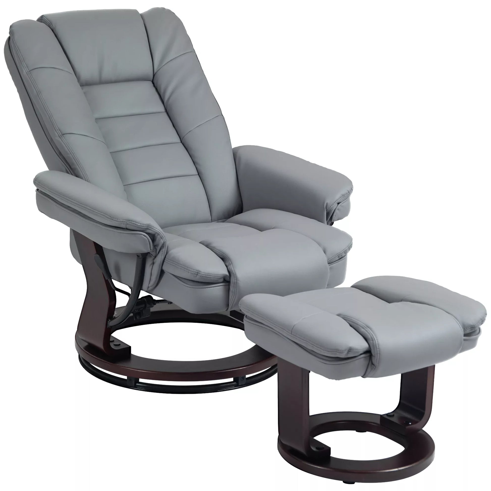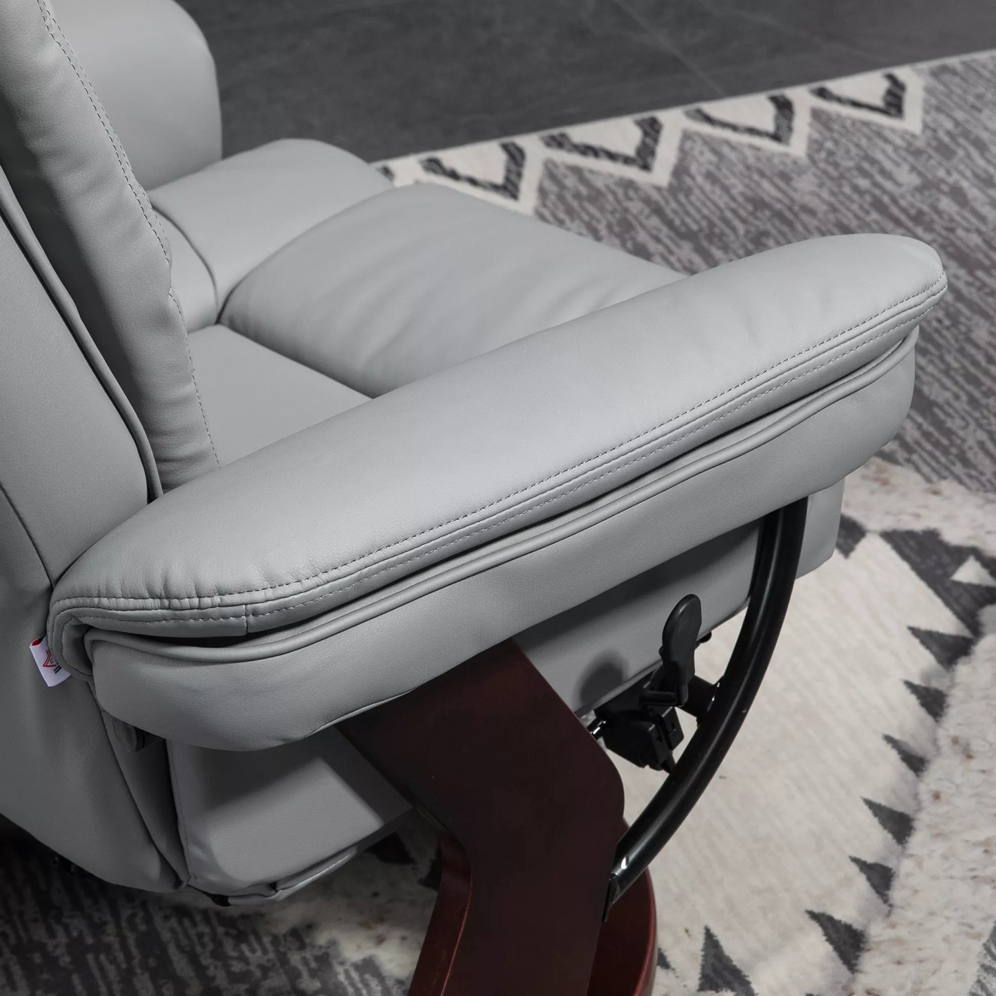 Besisukantis relaksacinis krėslas su pakoja, reguliuojama atlošo padėtimi, odos imitacijos, iki 130 kg, pilkas