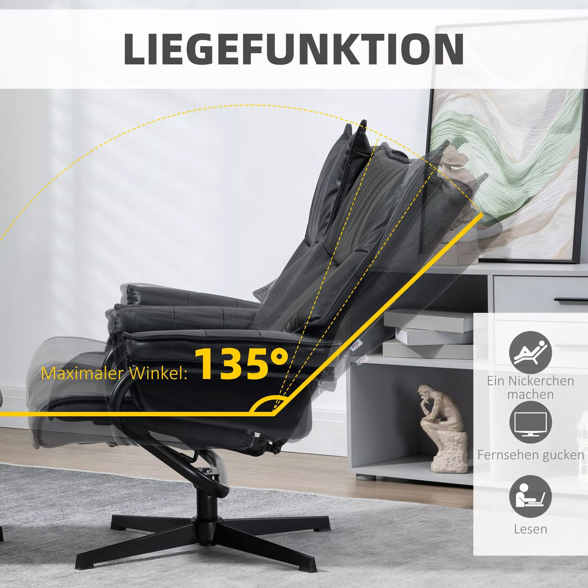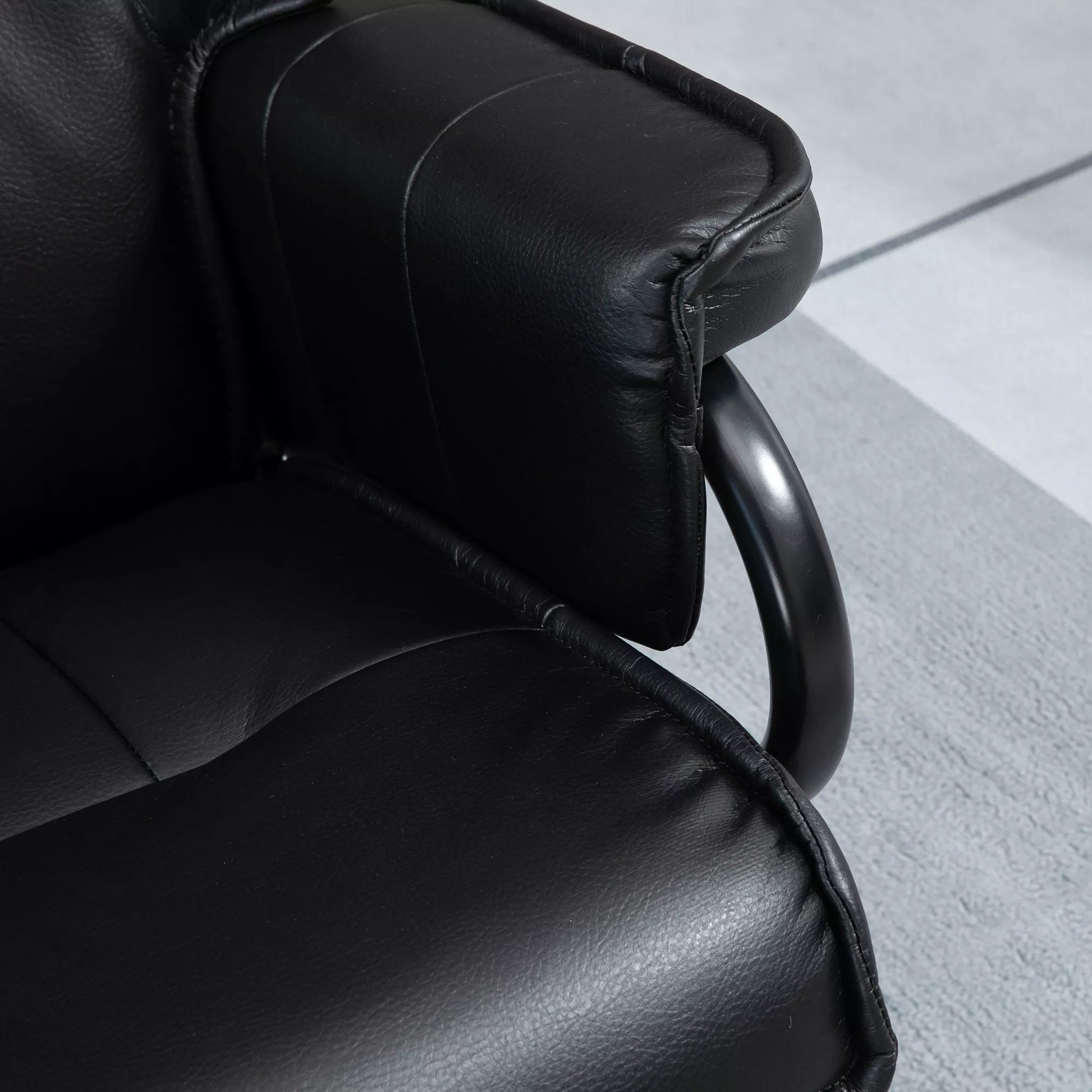 Pagaliau leiskite sau patogiai pailsėti su šiuo foteliu iš . Erdvi, atlenkiama atlošimo dalis su paminkštinta galvos atrama suteiks Jums tobulą atramą. Minkštas paminkštinimas visur užtikrina ilgalaikį komfortą, o glotni dirbtinė oda suteikia elegancijos. Šis fotelis, atlenkiamas iki 135°, sukurs Jums tobulą poilsio aplinką. Naudokite pufą kojoms pasidėti ir pamiršti kasdienius rūpesčius.