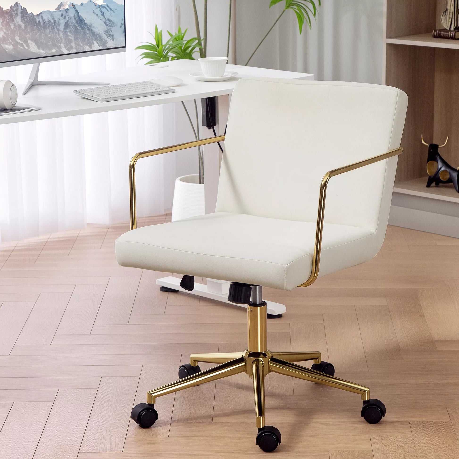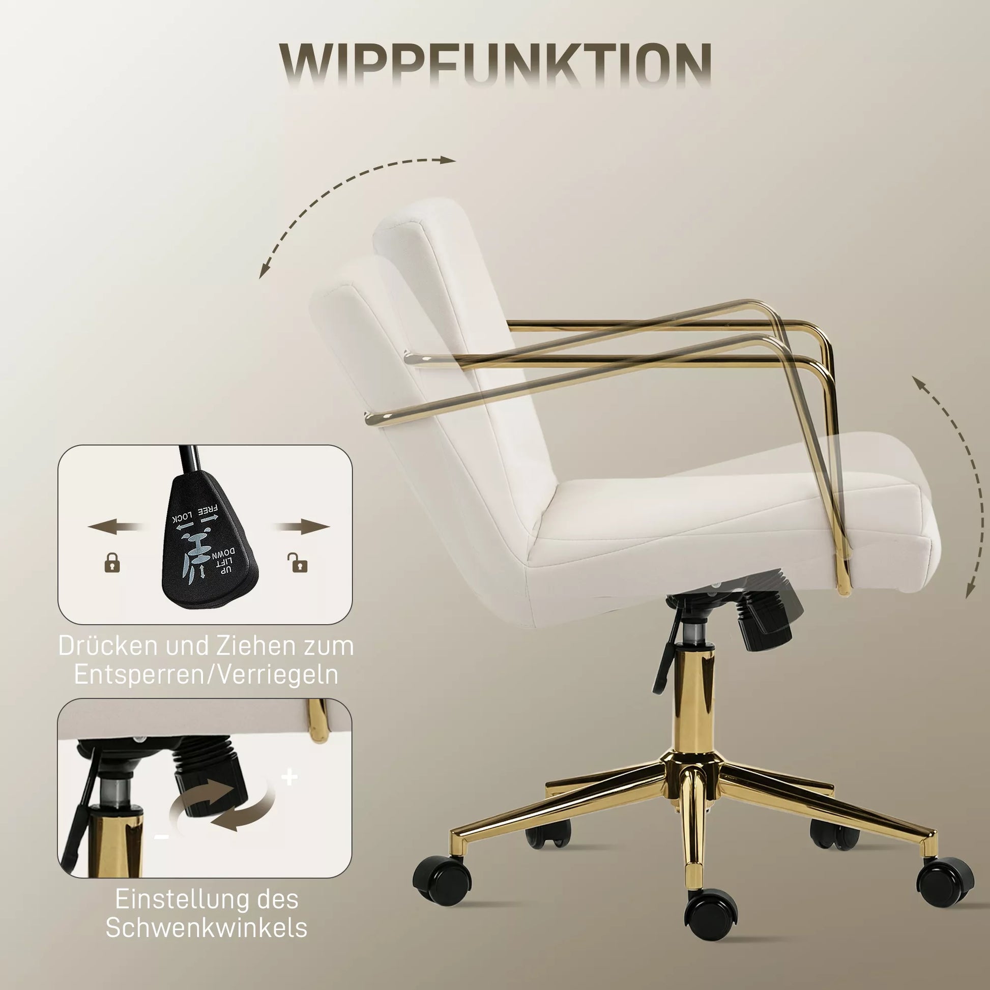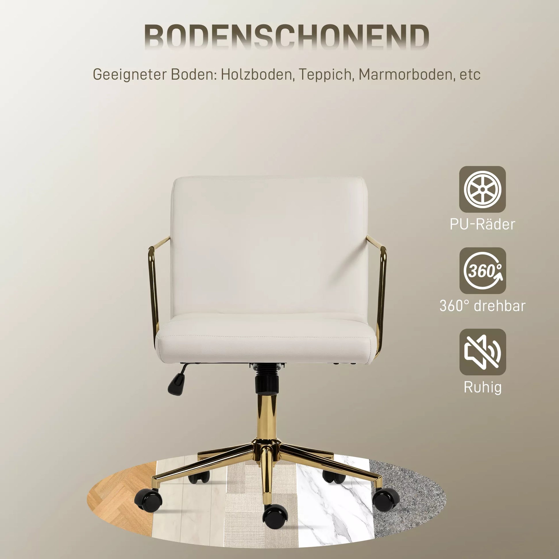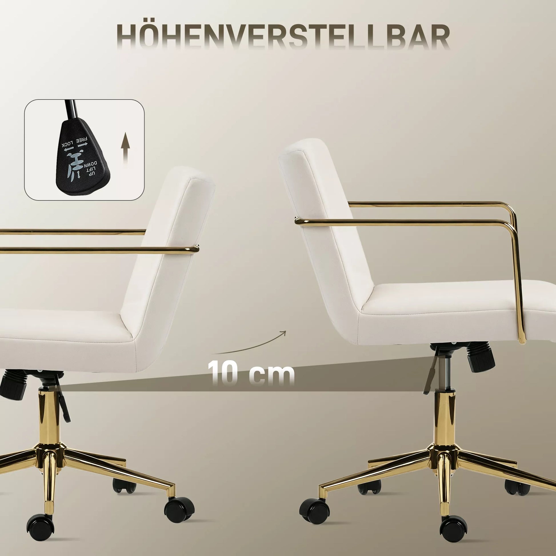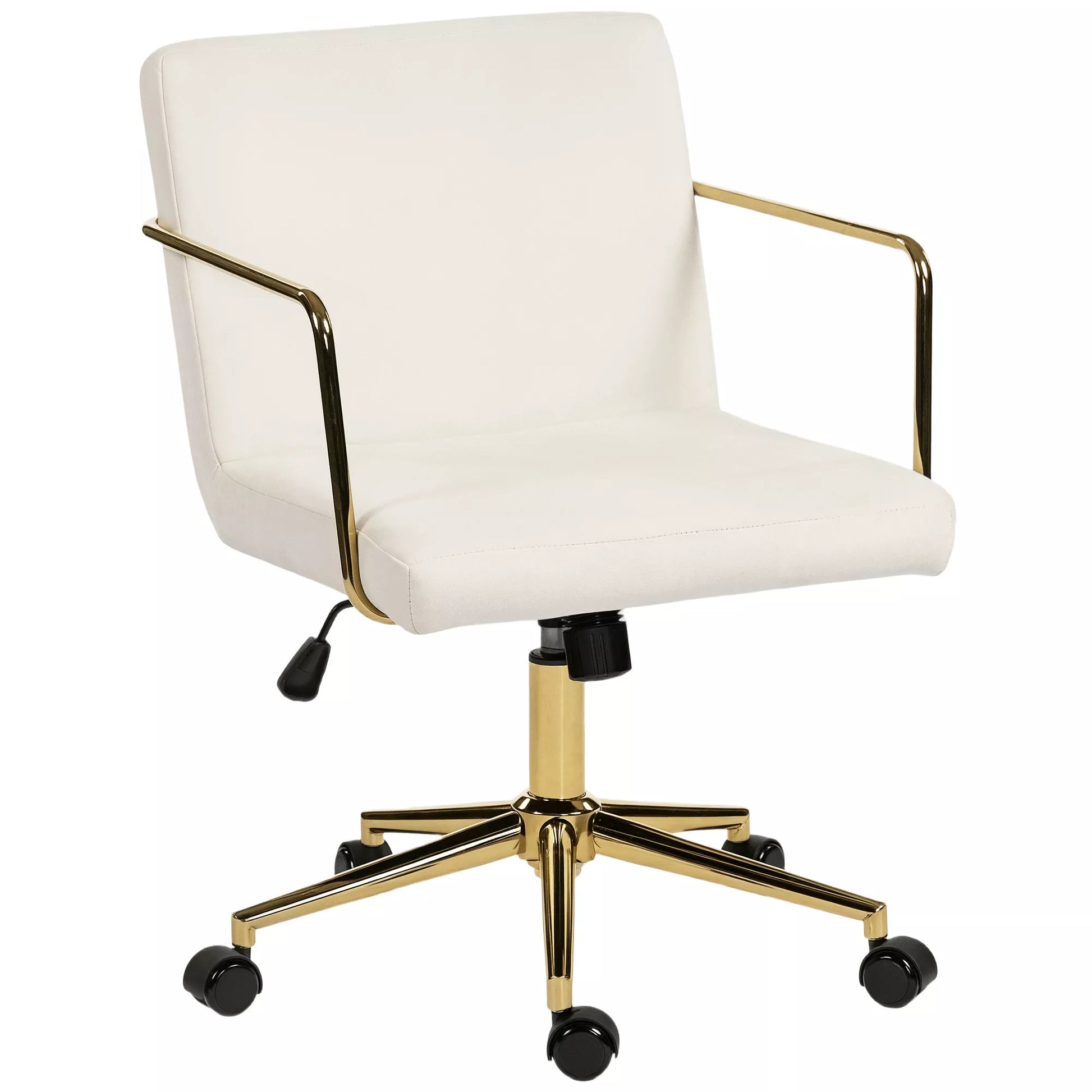 Biuro kėdė ant ratukų su aukso detalėmis, kompiuterio kėdė su metaline baze, gobelenas su aksomo išvaizda, kreminės baltos spalvos